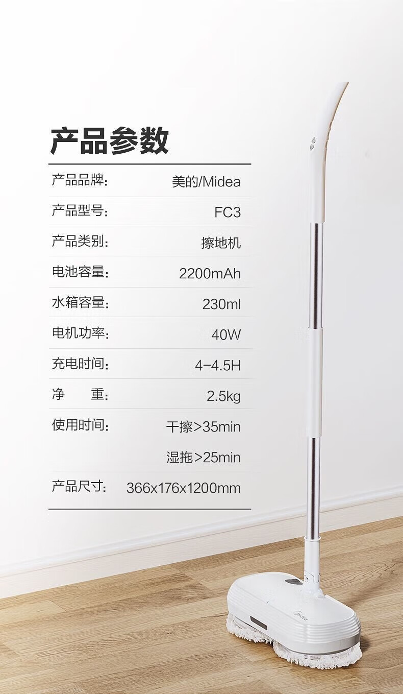 Midea wireless electric mop FC3 household automatic mopping machine intelligent cleaning wet mopping machine dry mopping machine FC3