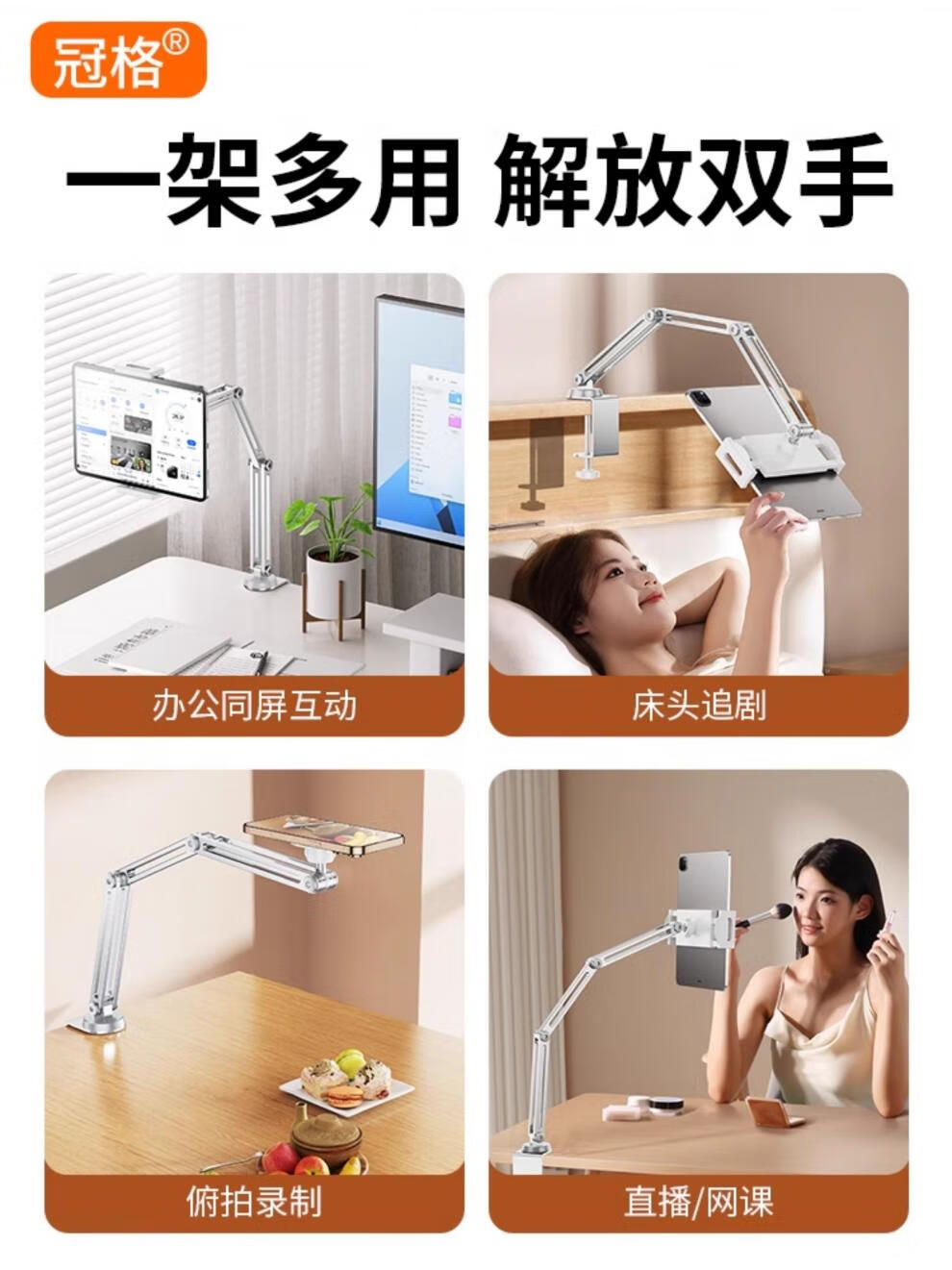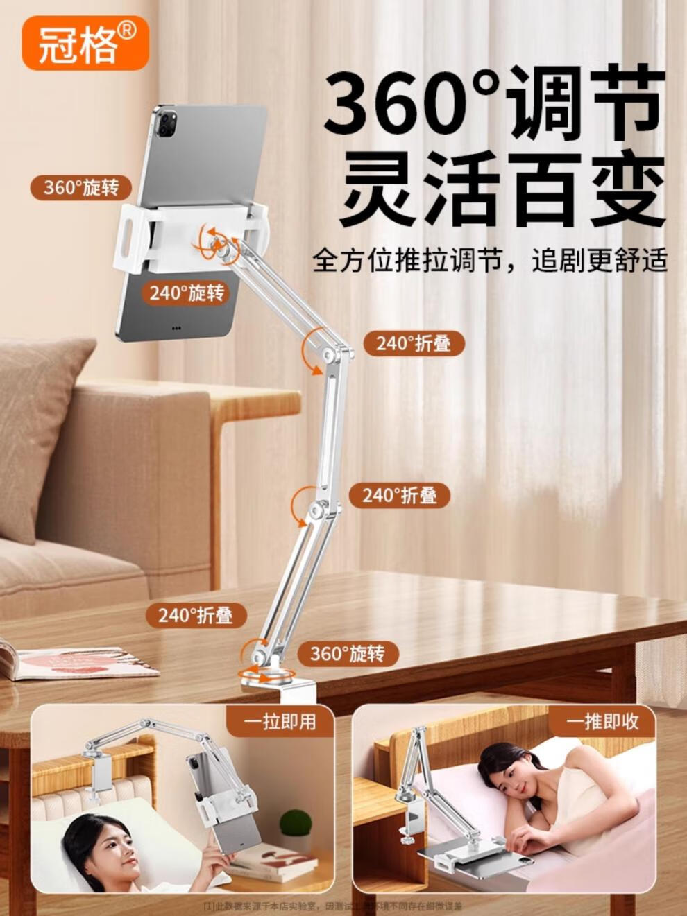 Crowne all-alloy 3-arm tablet phone holder desktop dedicated bed iPad2025 new cantilever 360-degree rotation adjustment multi-functional lazy person adjustable bedside support frame universal a full alloy 3-arm rotating belt beep beep beep - can be 3