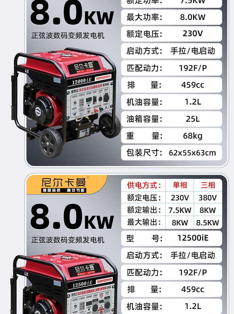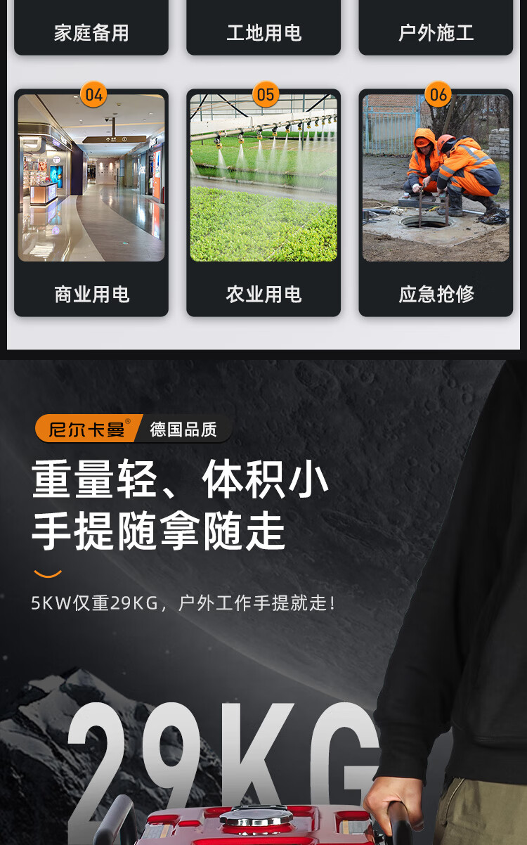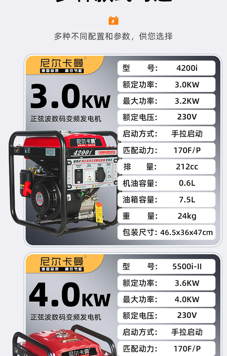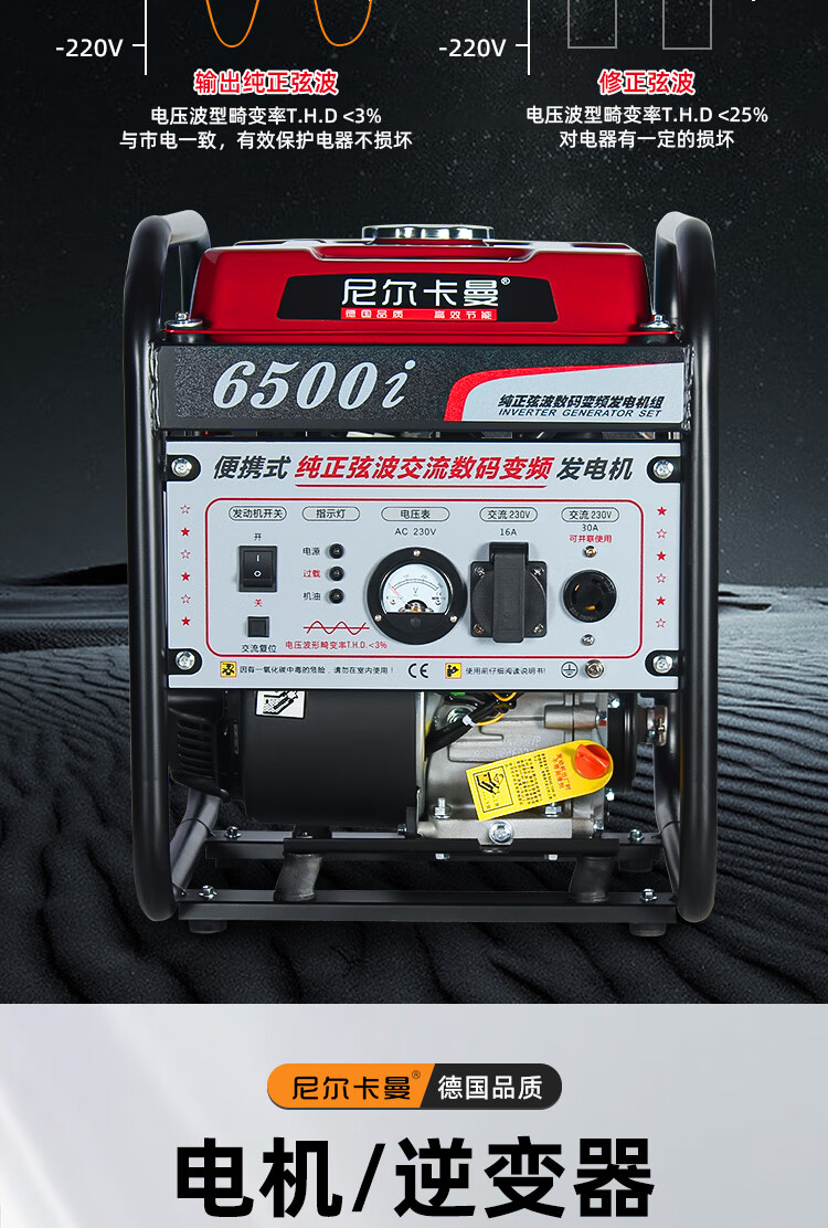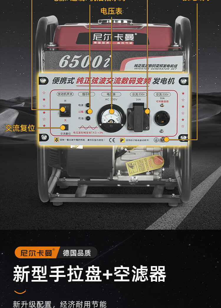 Neil Kaman portable pure sine wave digital variable frequency gasoline generator 3/5/8kw 220v all-copper small brushless 3.2kw hand start 220v/motor and inverter two-year warranty