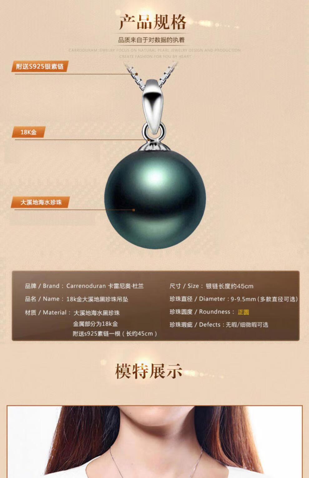 DRJEFUN Tahitian black pearl pendant necklace Tamsui Zhengyuan gives a Mother's Day gift to my girlfriend's mother 10-10.5MM (black and green flawless)