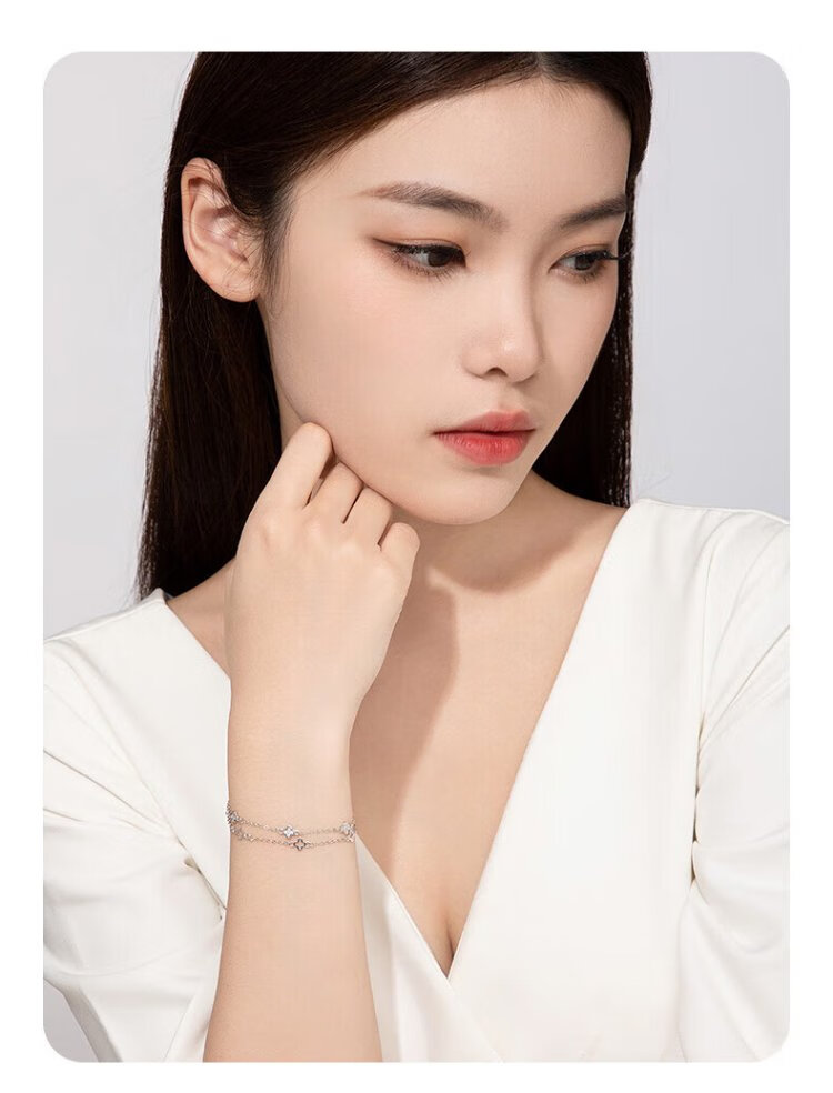 RHM love four-leaf clover double-layer platinum bracelet for girls ins high-end new birthday and Valentine's Day gift for girlfriend platinum four-leaf clover bracelet + certificate + gift box