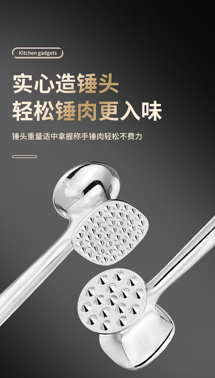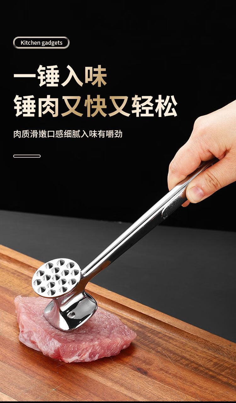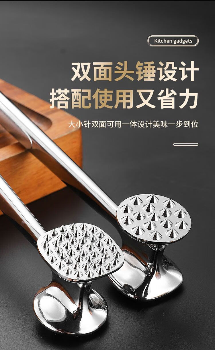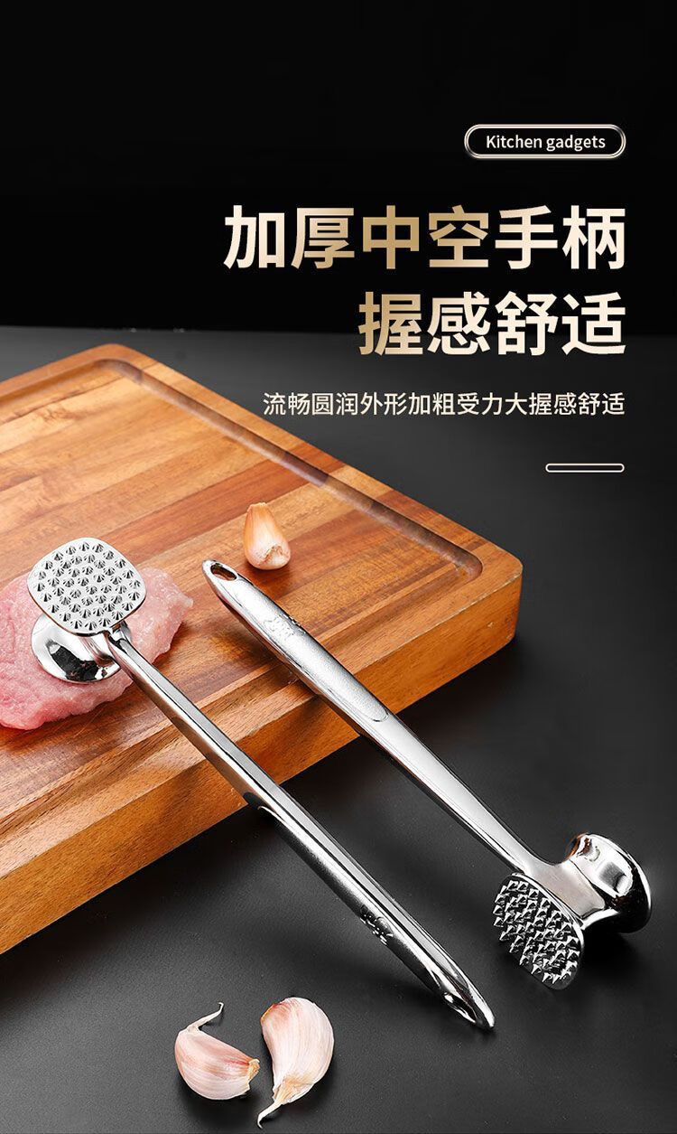 Le TLIT est plus durable que l'acier inoxydable 304. Marteau à viande double face à usage domestique. Marteau à viande spécial pour côtelettes de porc, steaks et côtelettes de poulet. Plus durable que le marteau à viande solide double face 304 avec trous.