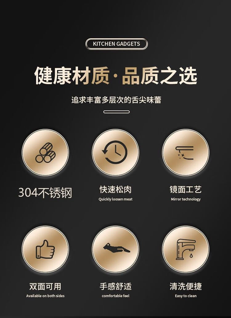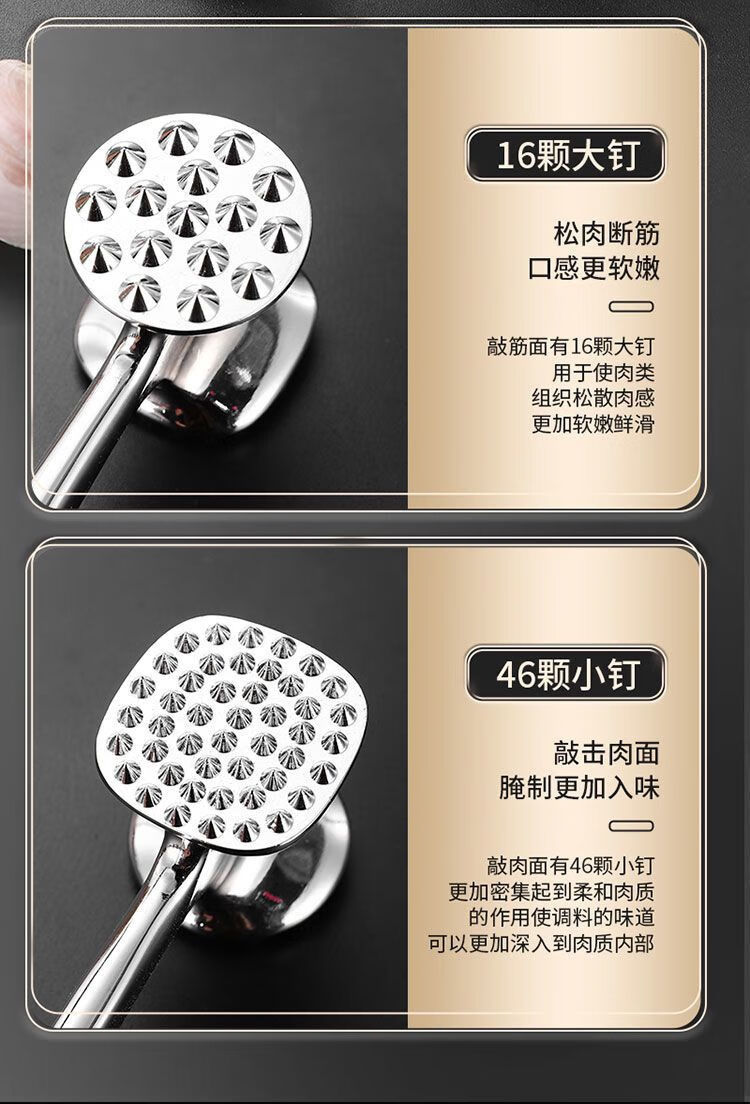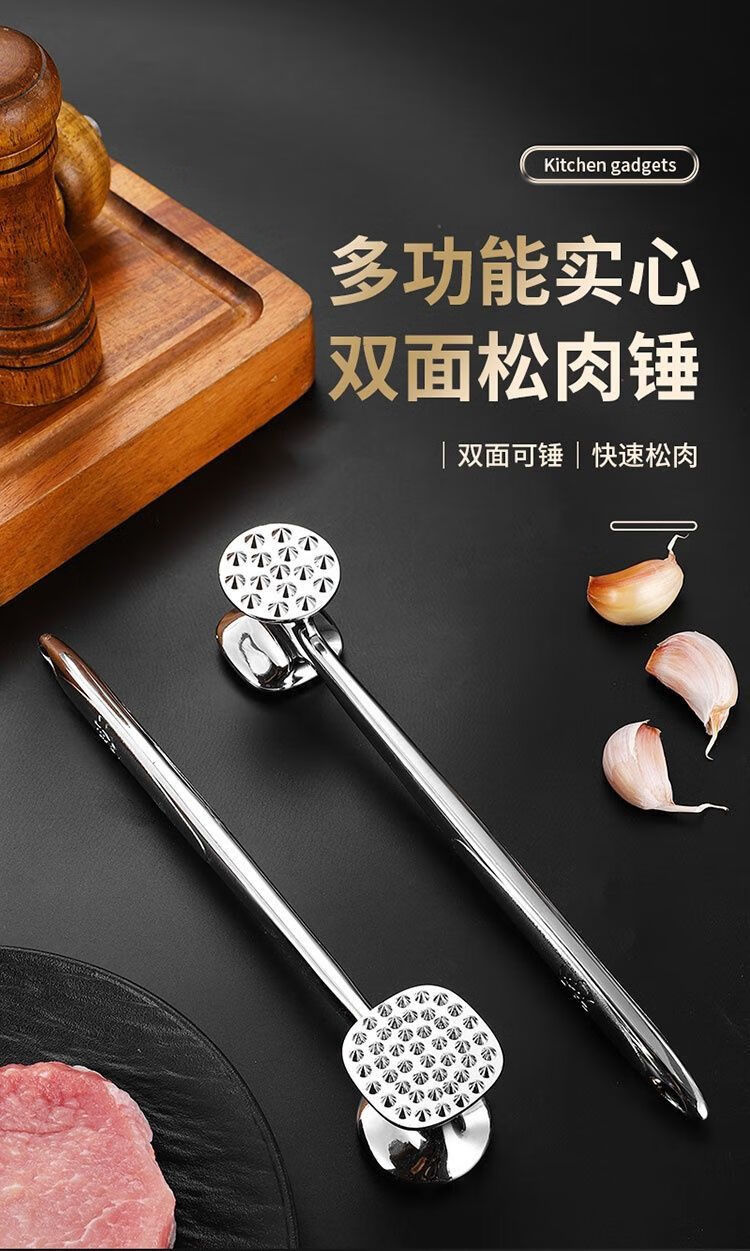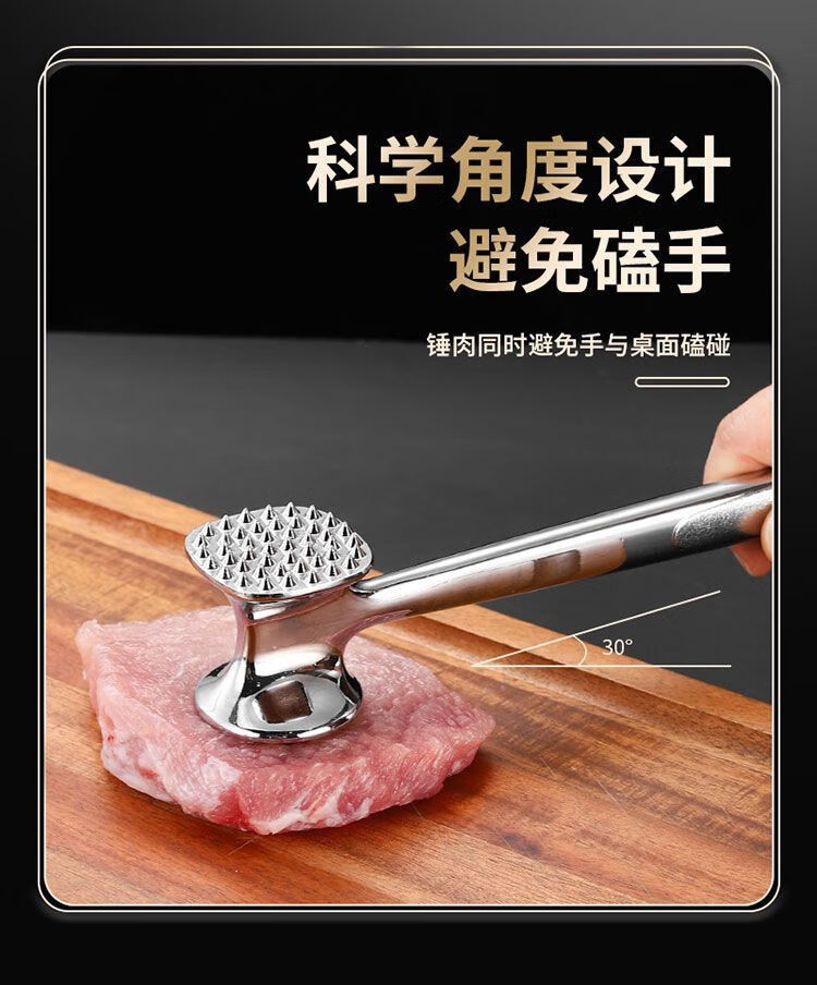Le TLIT est plus durable que l'acier inoxydable 304. Marteau à viande double face à usage domestique. Marteau à viande spécial pour côtelettes de porc, steaks et côtelettes de poulet. Plus durable que le marteau à viande solide double face 304 avec trous.