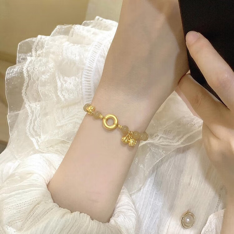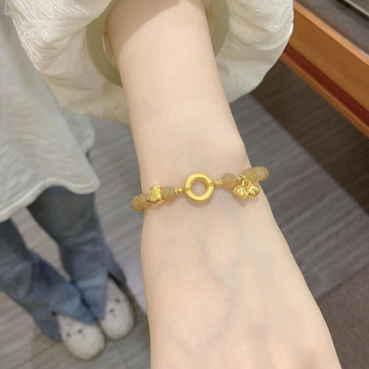 Chow Tai Sang 999 Pure Gold Peace Buckle Gold Bracelet Women's Lucky Bag Transfer Beads Lotus Persimmon Caramel Hetian Jade Beaded Bracelet Pure Gold Hetian Jade Bracelet
