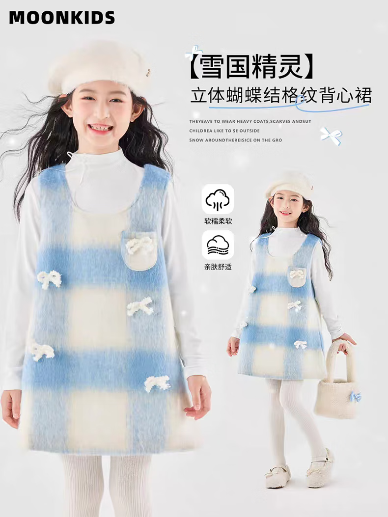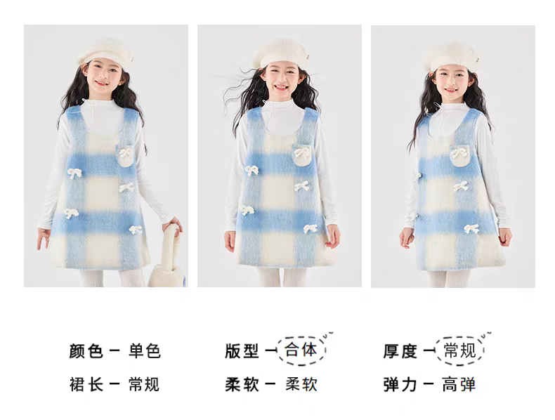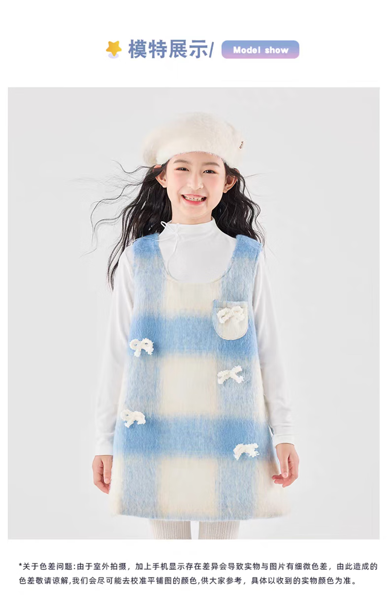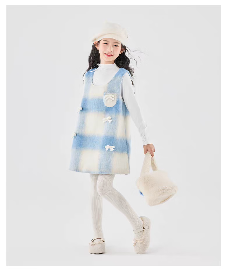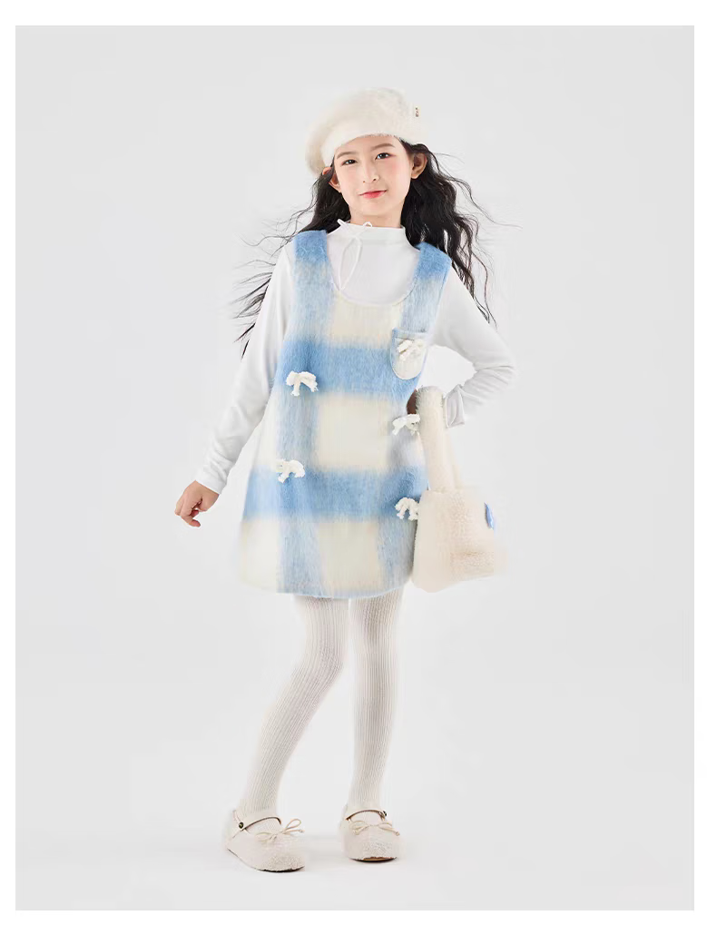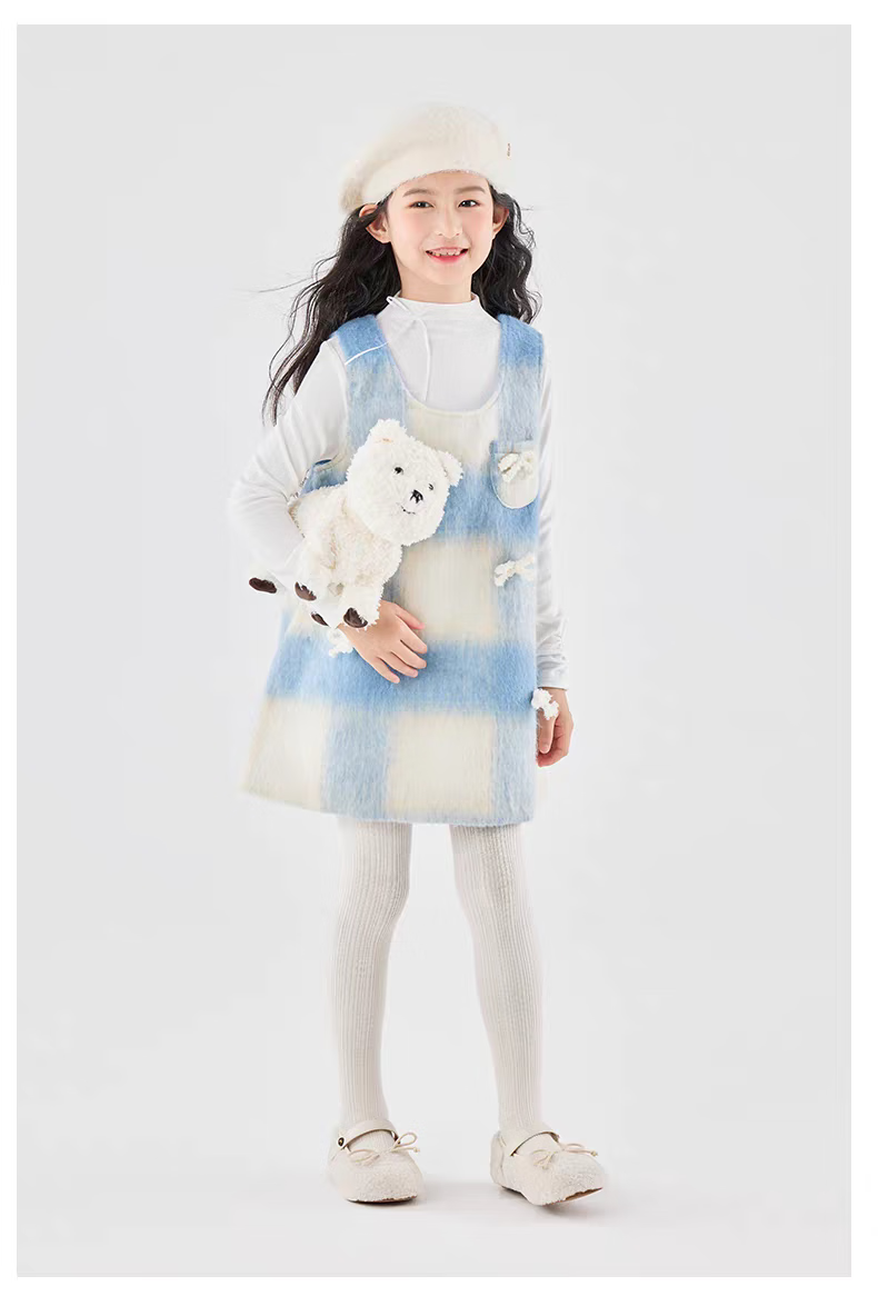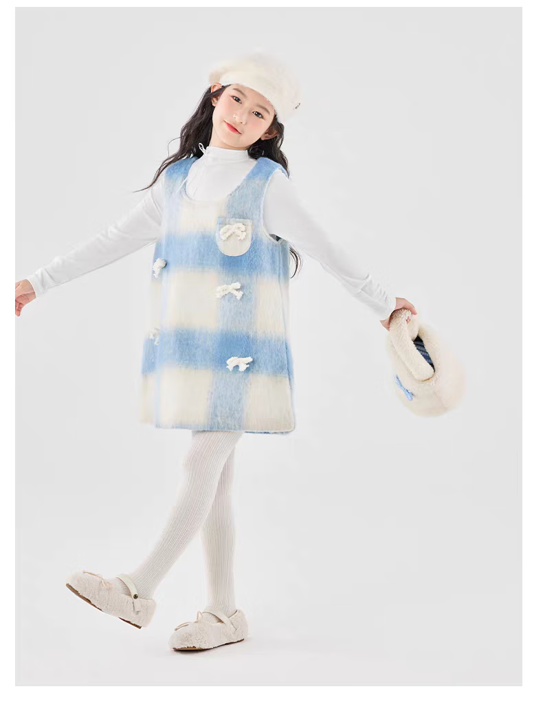 Moonkids children's clothing girls vest skirt 2025 autumn and winter new girls birthday dress plaid skirt children winter wear princess skirt 6178 blue and white plaid vest skirt 170 cm