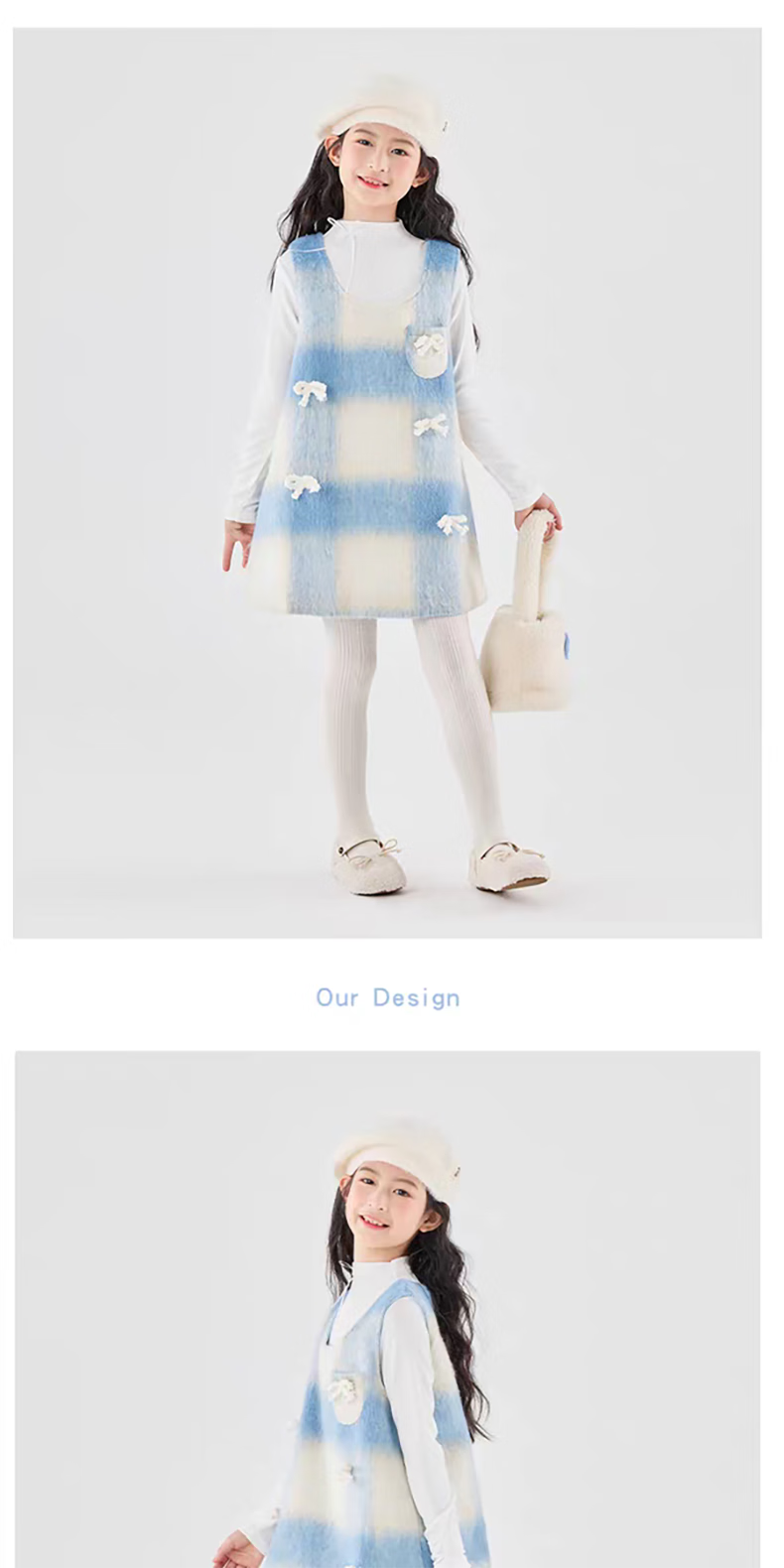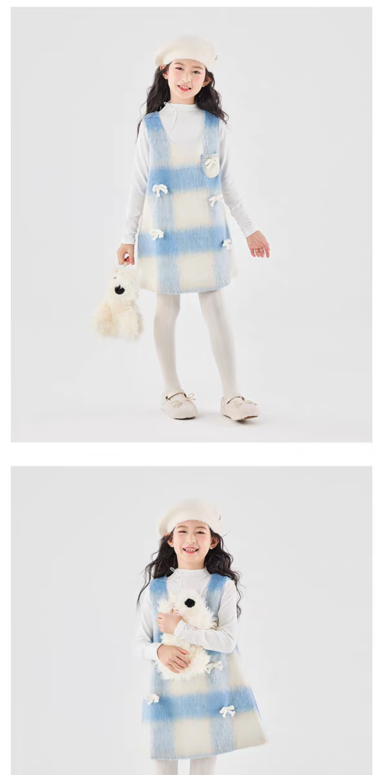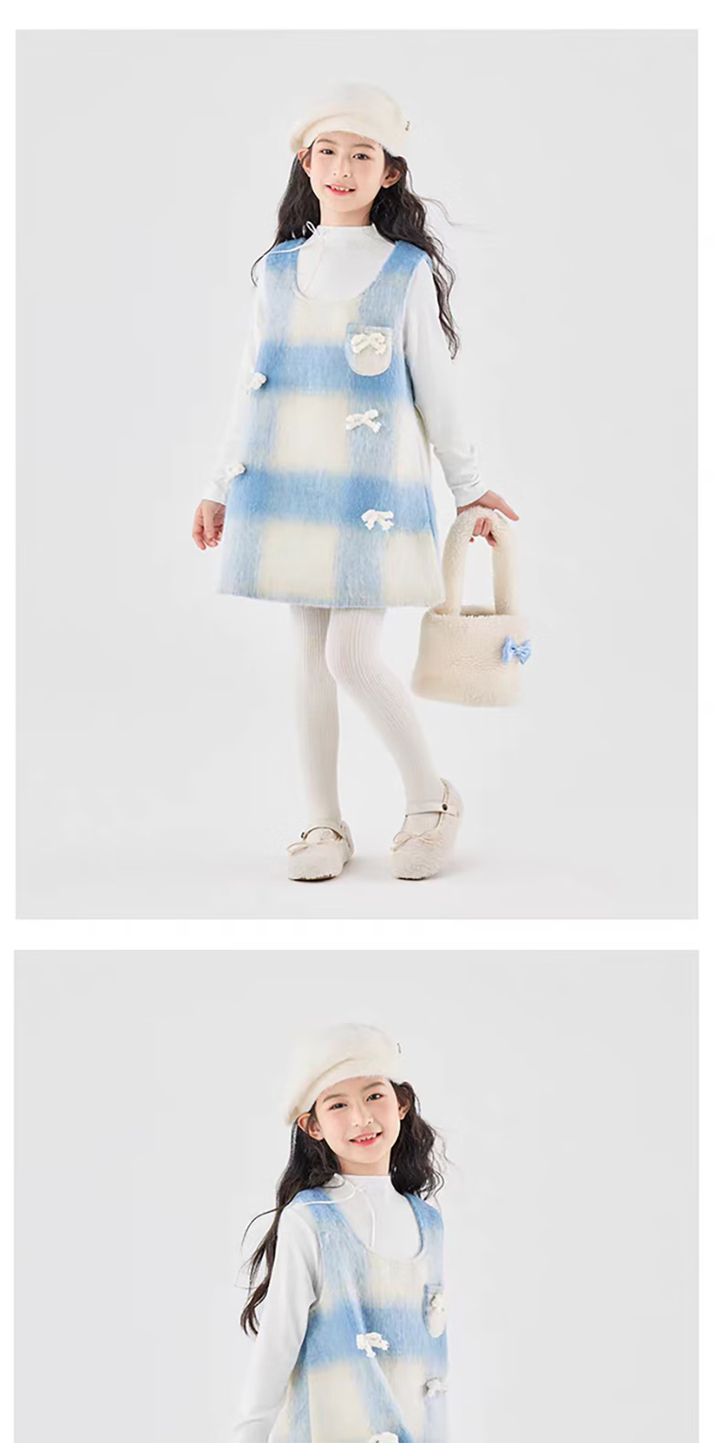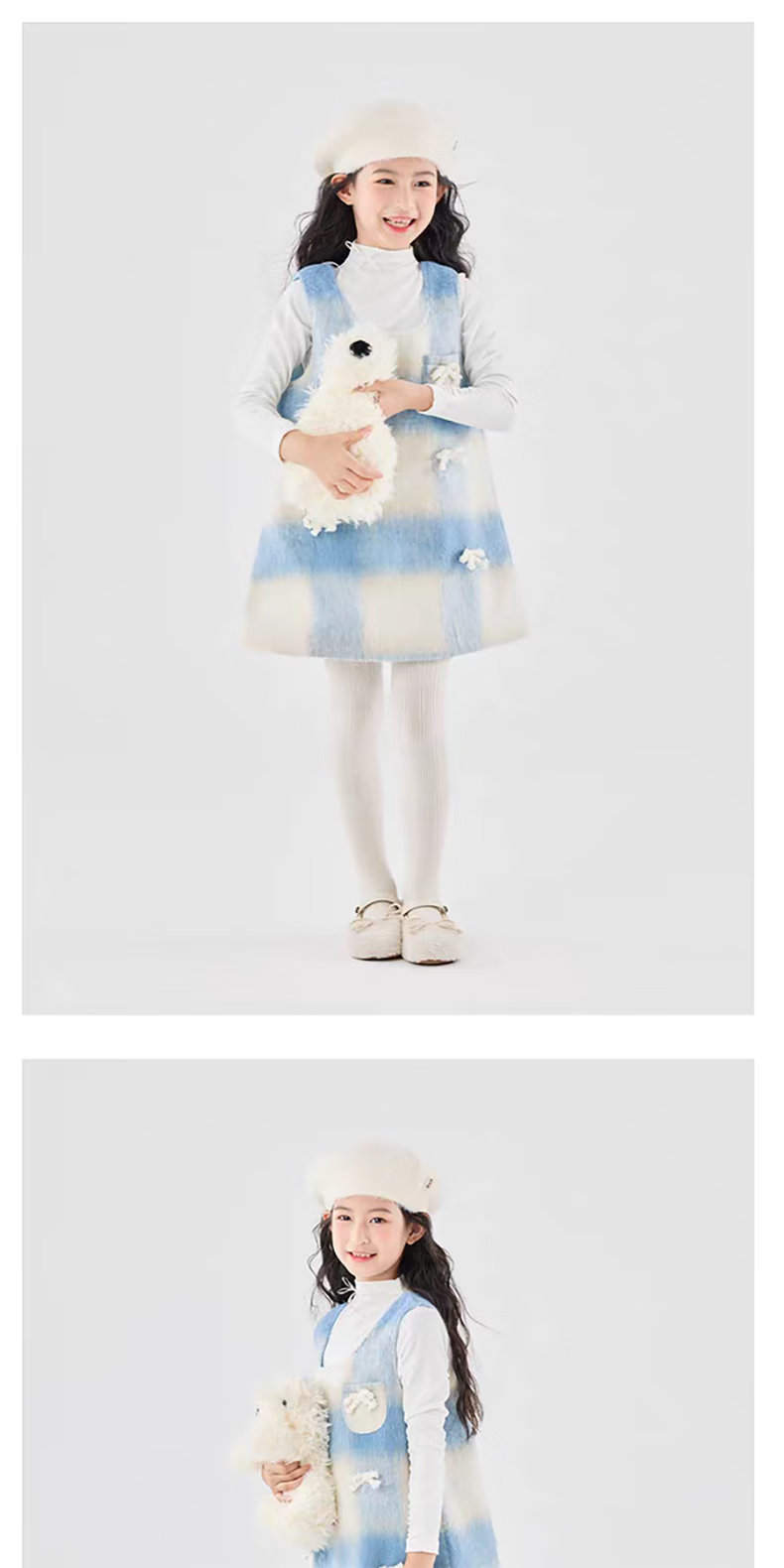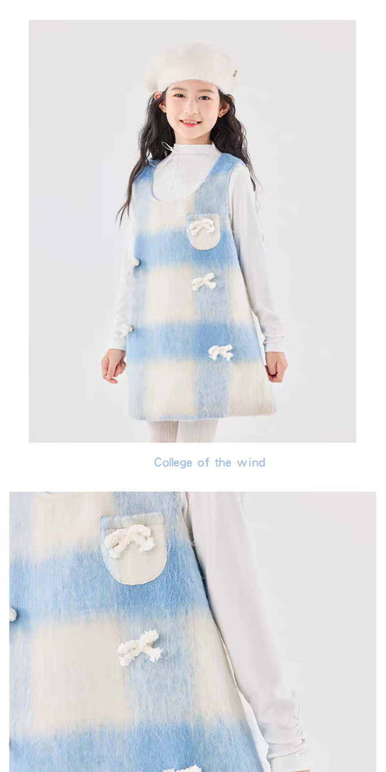 Moonkids children's clothing girls vest skirt 2025 autumn and winter new girls birthday dress plaid skirt children winter wear princess skirt 6178 blue and white plaid vest skirt 170 cm