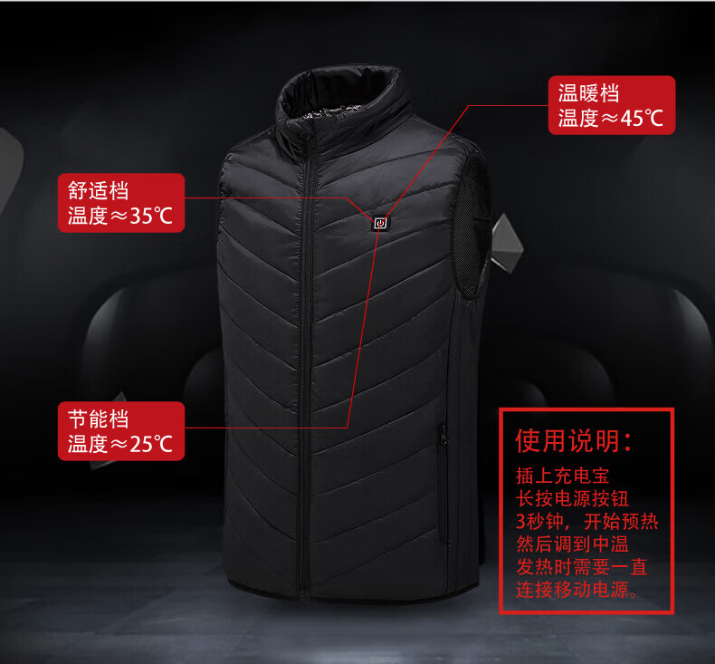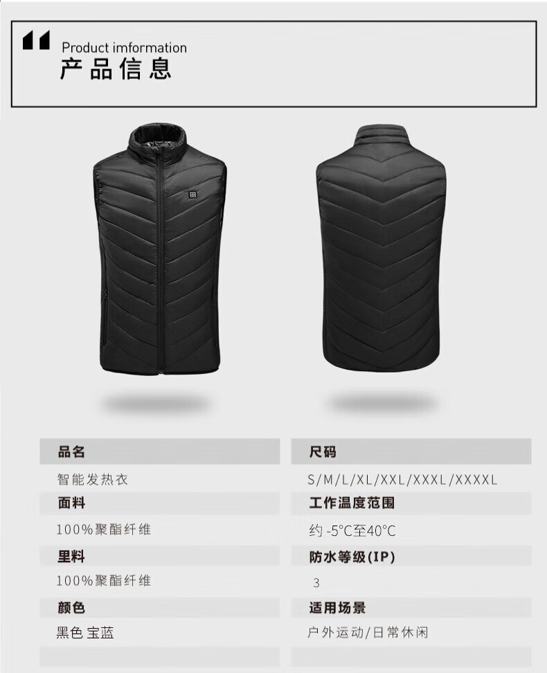 Universal electric heating health vest heating health vest charging smart thermal top men and women same style winter protection men and women same style 9 zone black ++ 1wha power bank S