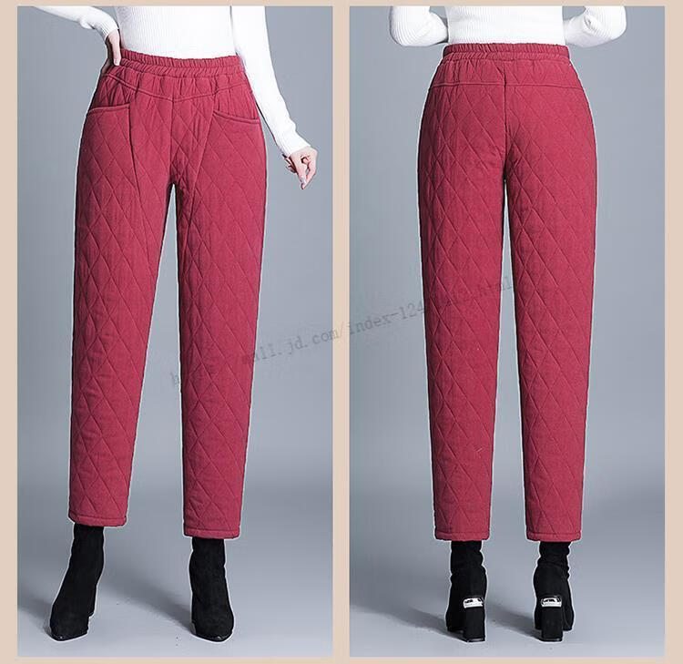 Hengyuanxiang's new autumn and winter warm cotton and linen pants for women to wear as outerwear, quilted and thickened carrot pants, retro loose and versatile harem pants, red and light, 3XL recommended 110-130 Jin Jin equals 0.5 kg