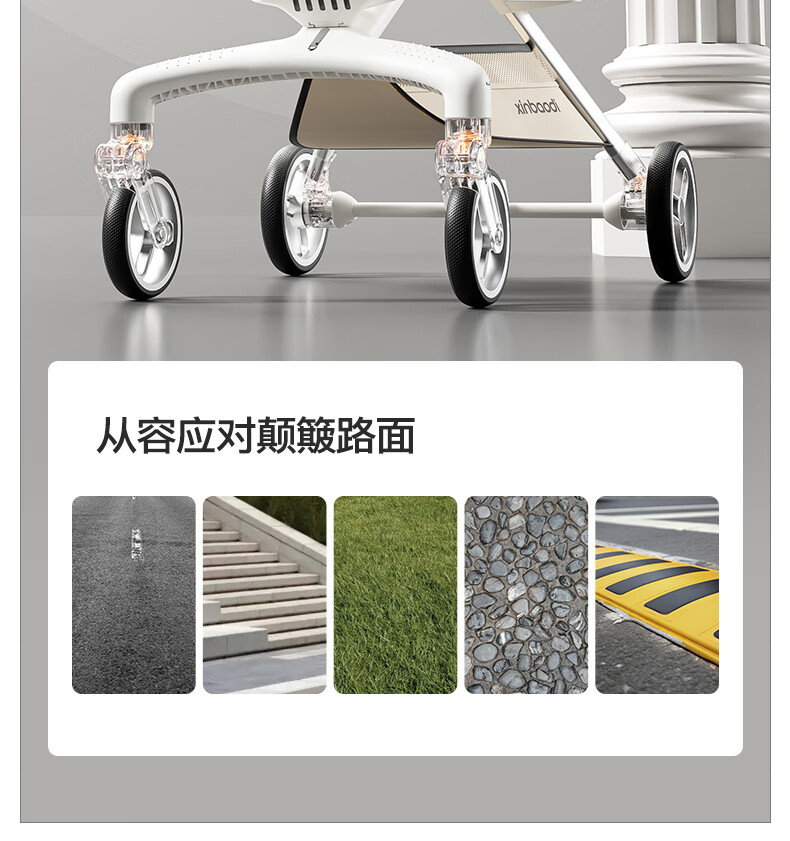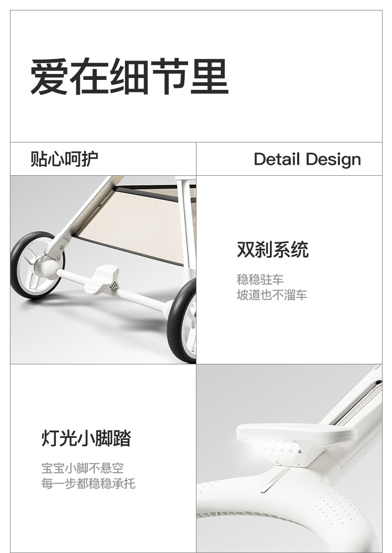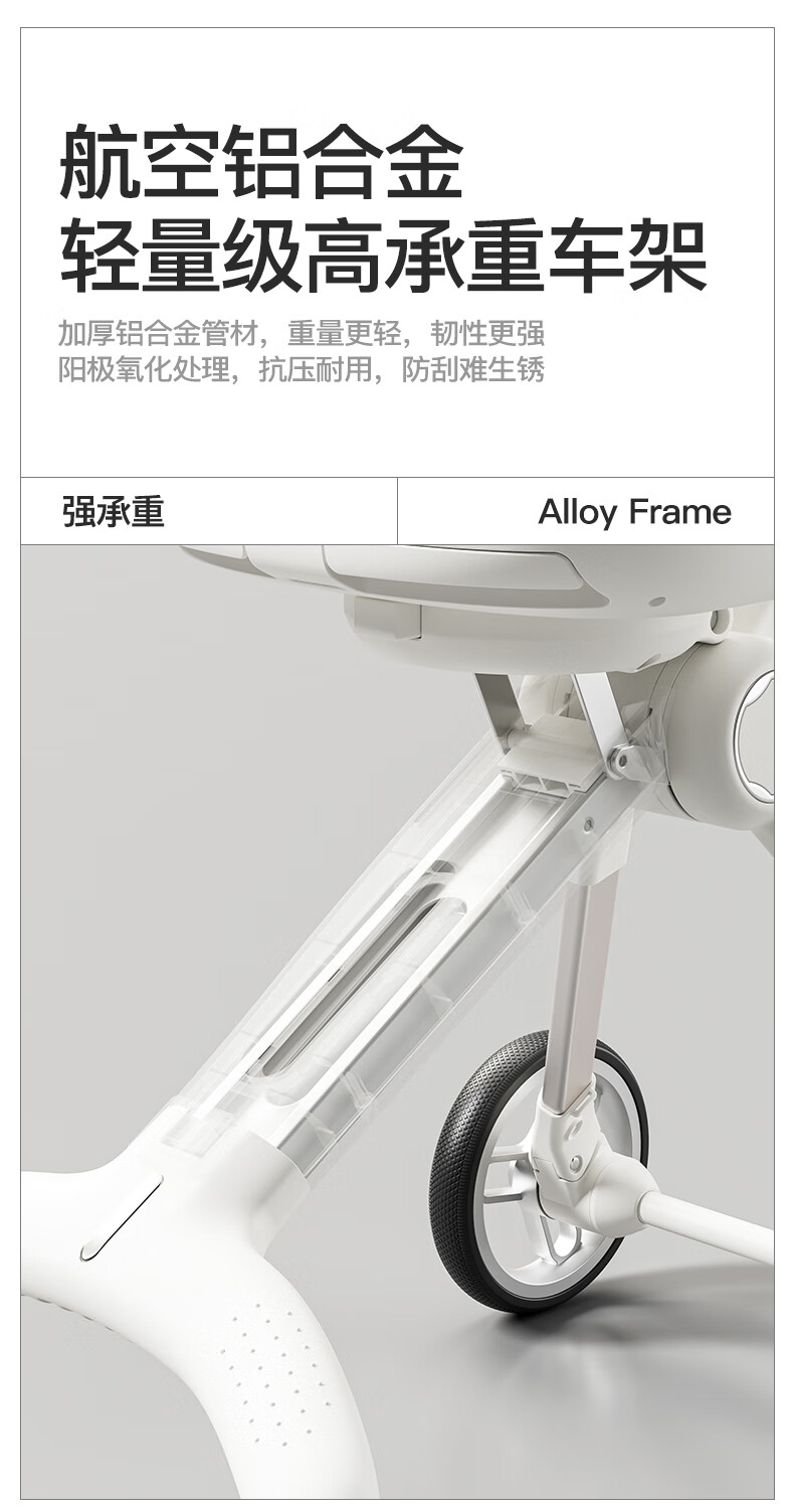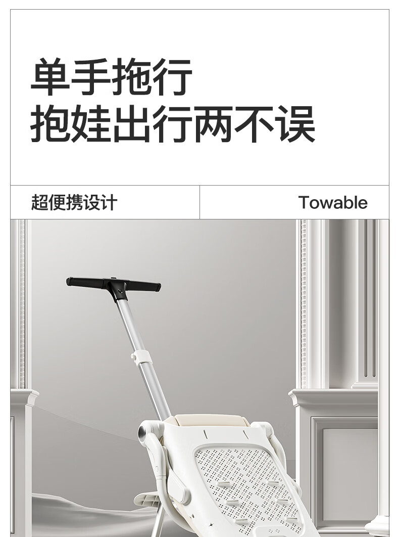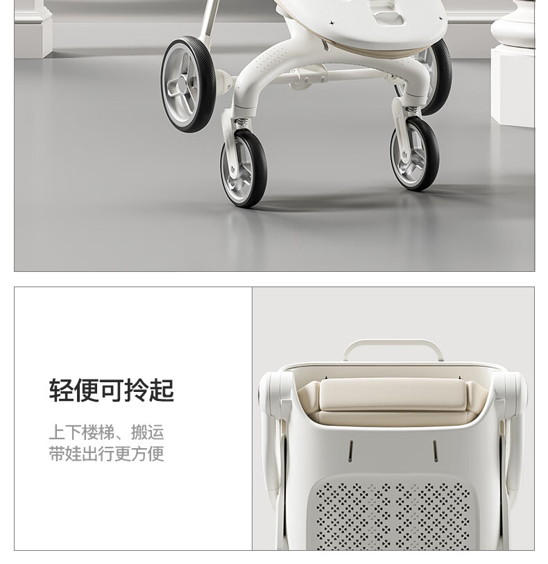 MAboso baby walking artifact baby stroller baby stroller can sit and lie down, two-way high view XBD co-branded Hepburn white aluminum alloy frame + soft rubber push handle + movable wings, free mosquito net +