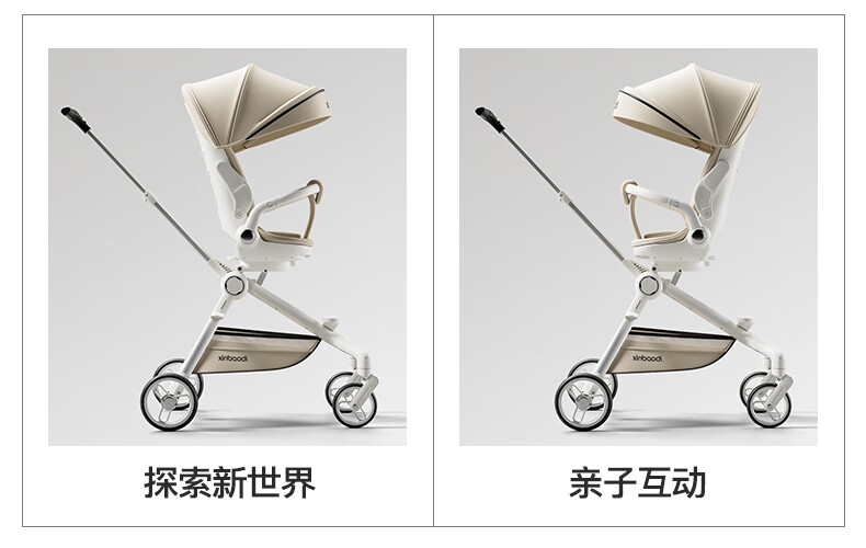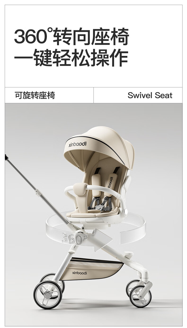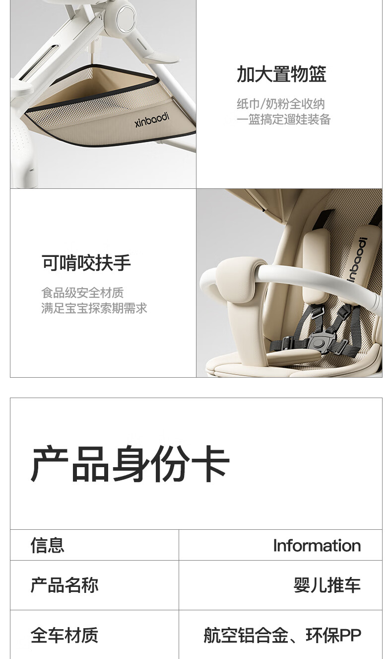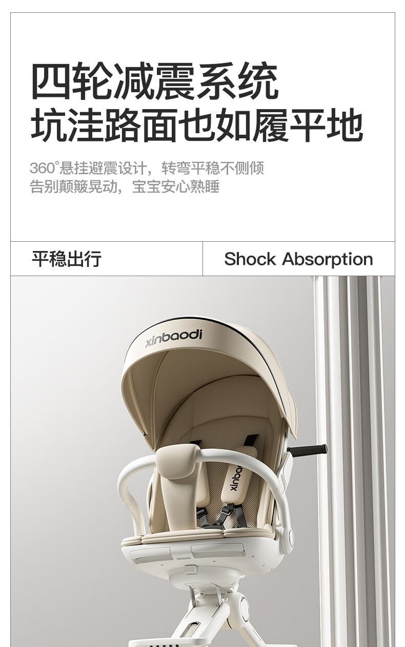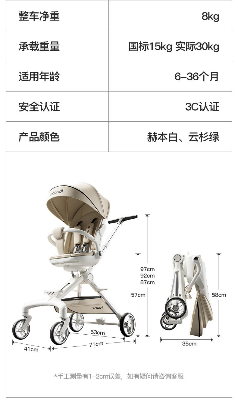 MAboso baby walking artifact baby stroller baby stroller can sit and lie down, two-way high view XBD co-branded Hepburn white aluminum alloy frame + soft rubber push handle + movable wings, free mosquito net +