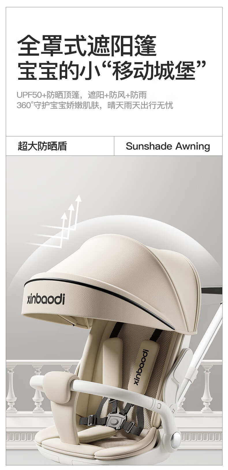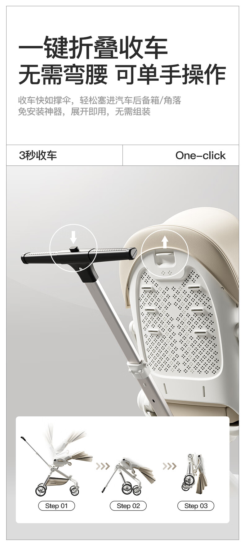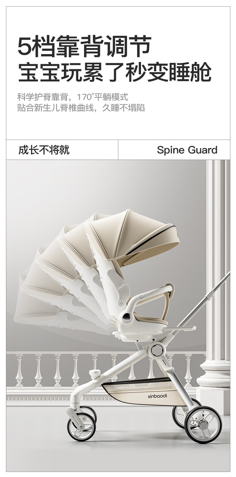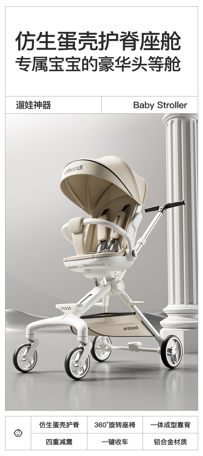 MAboso baby walking artifact baby stroller baby stroller can sit and lie down, two-way high view XBD co-branded Hepburn white aluminum alloy frame + soft rubber push handle + movable wings, free mosquito net +