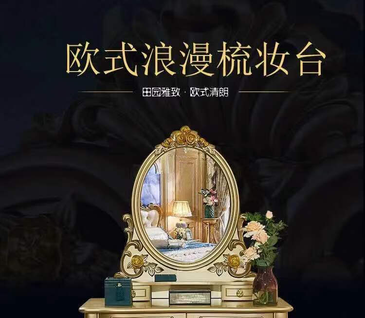Champagne gold European style dressing table bedroom small apartment Internet celebrity princess rich gold simple dressing table mirror 1 meter champagne gold round mirror dressing table + makeup stool