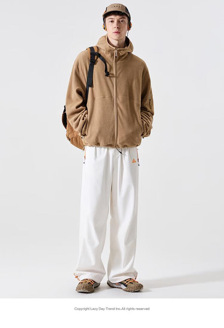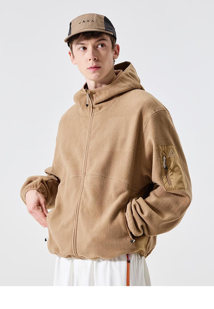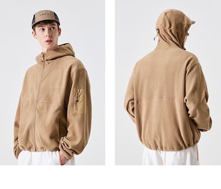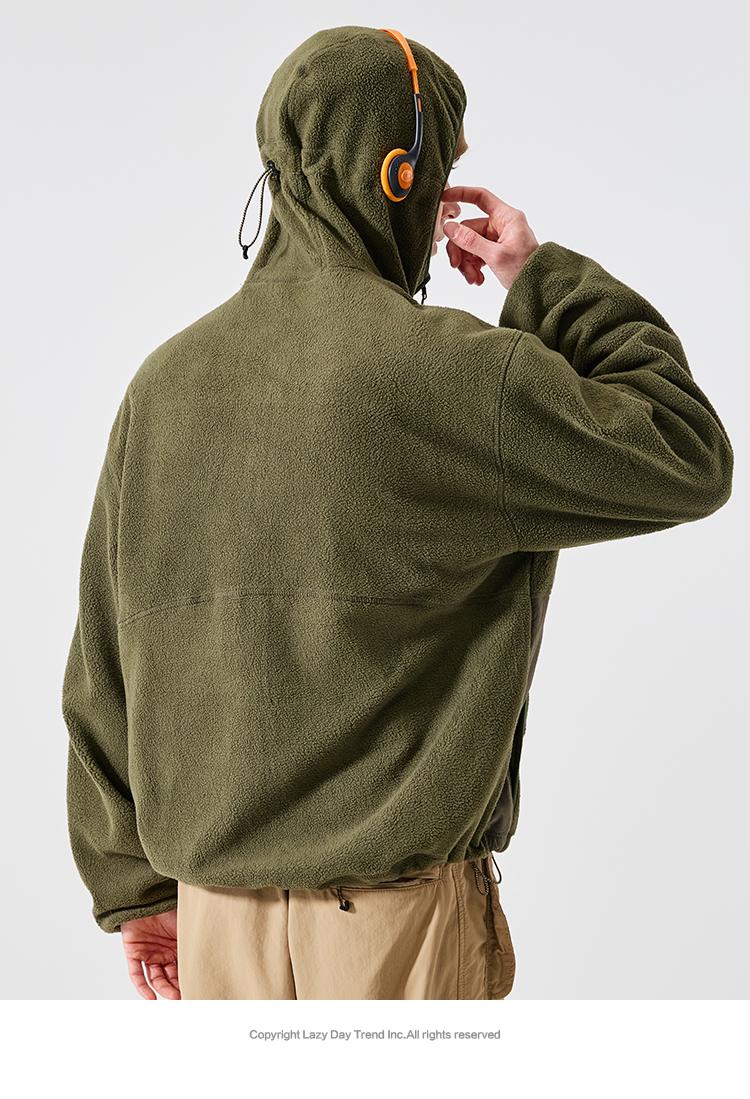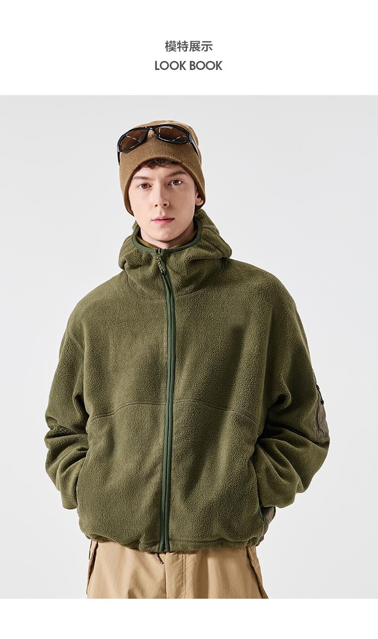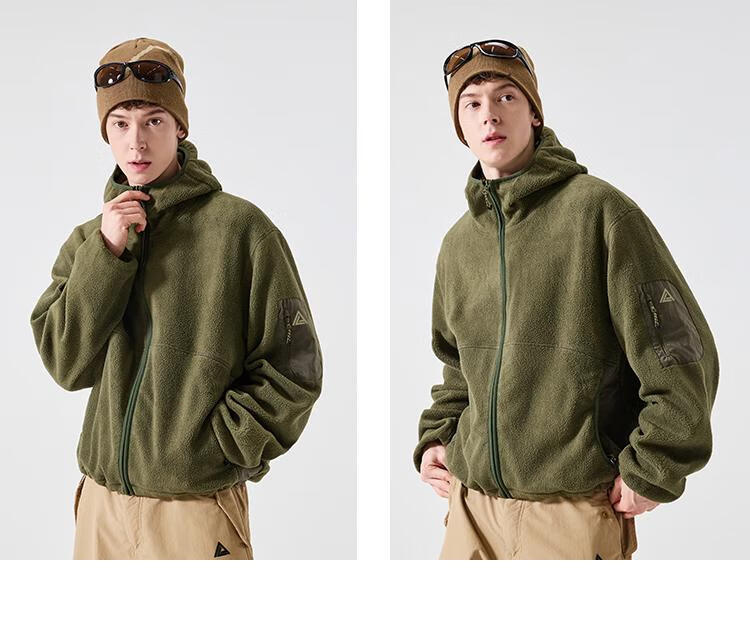 LAZY DAY TREND 340g polar fleece cardigan hooded sweatshirt men's autumn and winter loose mountaineering warm fleece jacket military green S