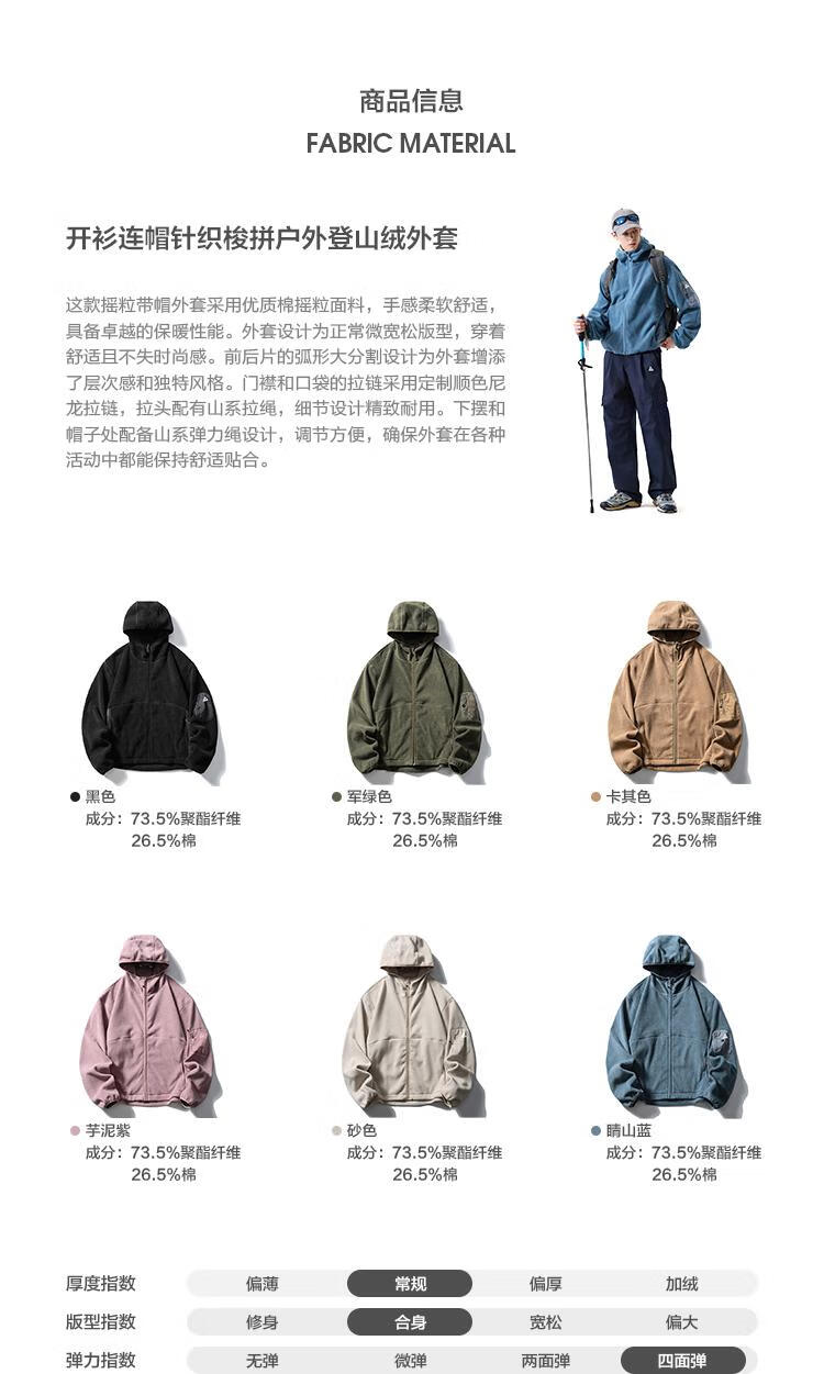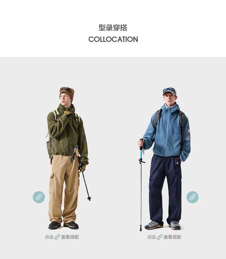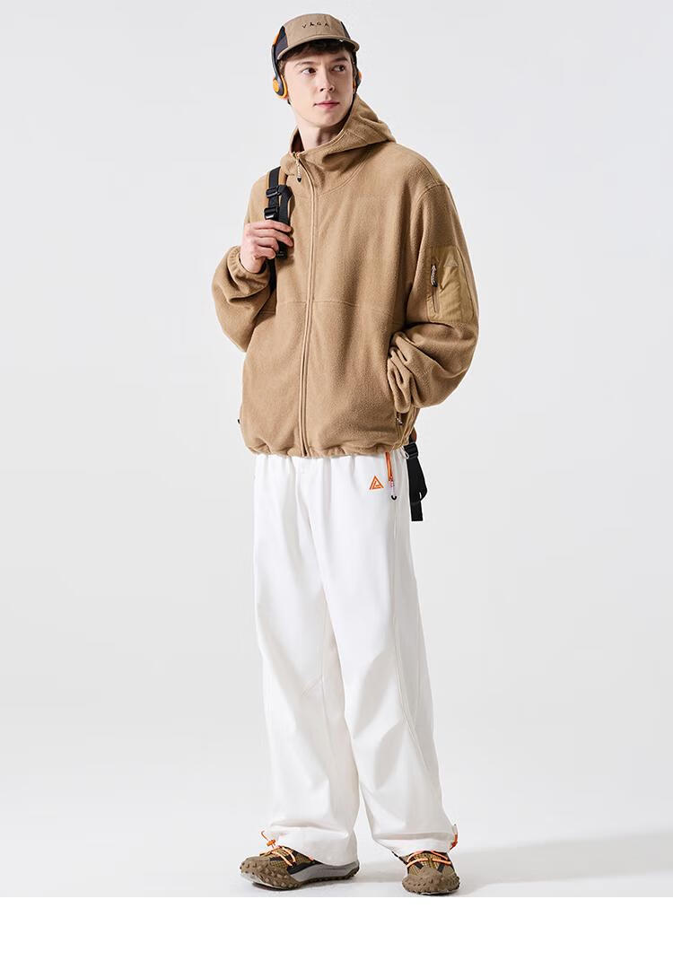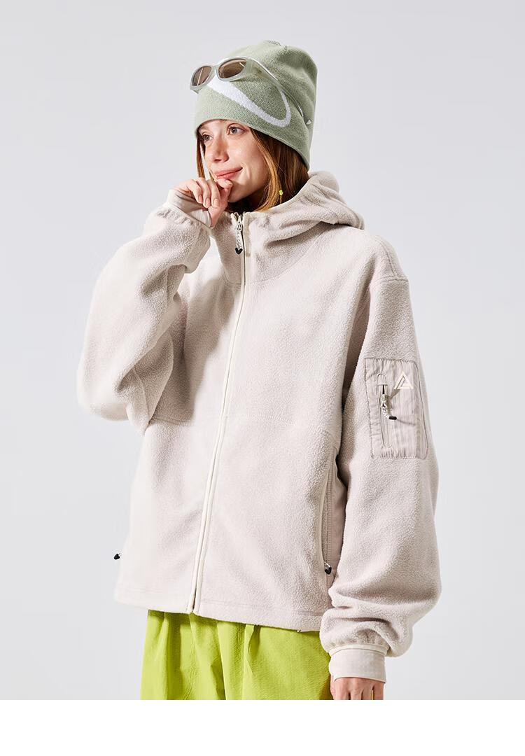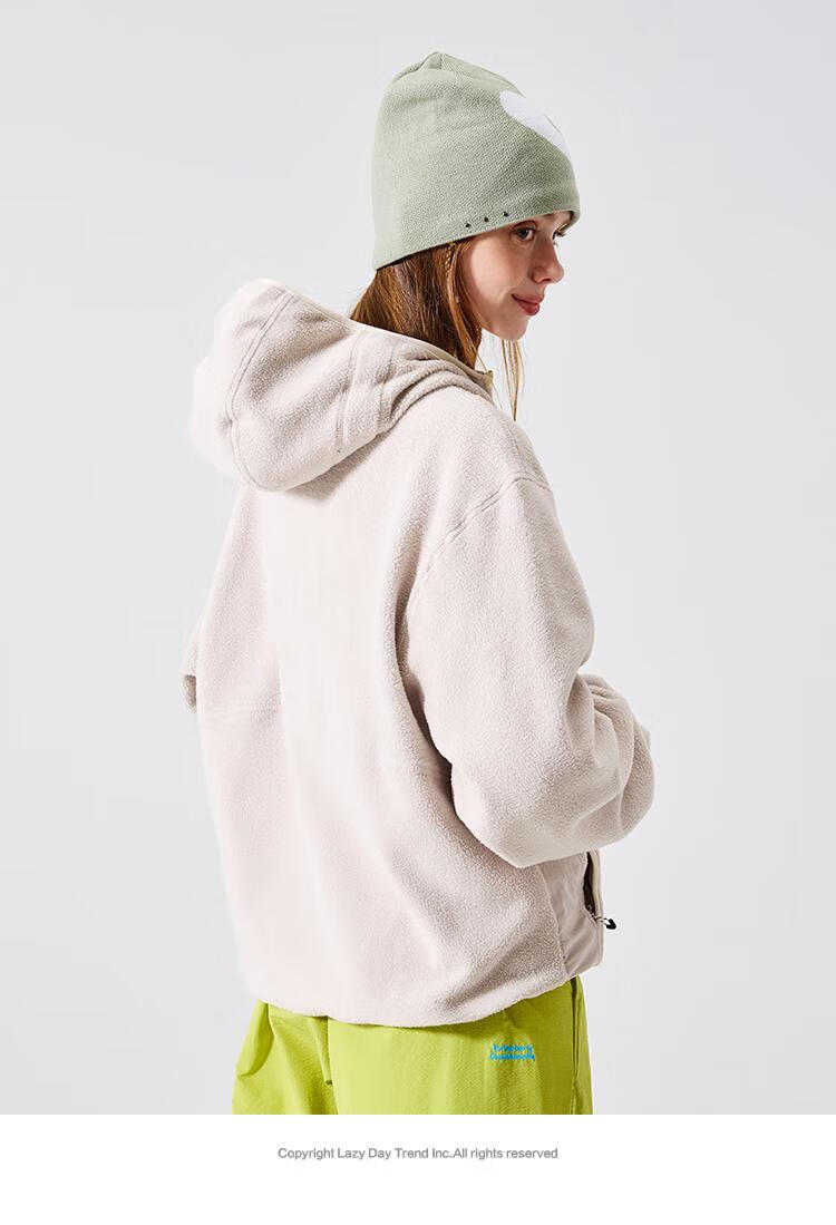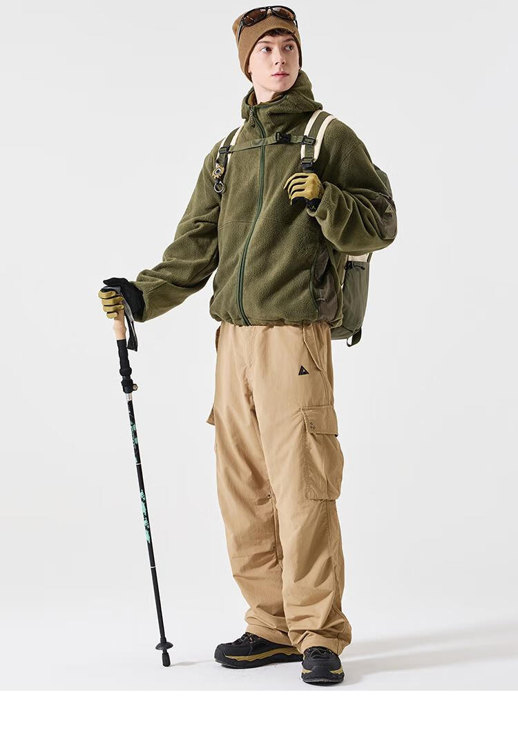 LAZY DAY TREND 340g polar fleece cardigan hooded sweatshirt men's autumn and winter loose mountaineering warm fleece jacket military green S
