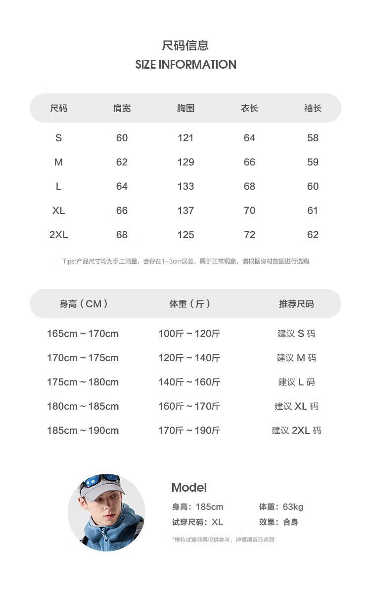 China (cm) 165 / 88-90 170 / 96-98 175 / 108-110 180 / 118-122 185 / 126-130