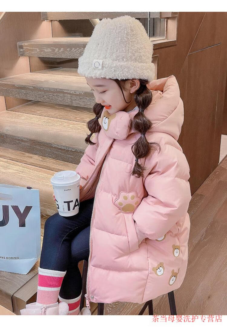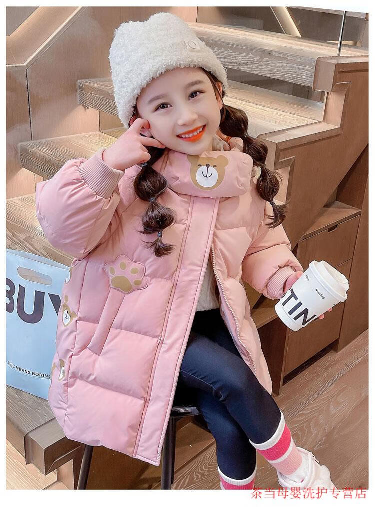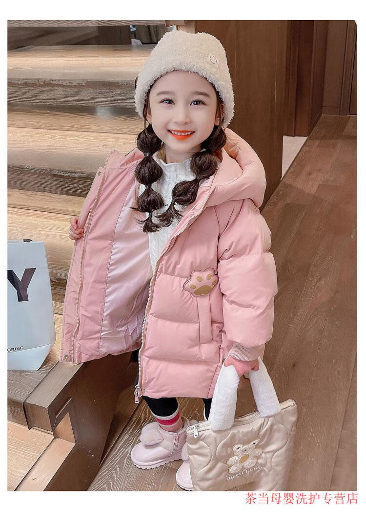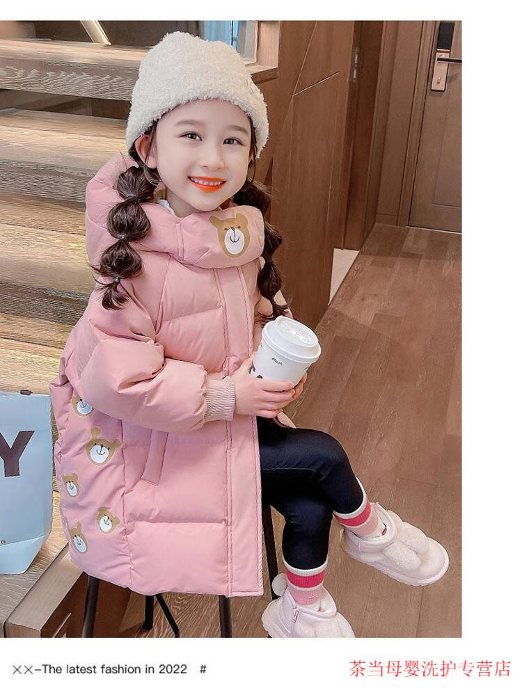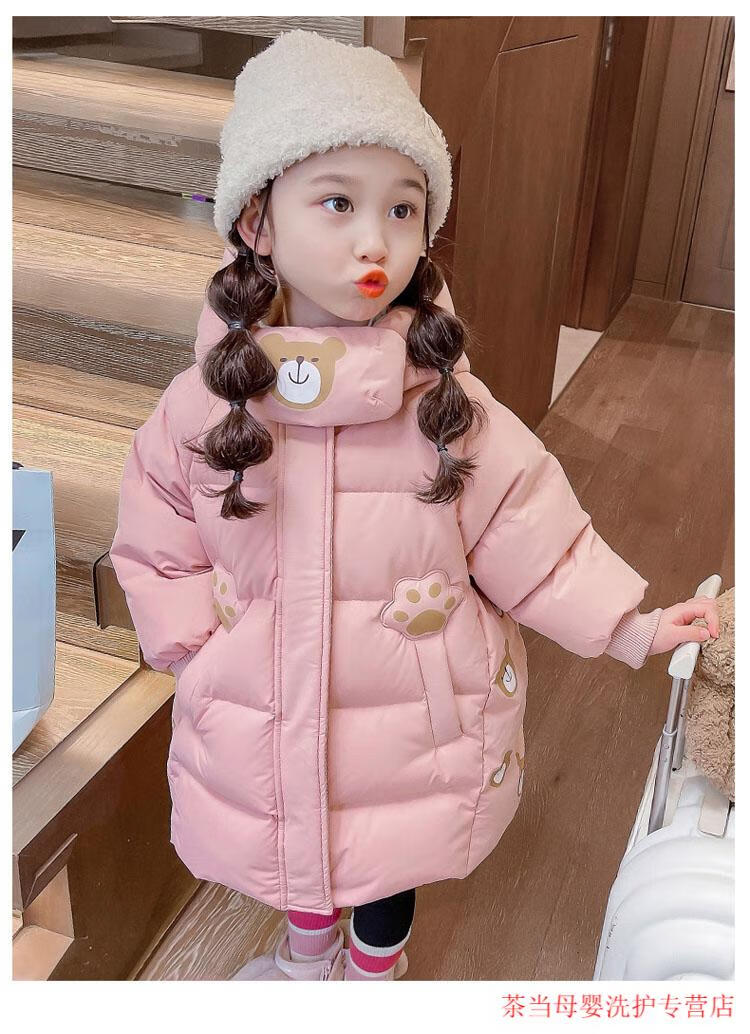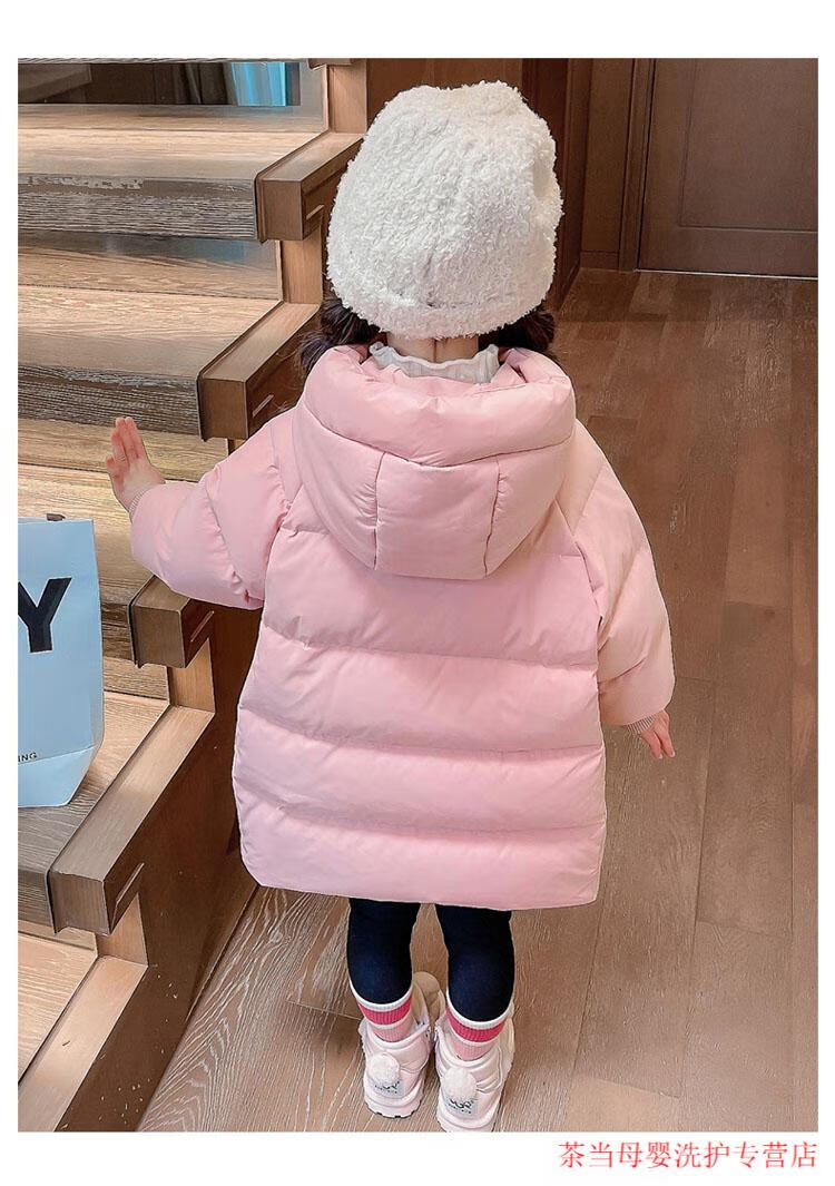 G.duck Girls' Down Jacket Winter Thickened Children's Fashionable Korean Style Mid-Length Washable and Dirty-Resistant Jacket Pink Thickened Upgraded Non-Running Cotton 90 Suitable Height 80-90cm Age One and a Half Years to About 2 Years Old