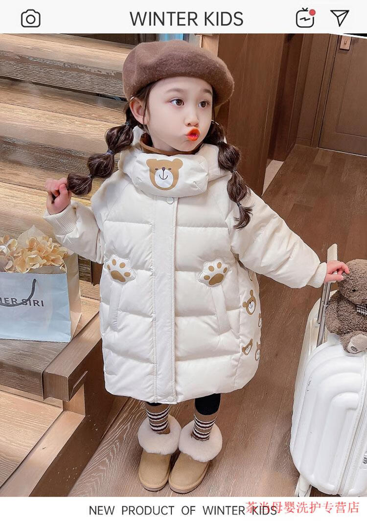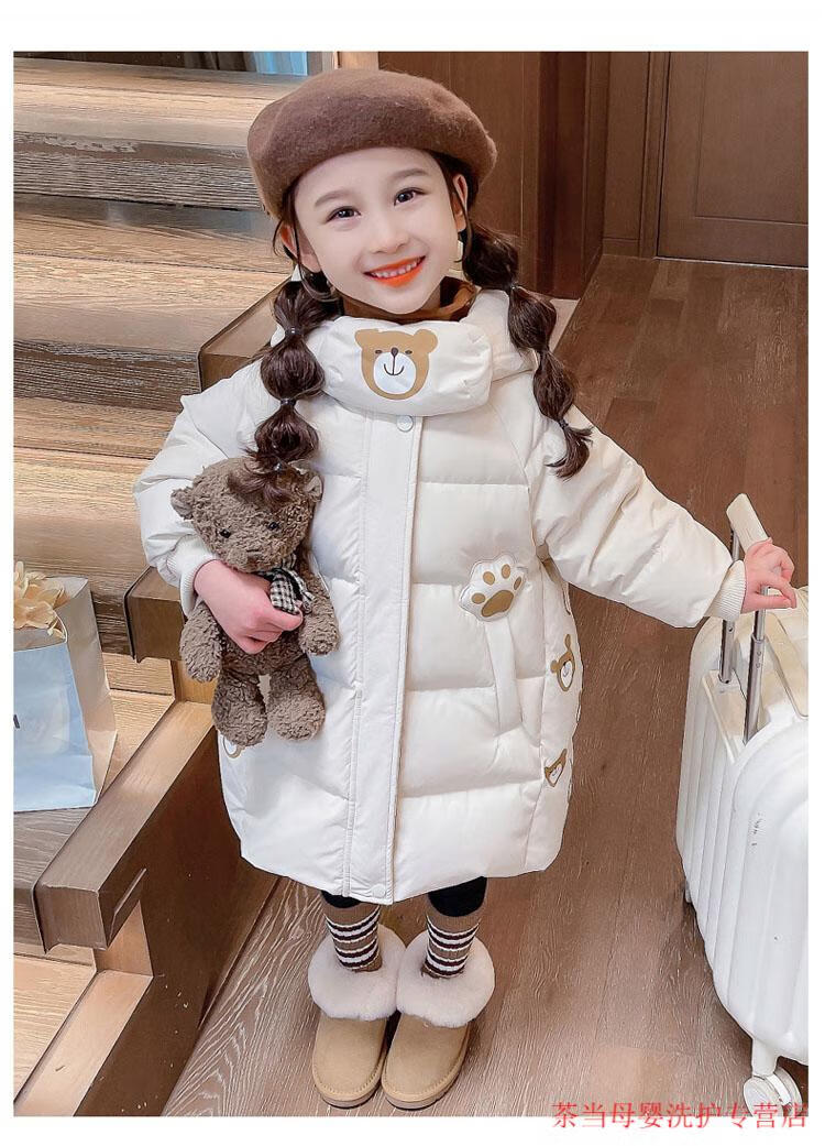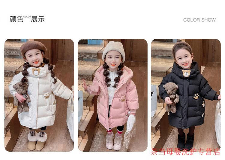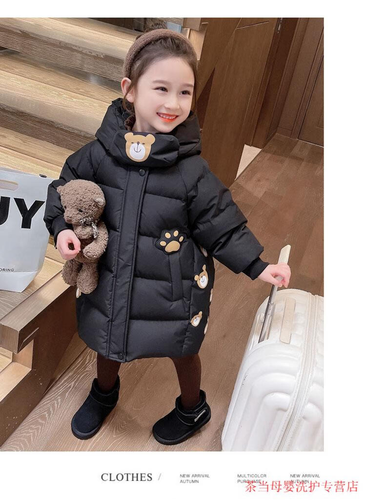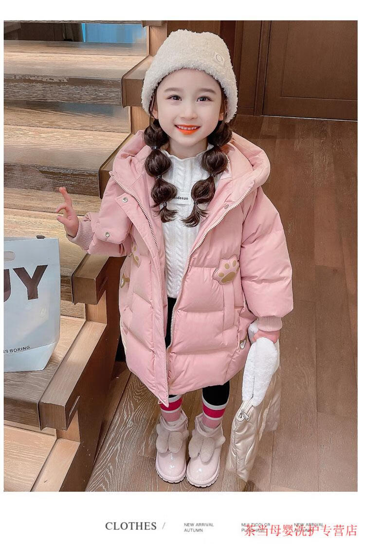 G.duck Girls' Down Jacket Winter Thickened Children's Fashionable Korean Style Mid-Length Washable and Dirty-Resistant Jacket Pink Thickened Upgraded Non-Running Cotton 90 Suitable Height 80-90cm Age One and a Half Years to About 2 Years Old