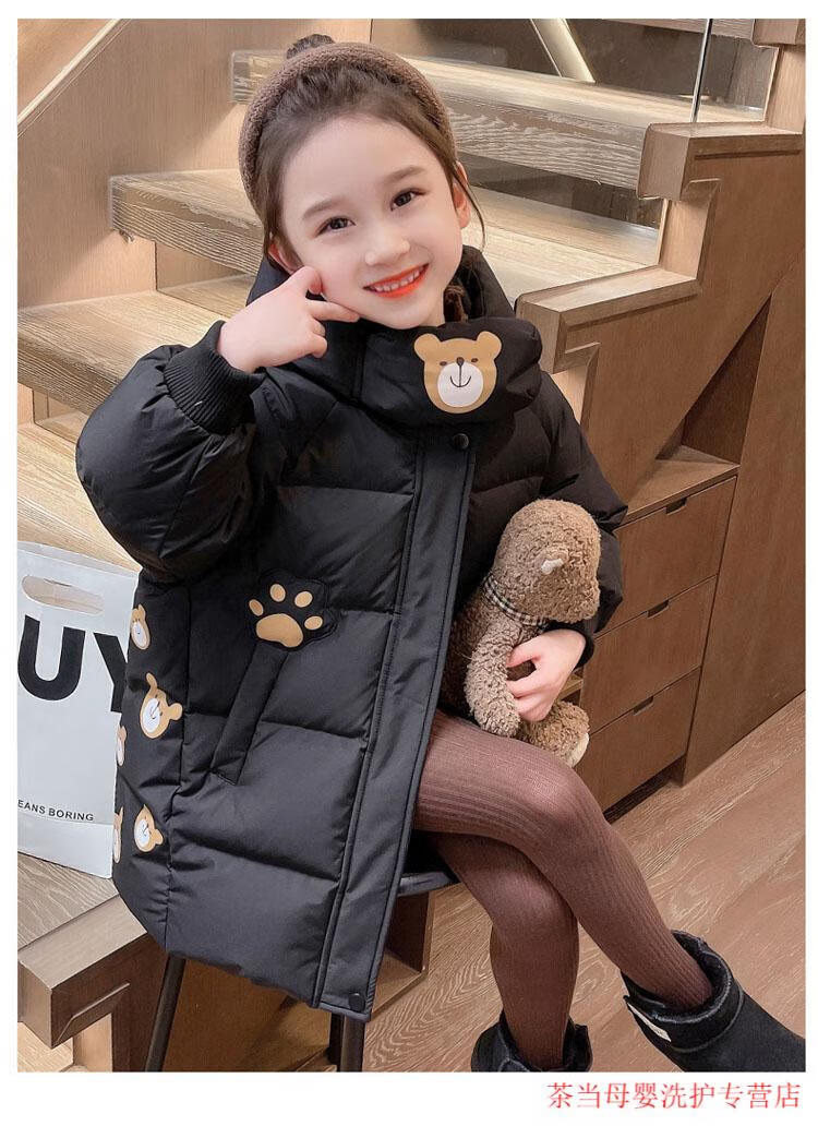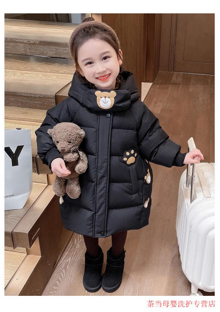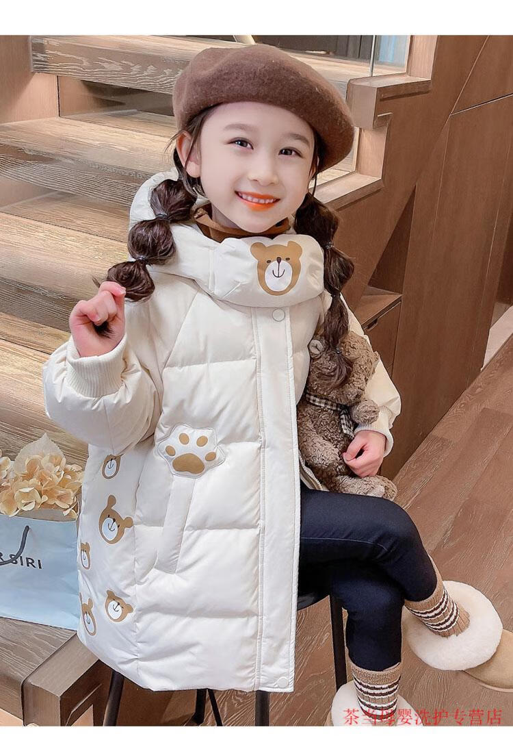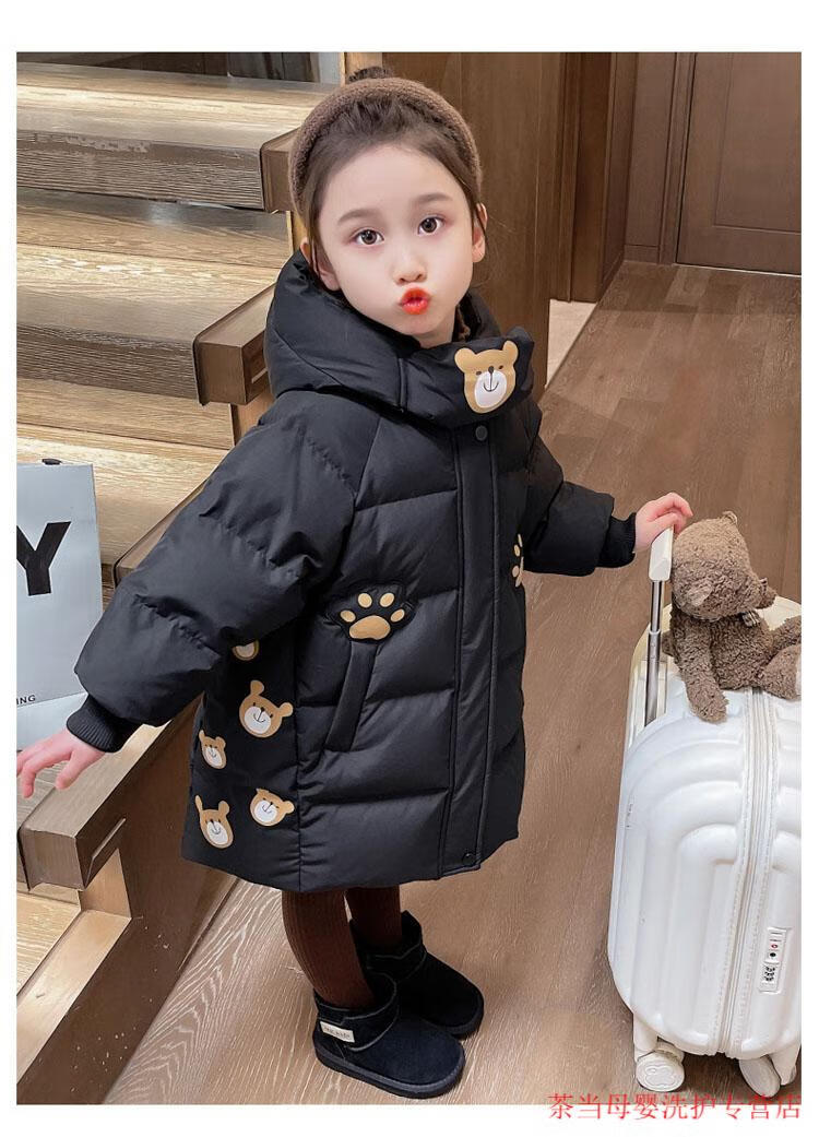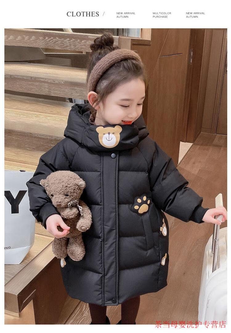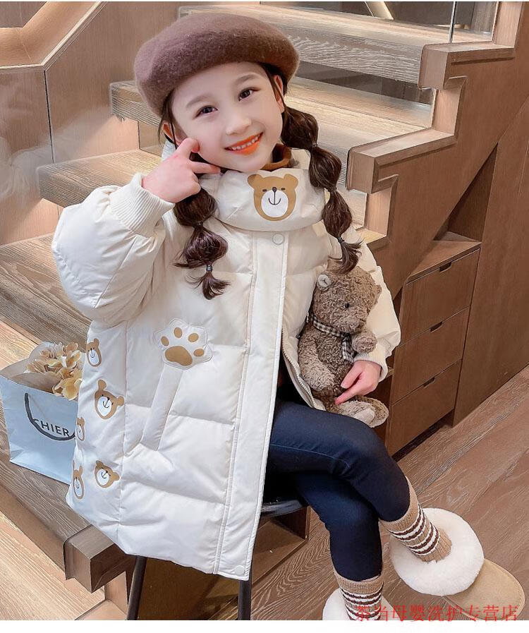 G.duck Girls' Down Jacket Winter Thickened Children's Fashionable Korean Style Mid-Length Washable and Dirty-Resistant Jacket Pink Thickened Upgraded Non-Running Cotton 90 Suitable Height 80-90cm Age One and a Half Years to About 2 Years Old