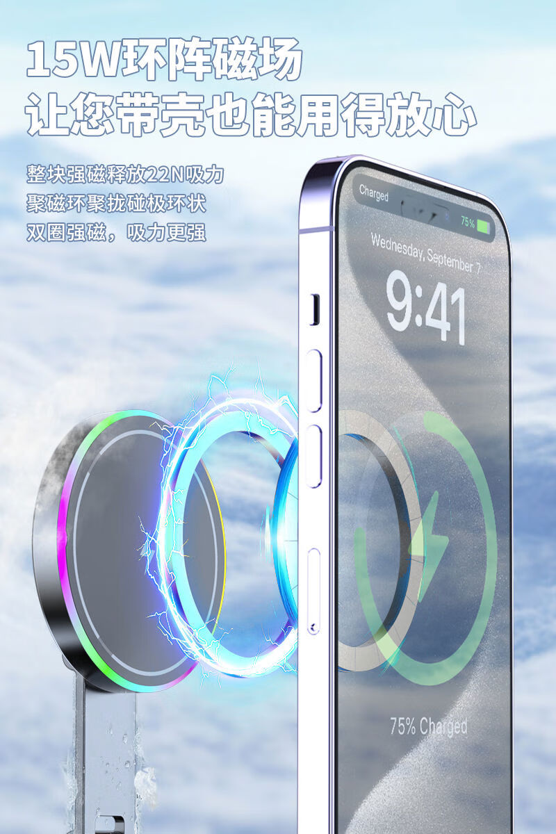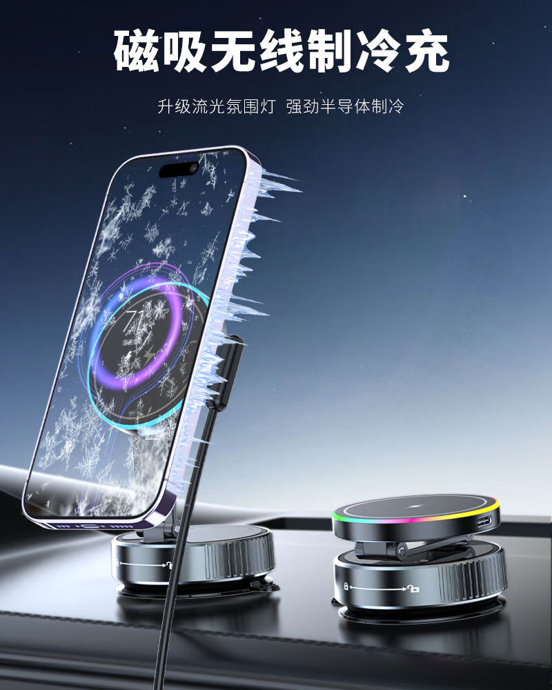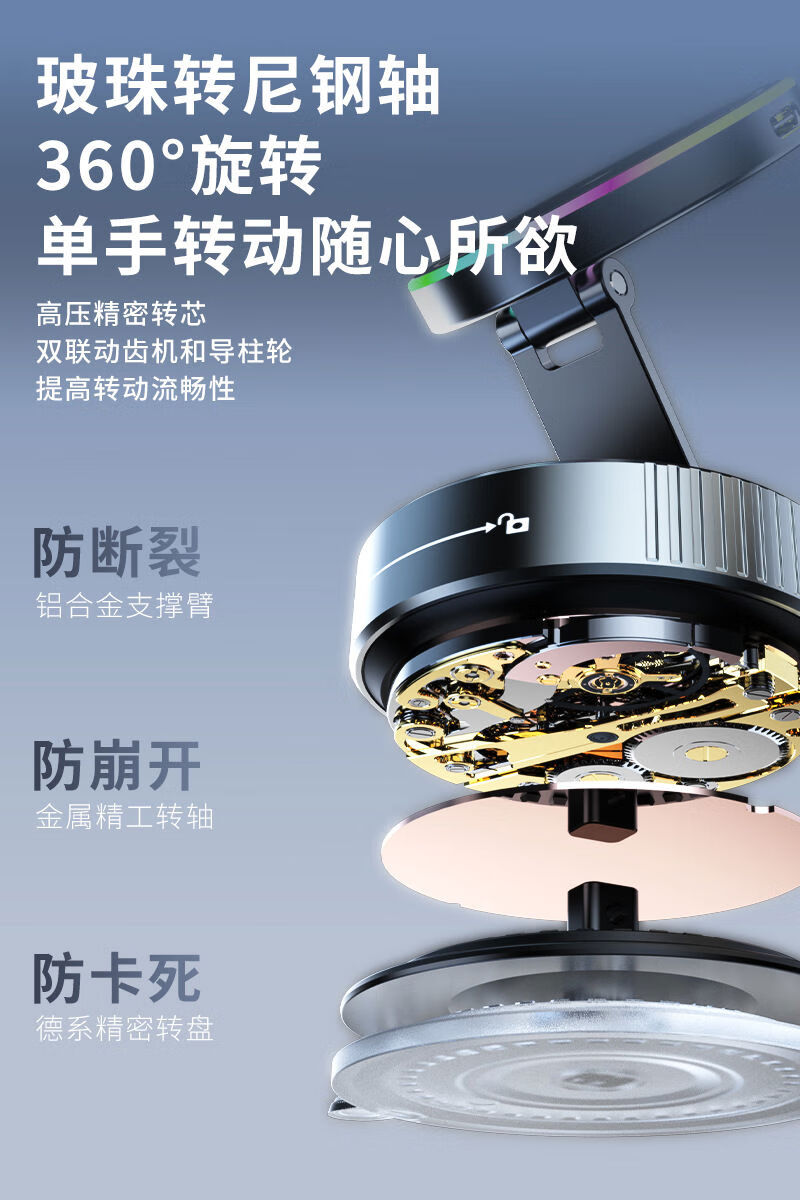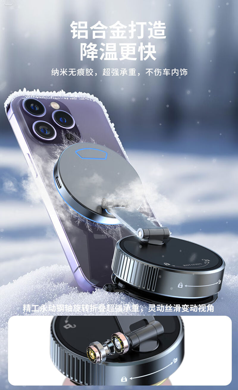 Zailu 2025 new vacuum suction cup mobile phone holder magnetic wireless charging car navigation portable desktop flagship 15W wireless charging metal support arm