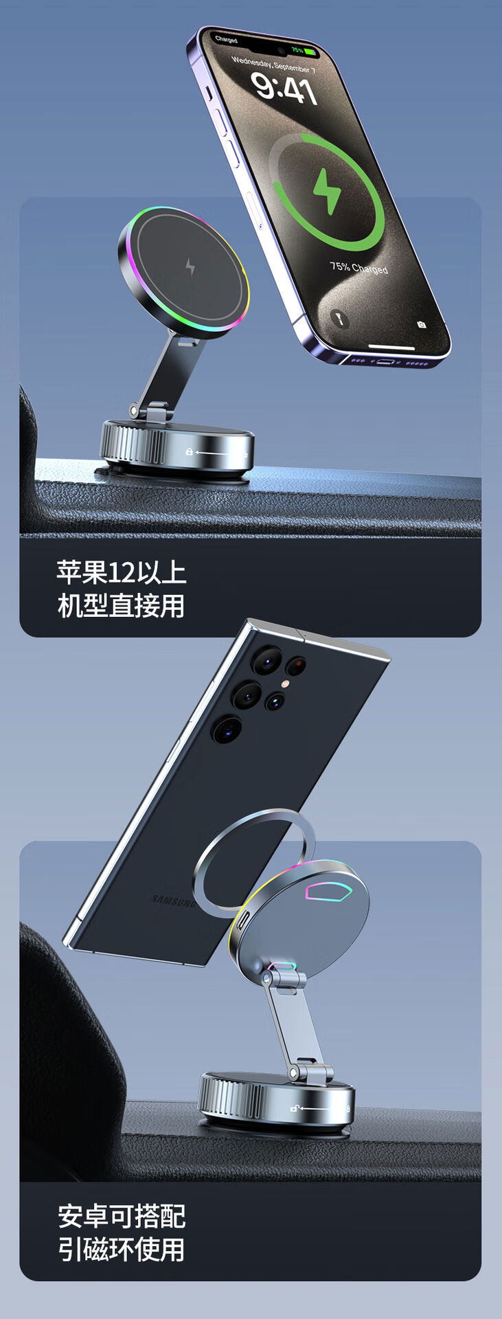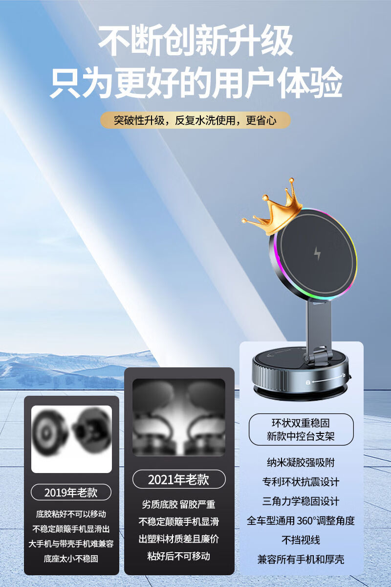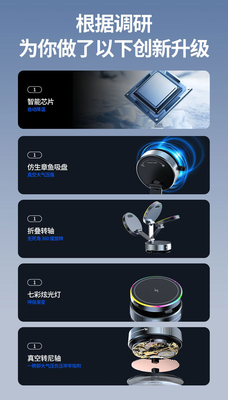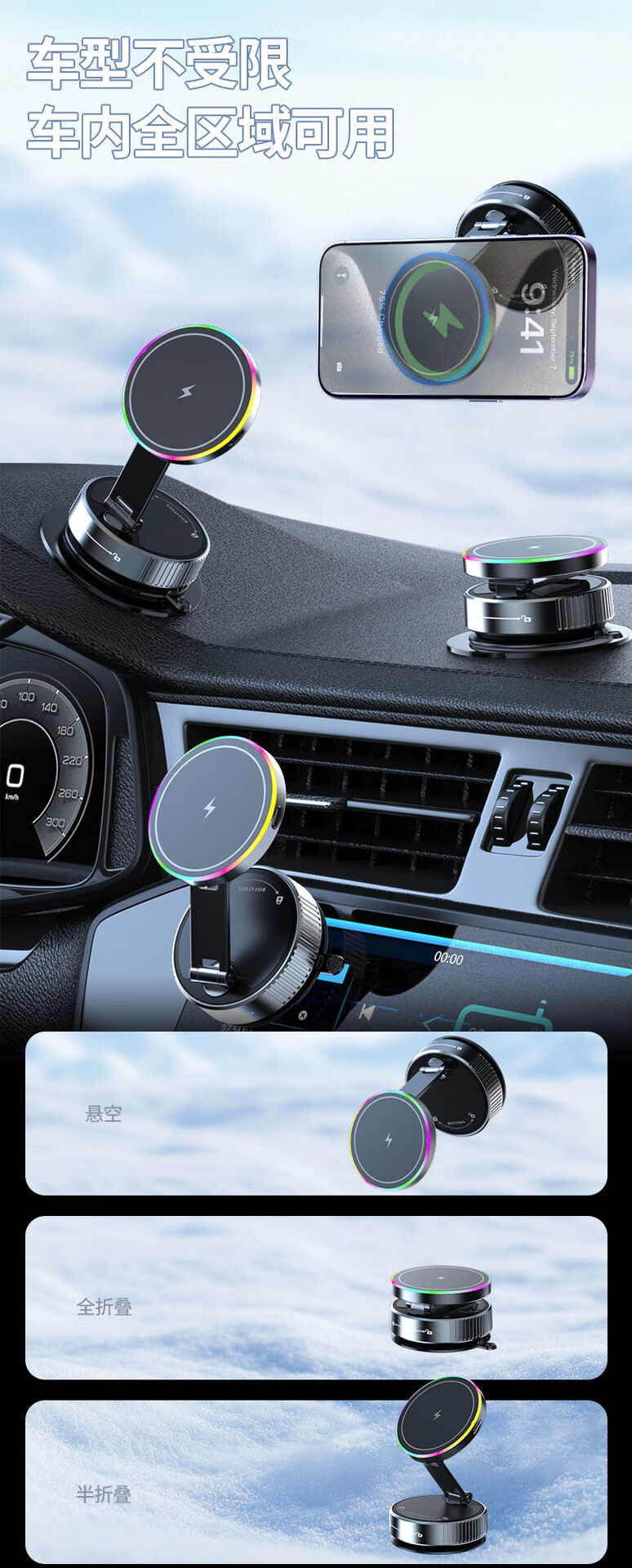 Zailu 2025 new vacuum suction cup mobile phone holder magnetic wireless charging car navigation portable desktop flagship 15W wireless charging metal support arm