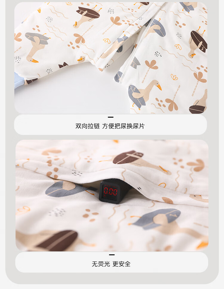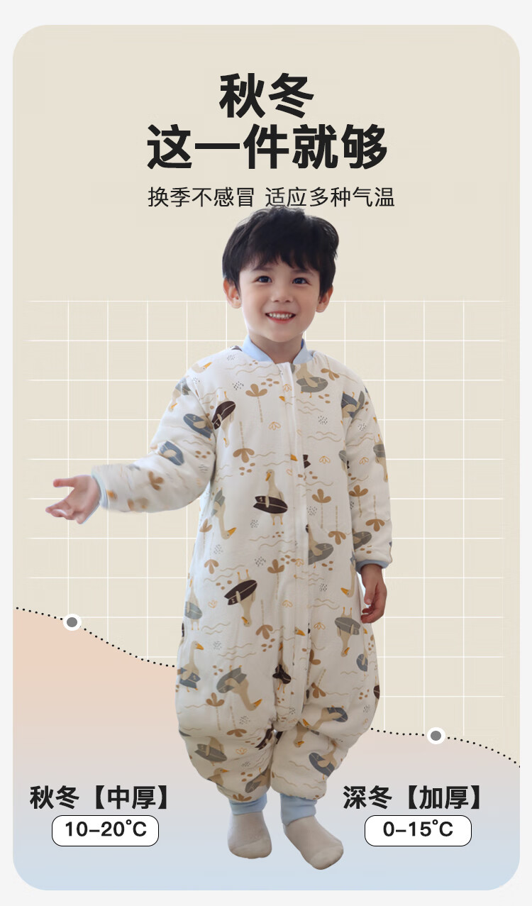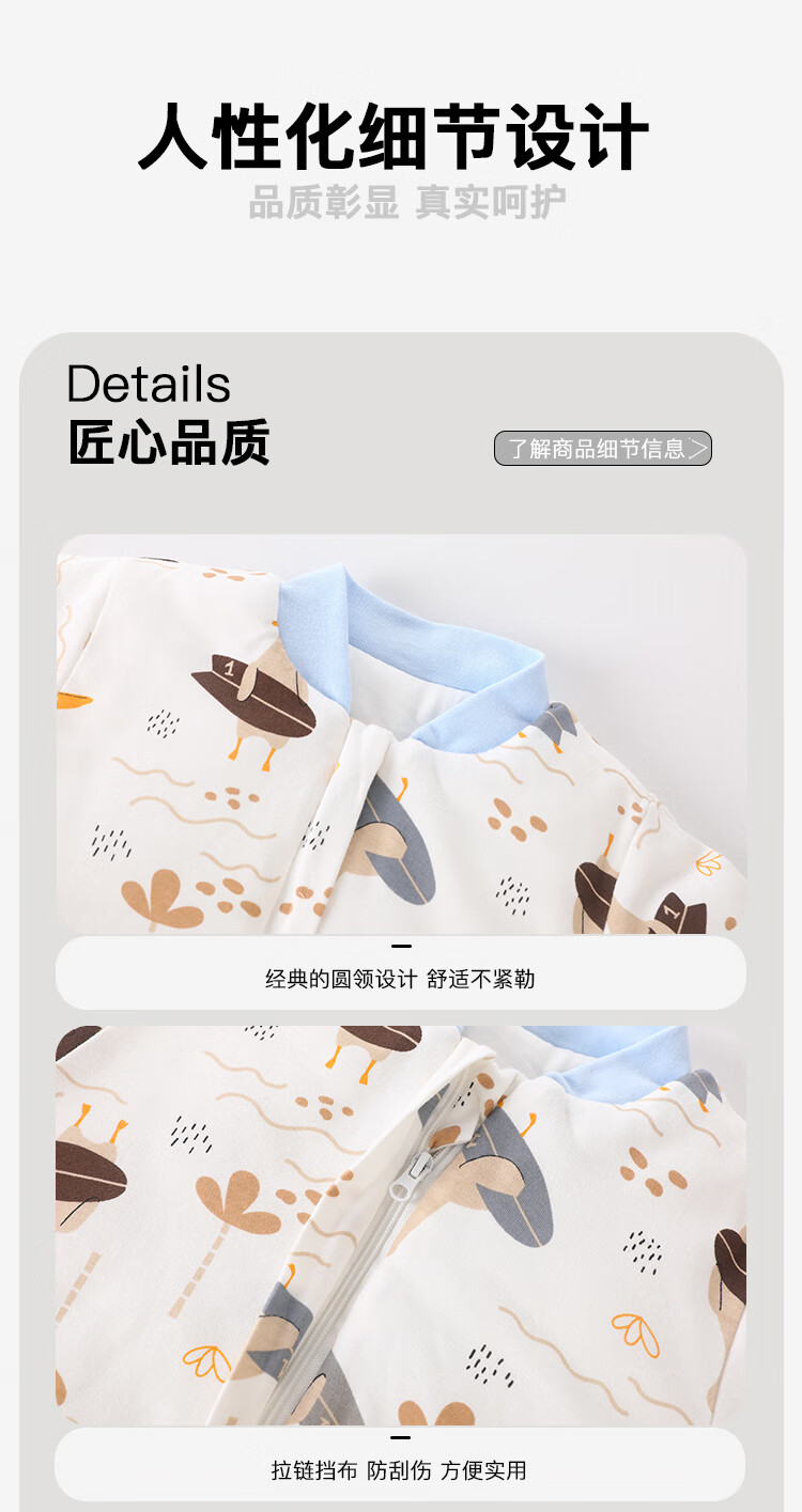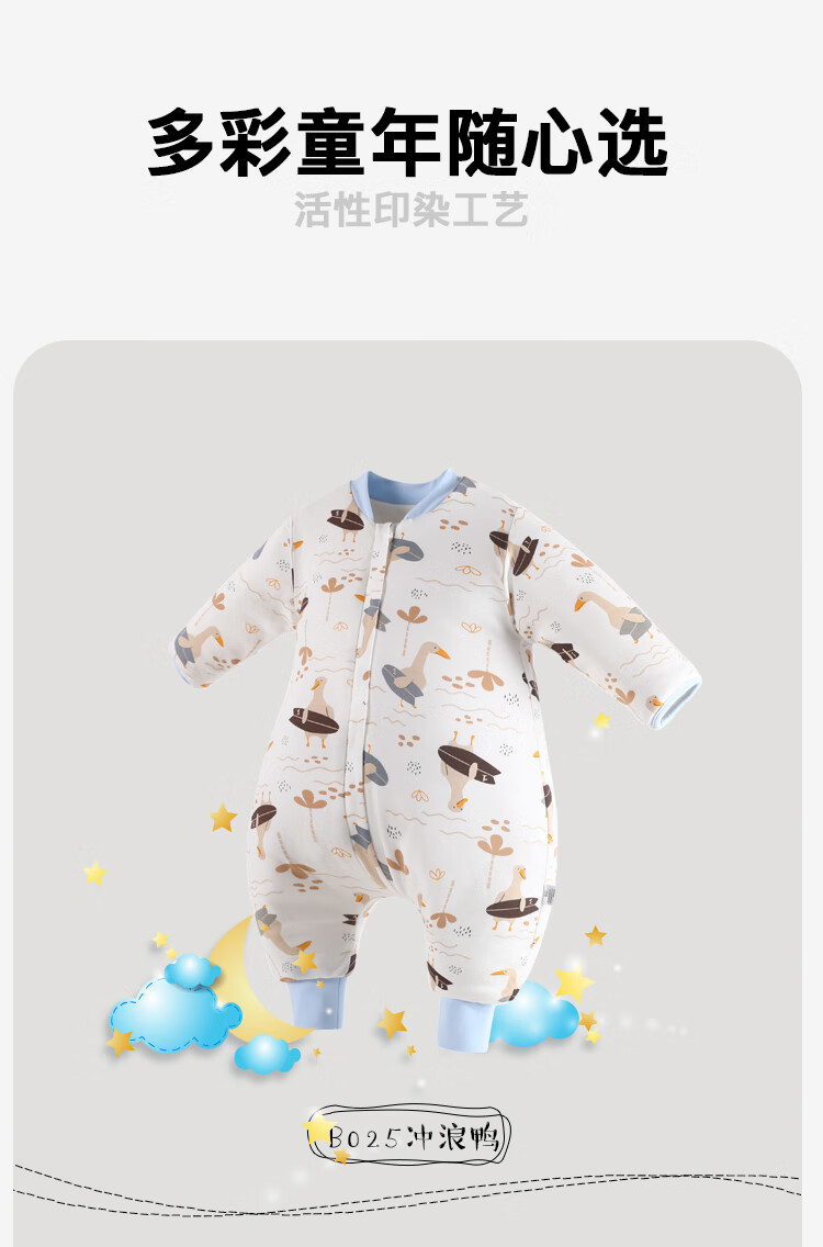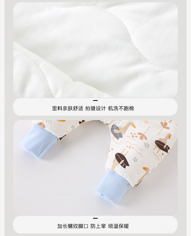Baby sleeping bag autumn and winter quilted baby split-leg anti-kick blanket newborn jumpsuit children's zippered long-sleeved thickened 025 surf duck medium thick section 80 size height 60cm-75cm