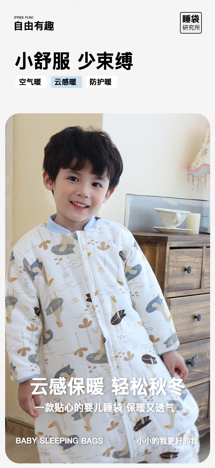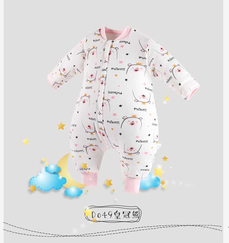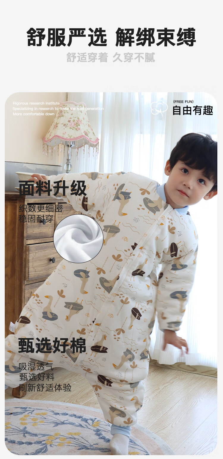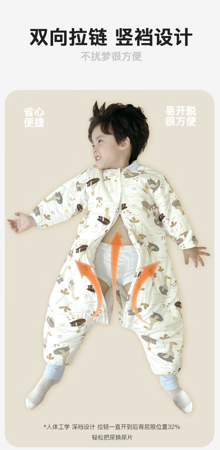 Baby sleeping bag autumn and winter quilted baby split-leg anti-kick blanket newborn jumpsuit children's zippered long-sleeved thickened 025 surf duck medium thick section 80 size height 60cm-75cm