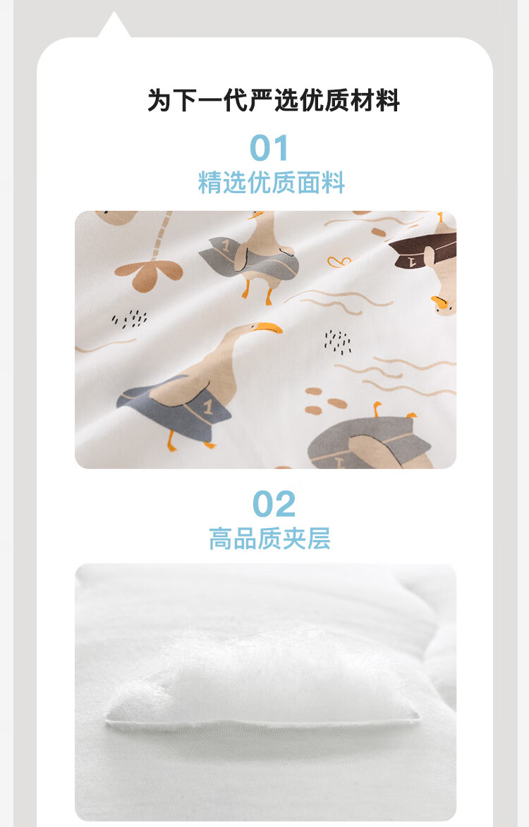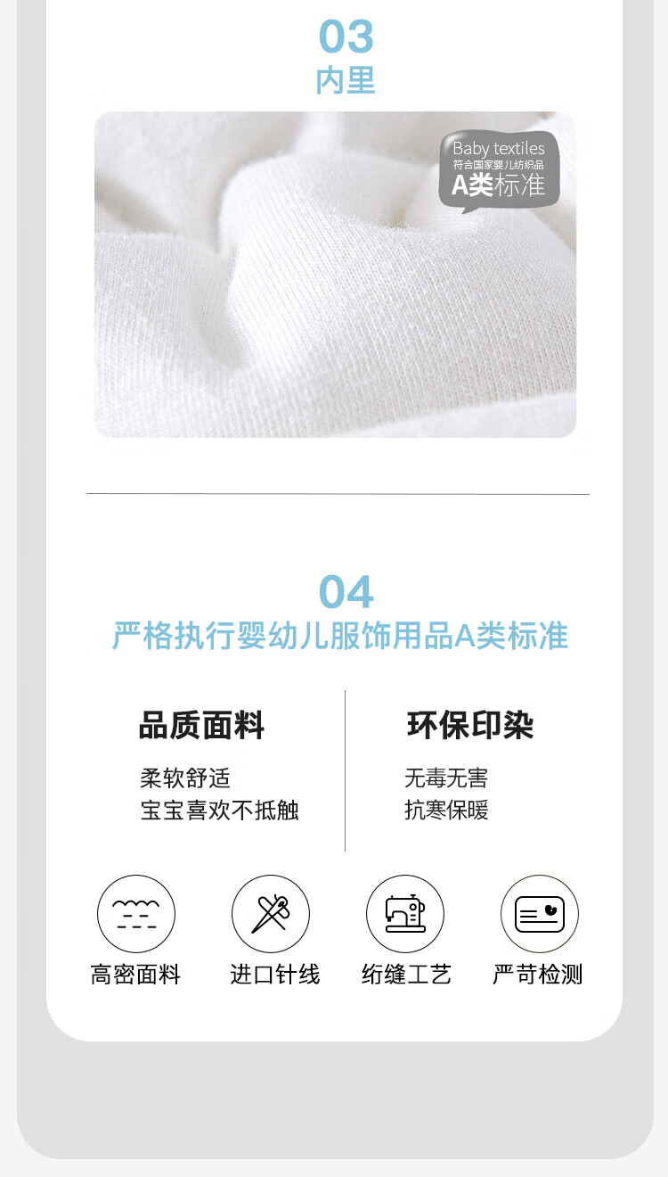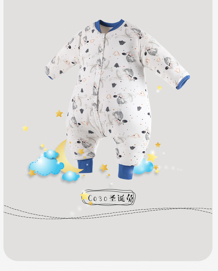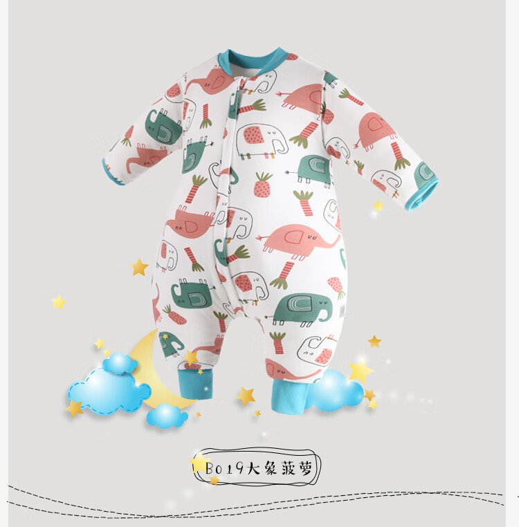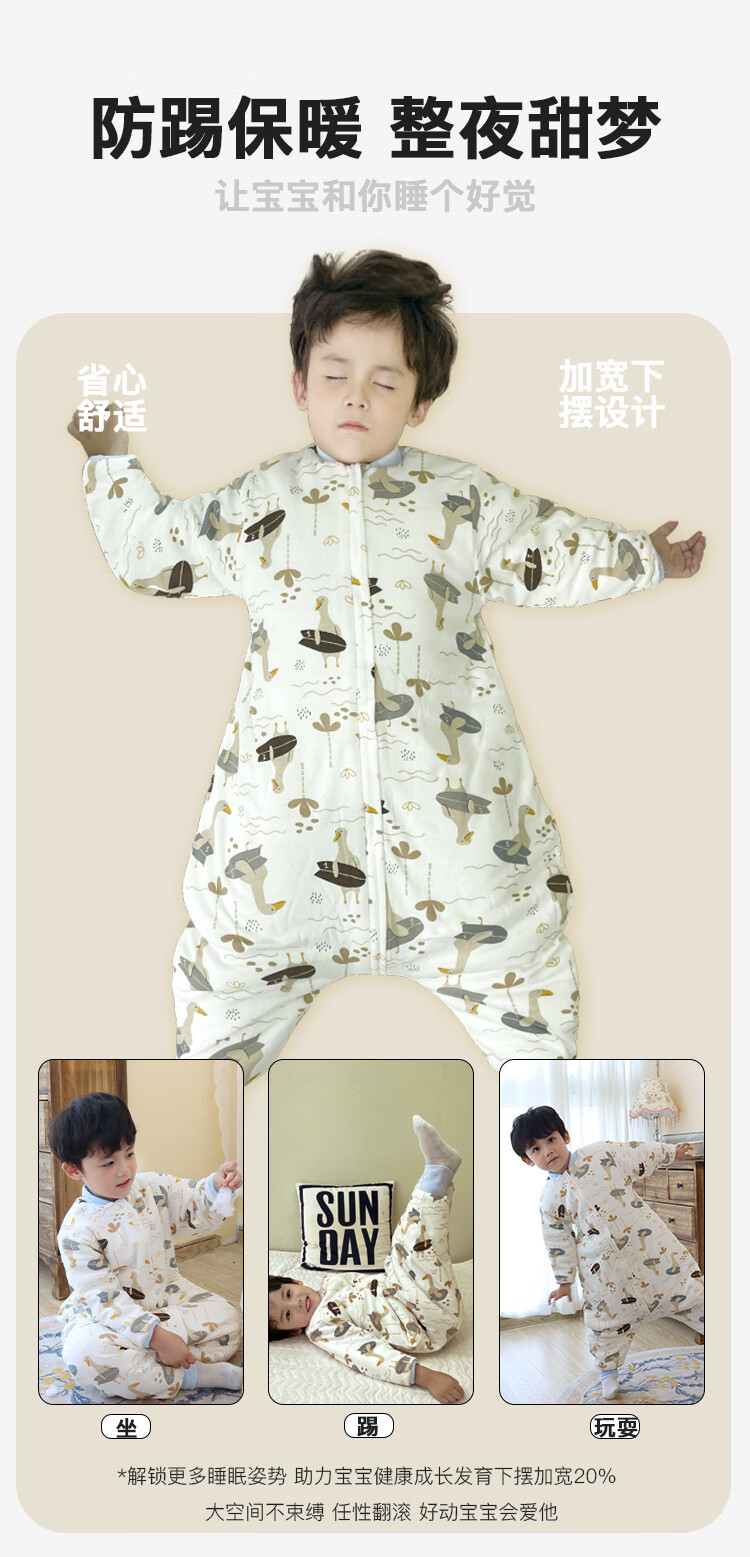 Baby sleeping bag autumn and winter quilted baby split-leg anti-kick blanket newborn jumpsuit children's zippered long-sleeved thickened 025 surf duck medium thick section 80 size height 60cm-75cm