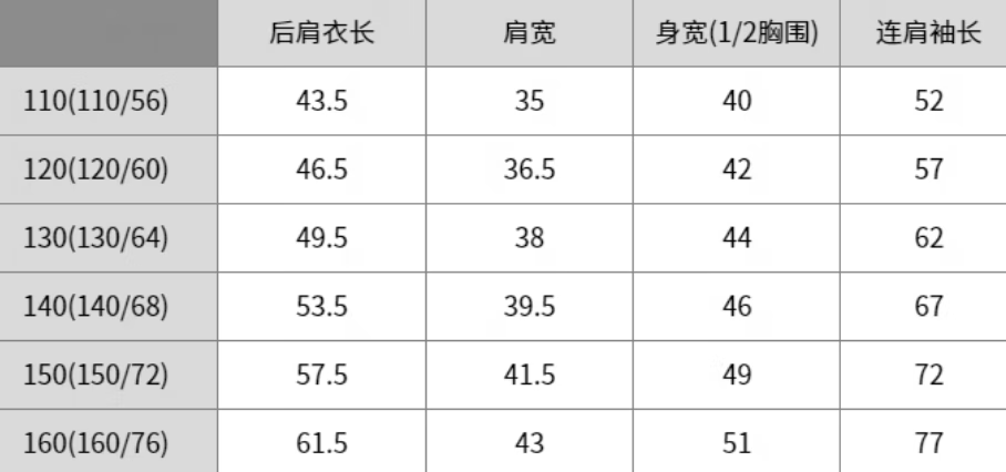 China(cm) 72-76 76-81 81-87 87-93 93-98