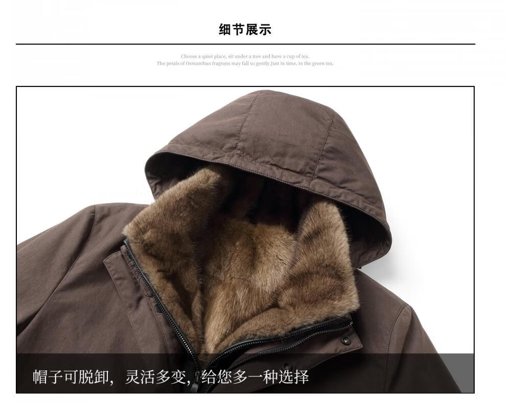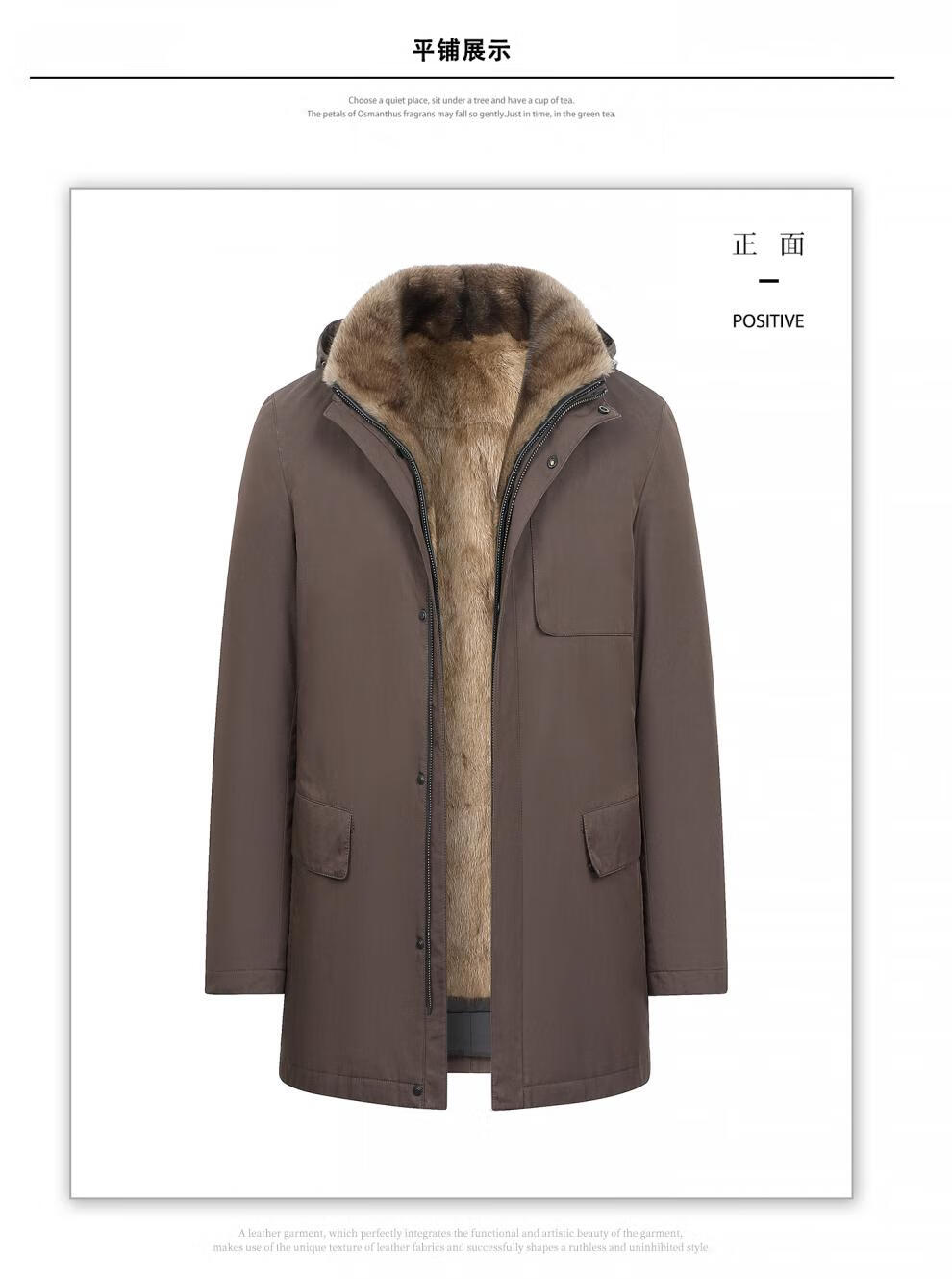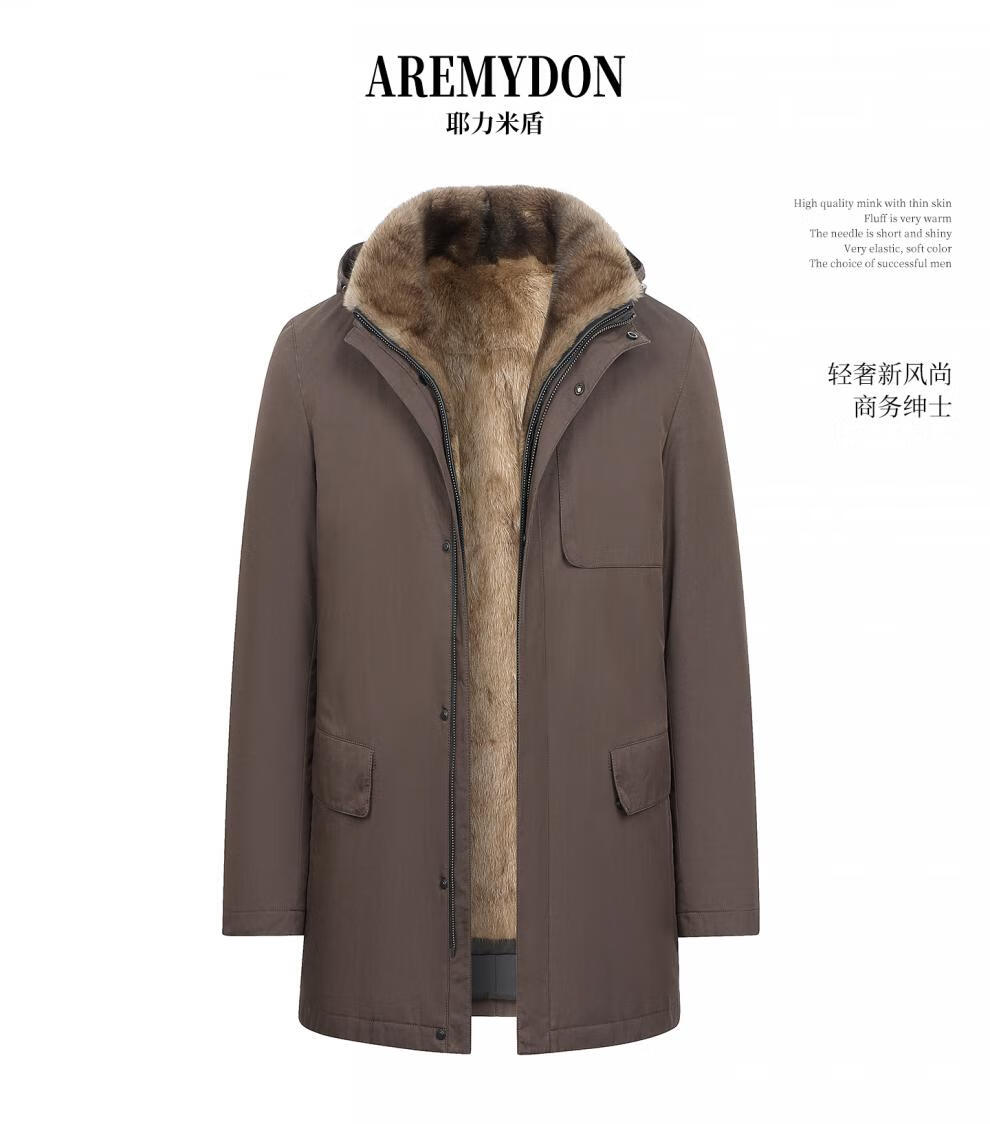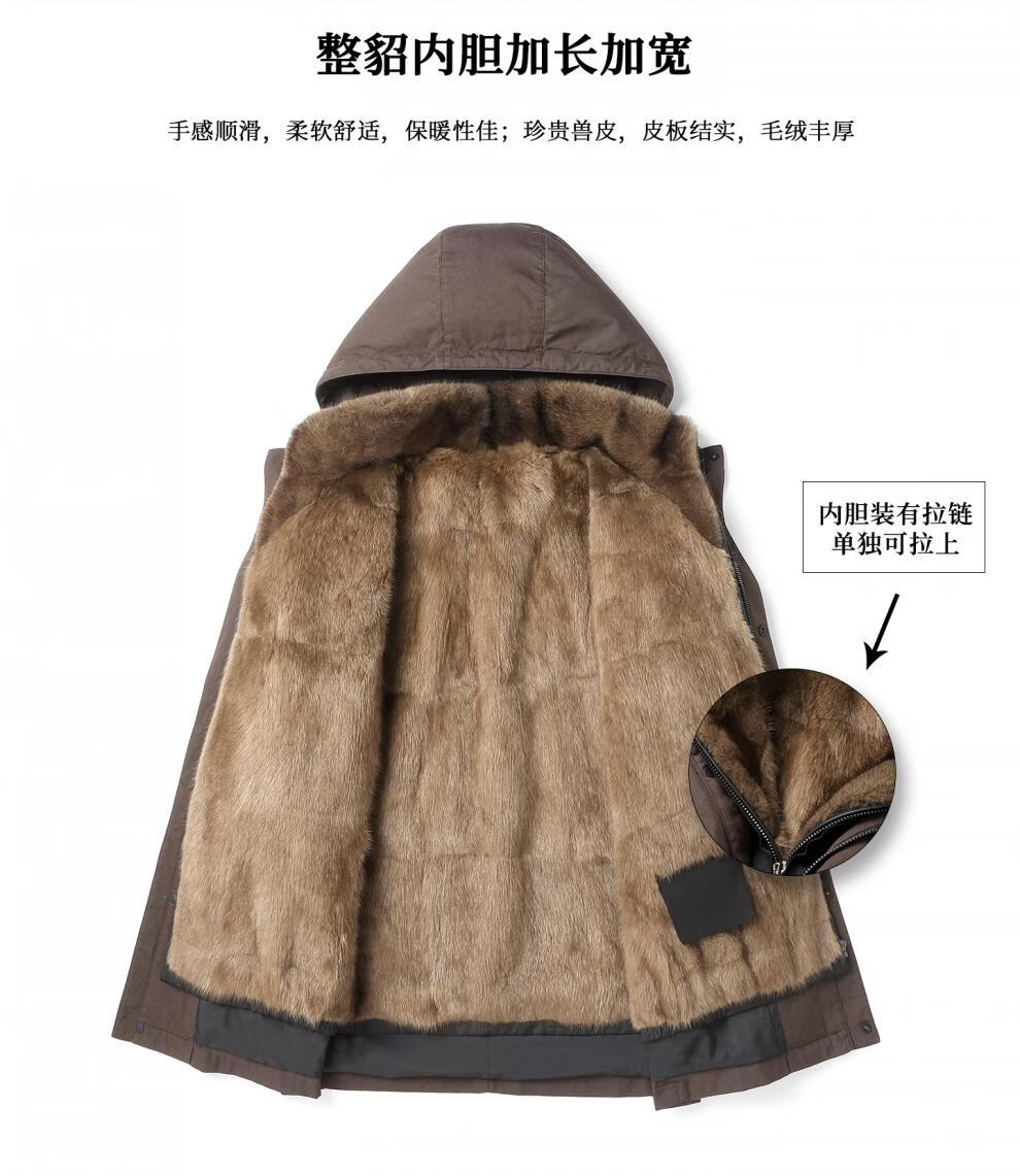 S MAX MARAWL进口水貂皮草内胆尼克服男装立领可拆卸连帽整貂内胆皮毛一体外 咖色(进口青根貂内胆+咖啡貂毛领+兔绒袖) L