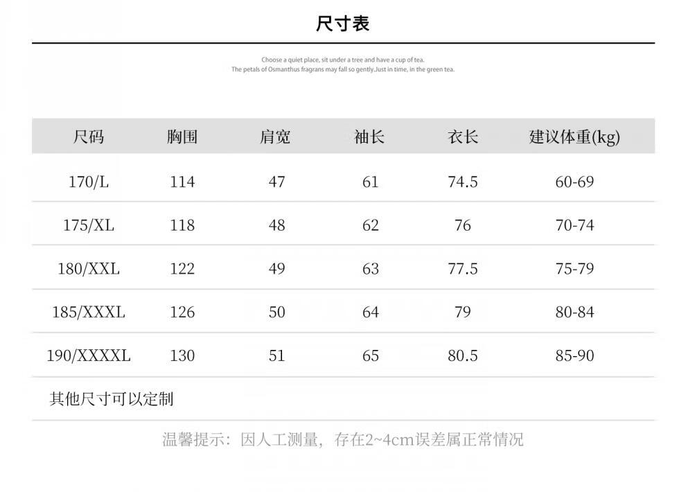 China (cm) 165 / 88-90 170 / 96-98 175 / 108-110 180 / 118-122 185 / 126-130