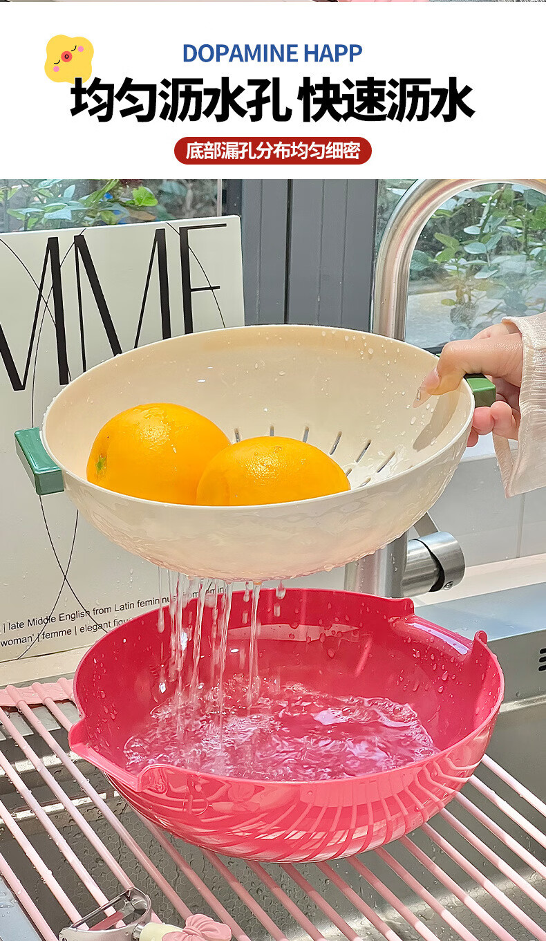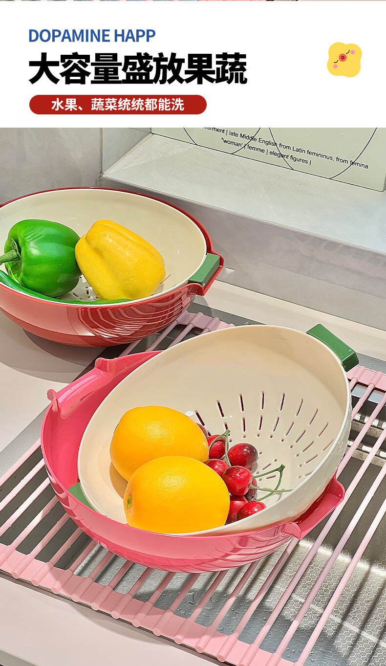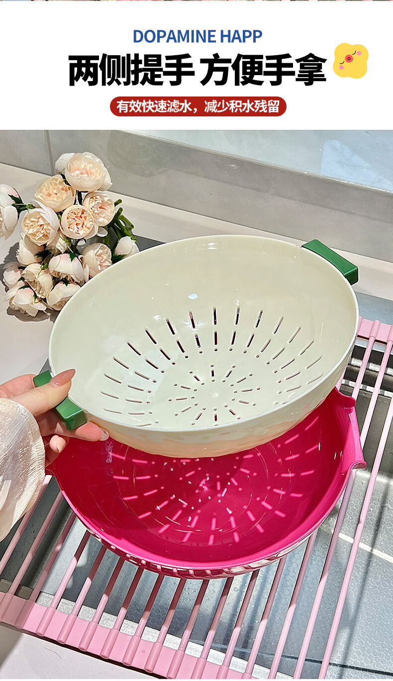 Oindopamine double-layer drain basket new household sink basin kitchen fruit plate filter water for washing vegetables rose red