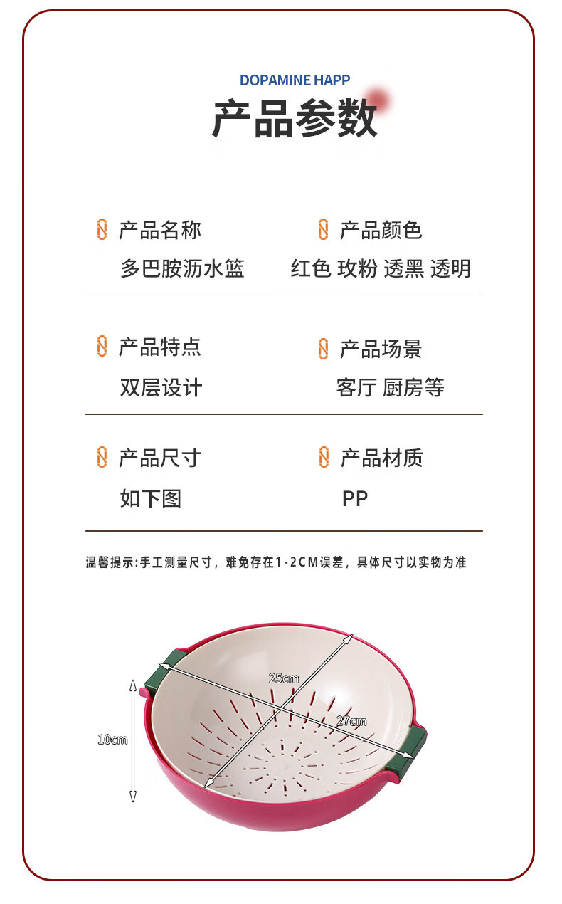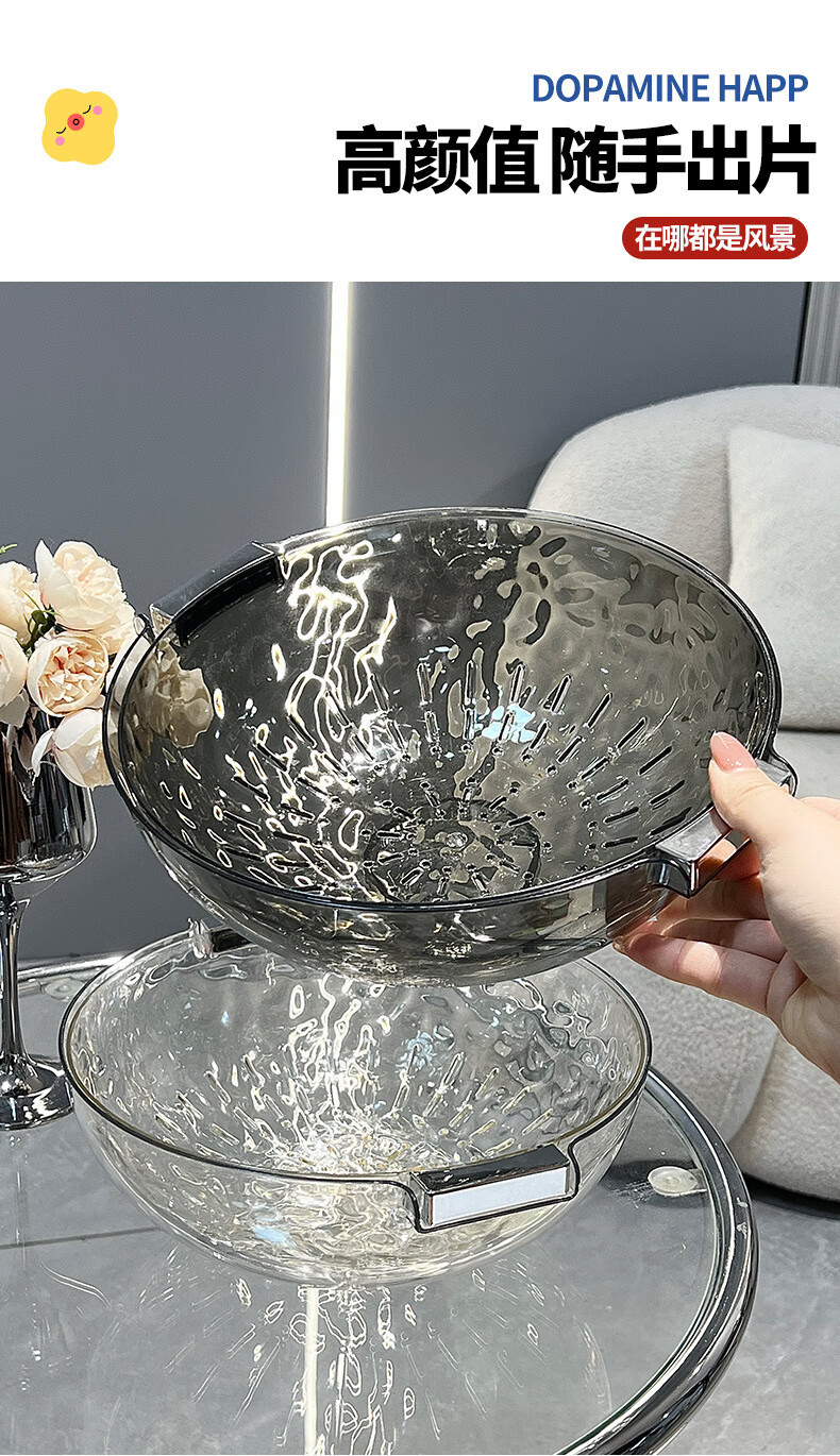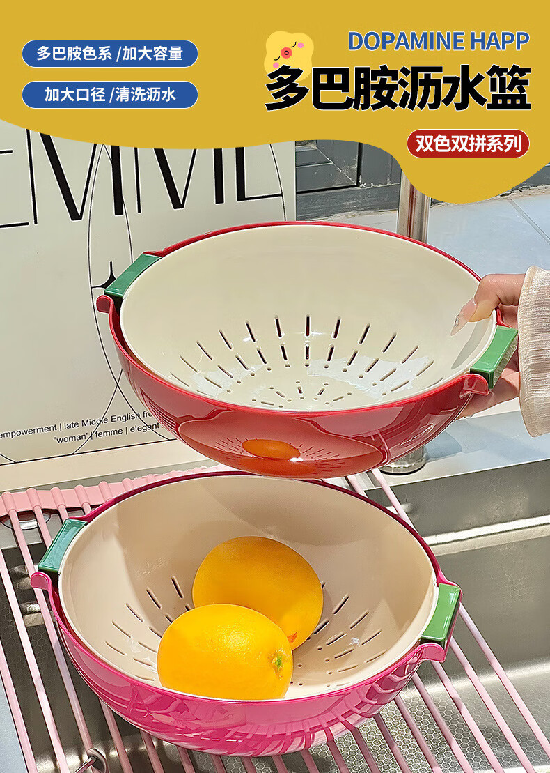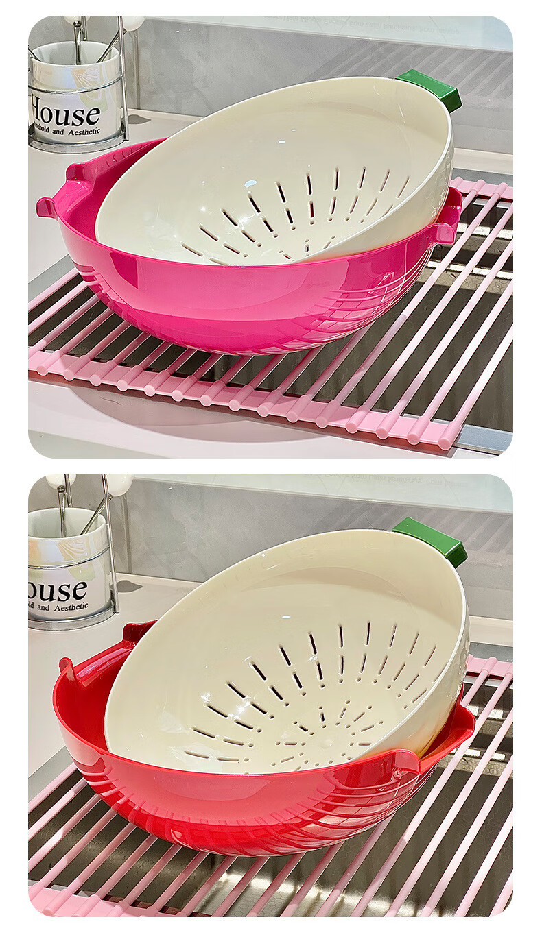 Oindopamine double-layer drain basket new household sink basin kitchen fruit plate filter water for washing vegetables rose red
