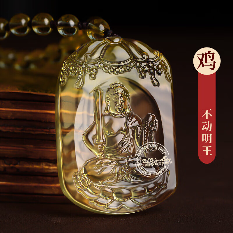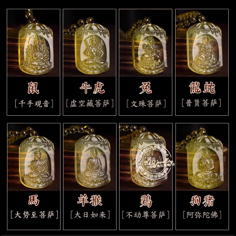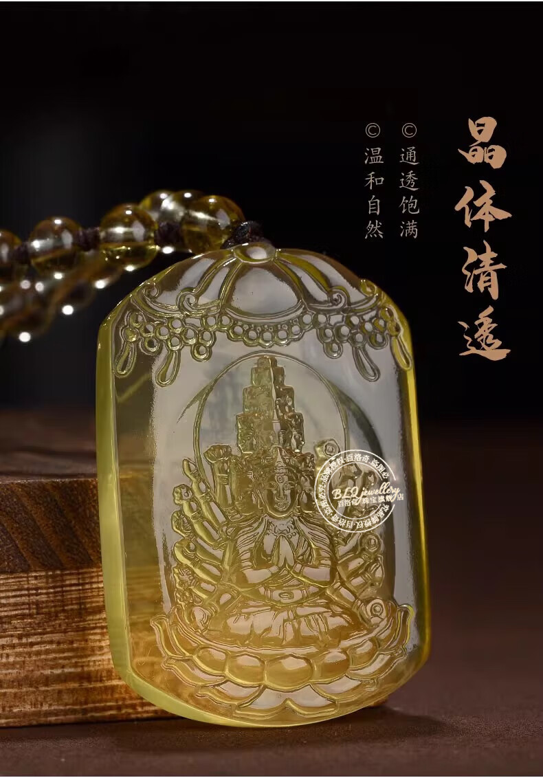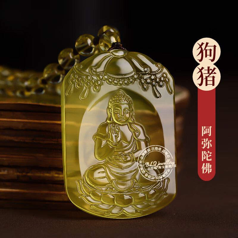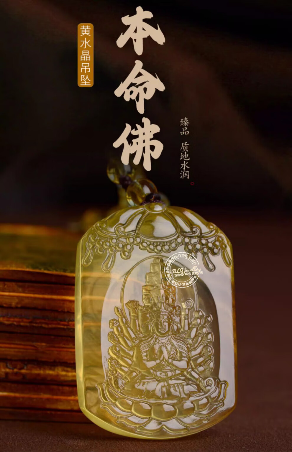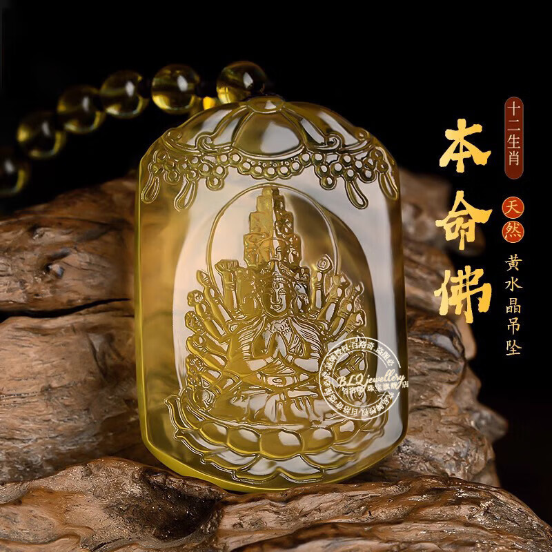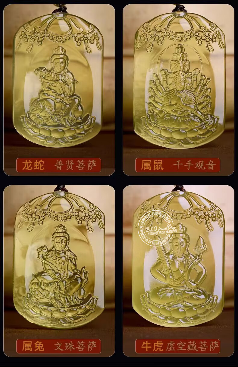 Bailuoqi Mahasthamaprapta Bodhisattva natural citrine natal Buddha pendant for men's natal year zodiac sign is horse patron saint necklace Amitabha (zodiac sign dog and pig) bead chain style 49*33*12mm high transparency style