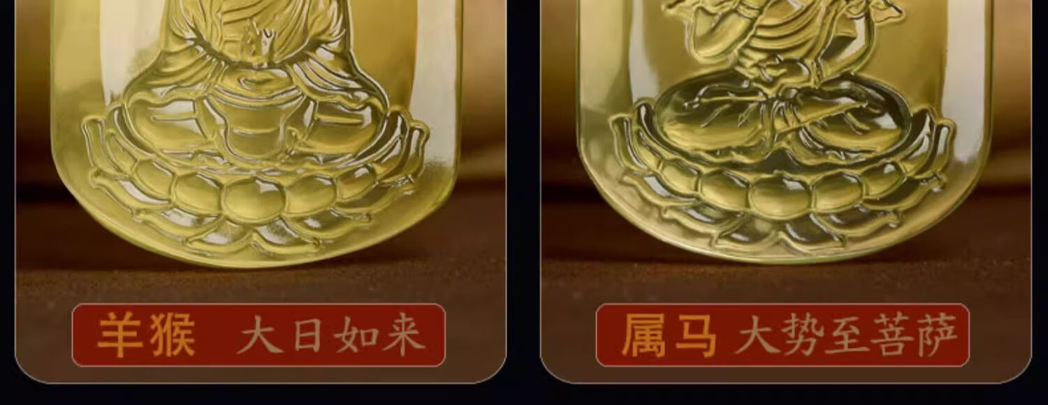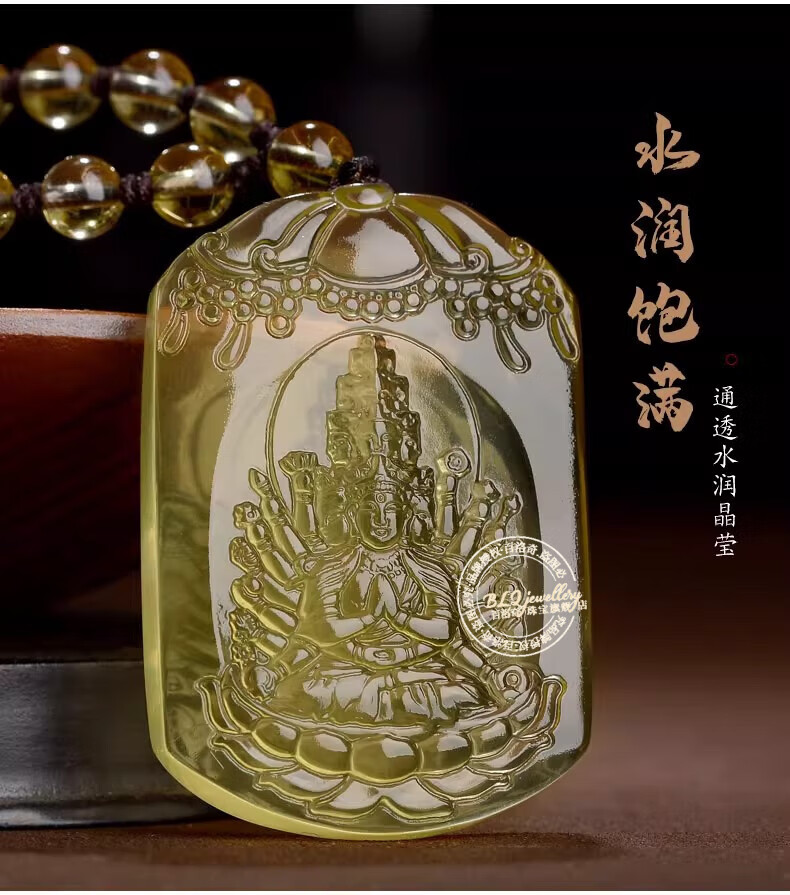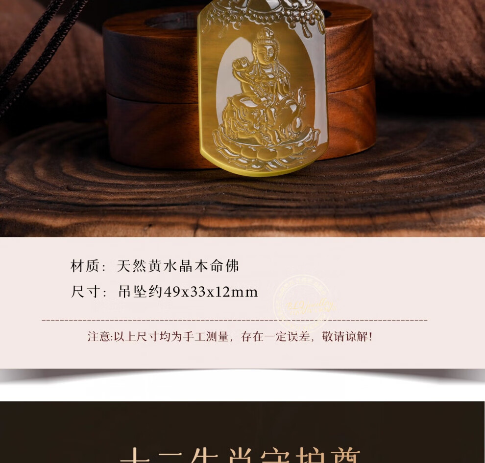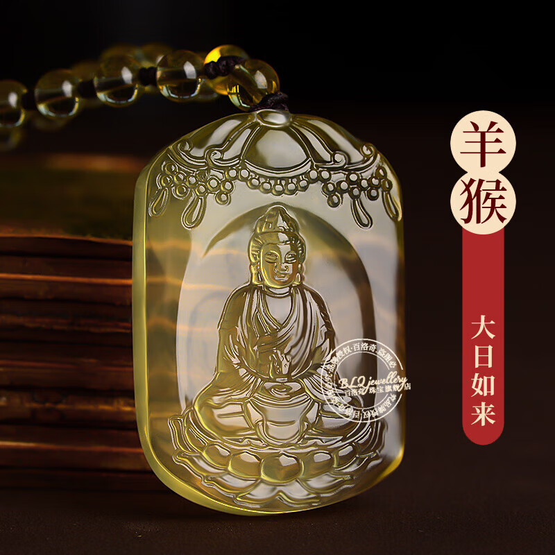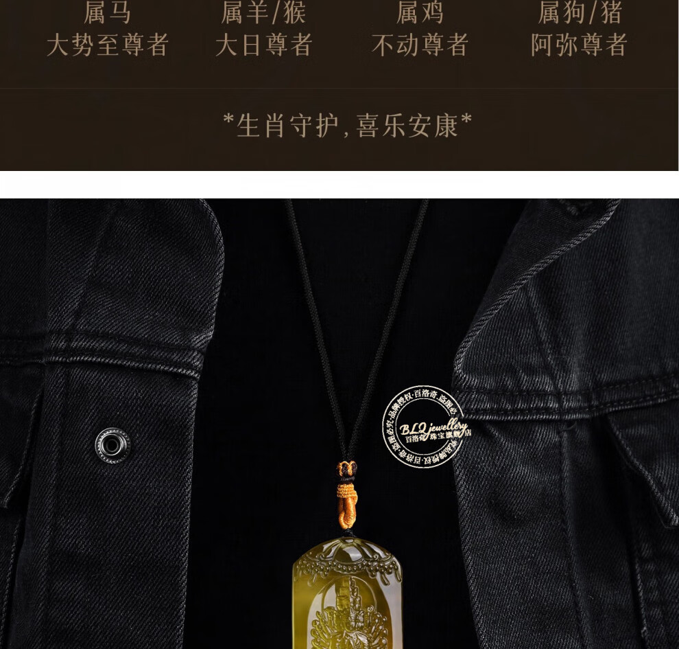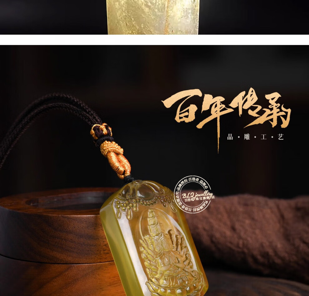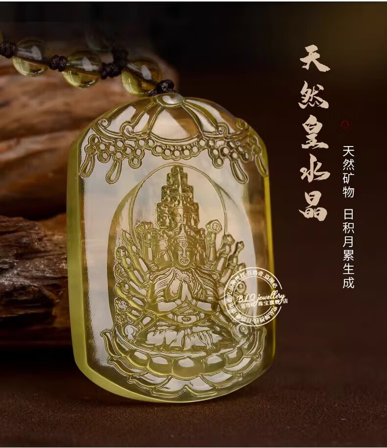 Bailuoqi Mahasthamaprapta Bodhisattva natural citrine natal Buddha pendant for men's natal year zodiac sign is horse patron saint necklace Amitabha (zodiac sign dog and pig) bead chain style 49*33*12mm high transparency style