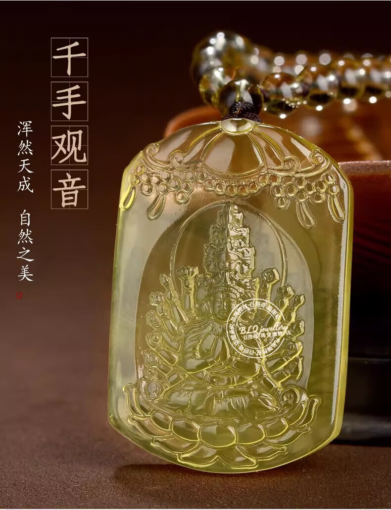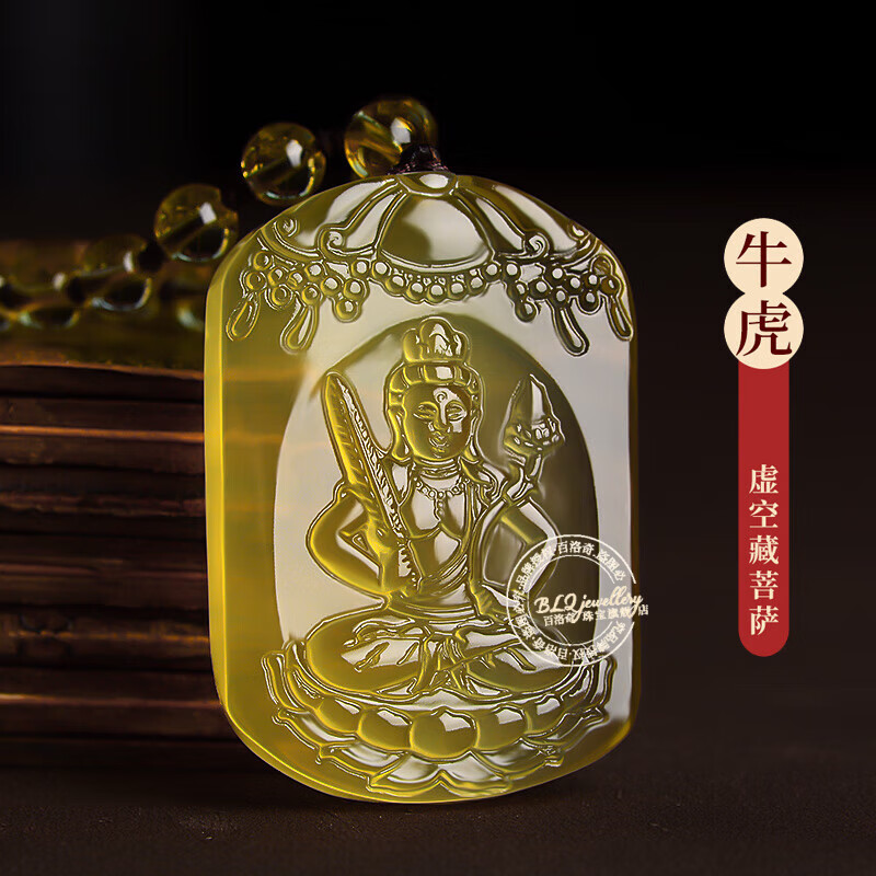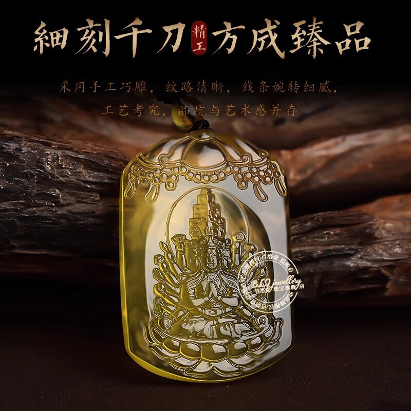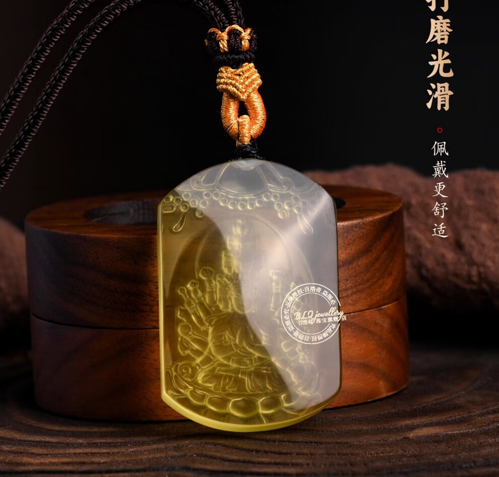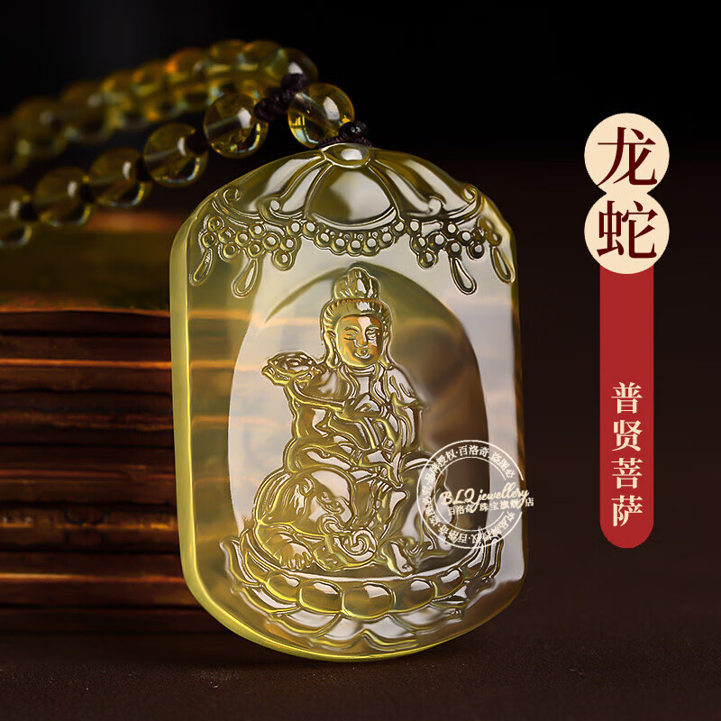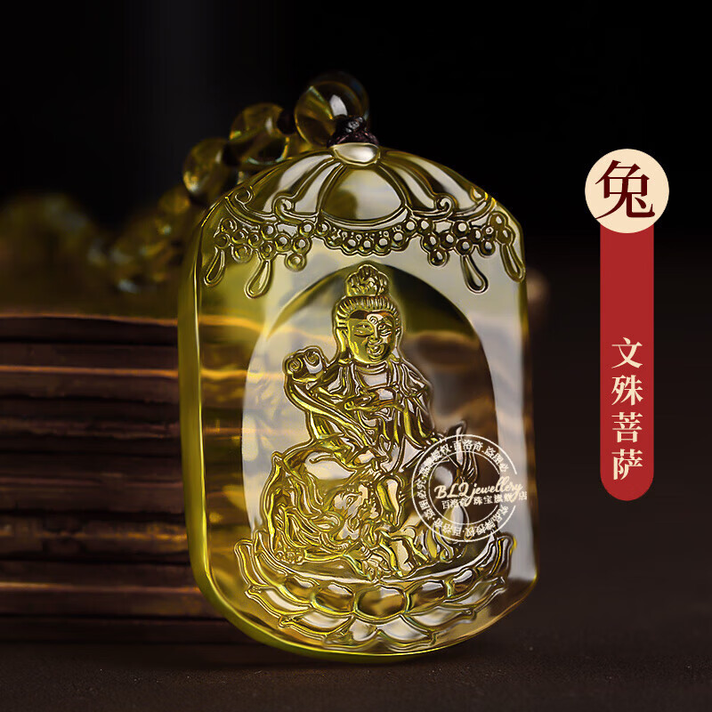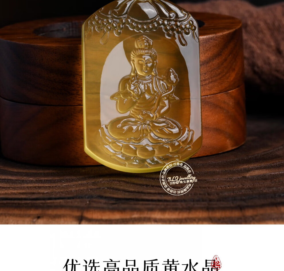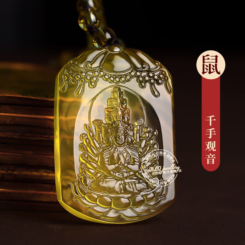 Bailuoqi Mahasthamaprapta Bodhisattva natural citrine natal Buddha pendant for men's natal year zodiac sign is horse patron saint necklace Amitabha (zodiac sign dog and pig) bead chain style 49*33*12mm high transparency style