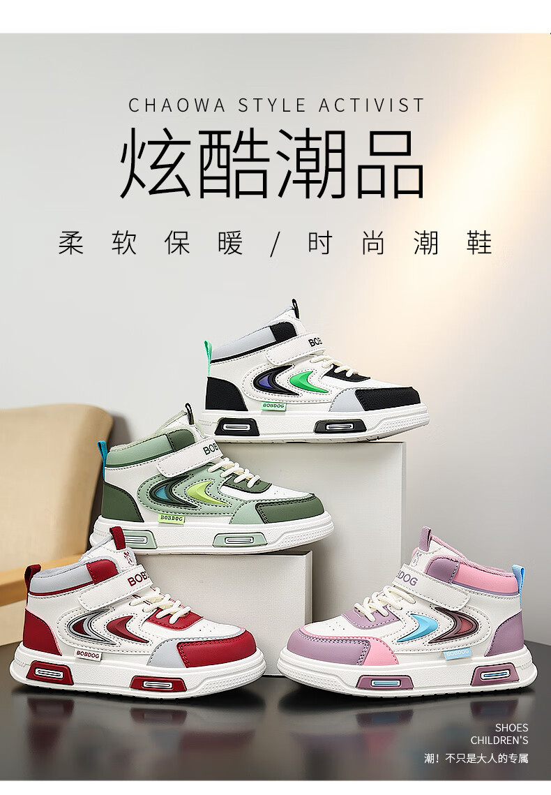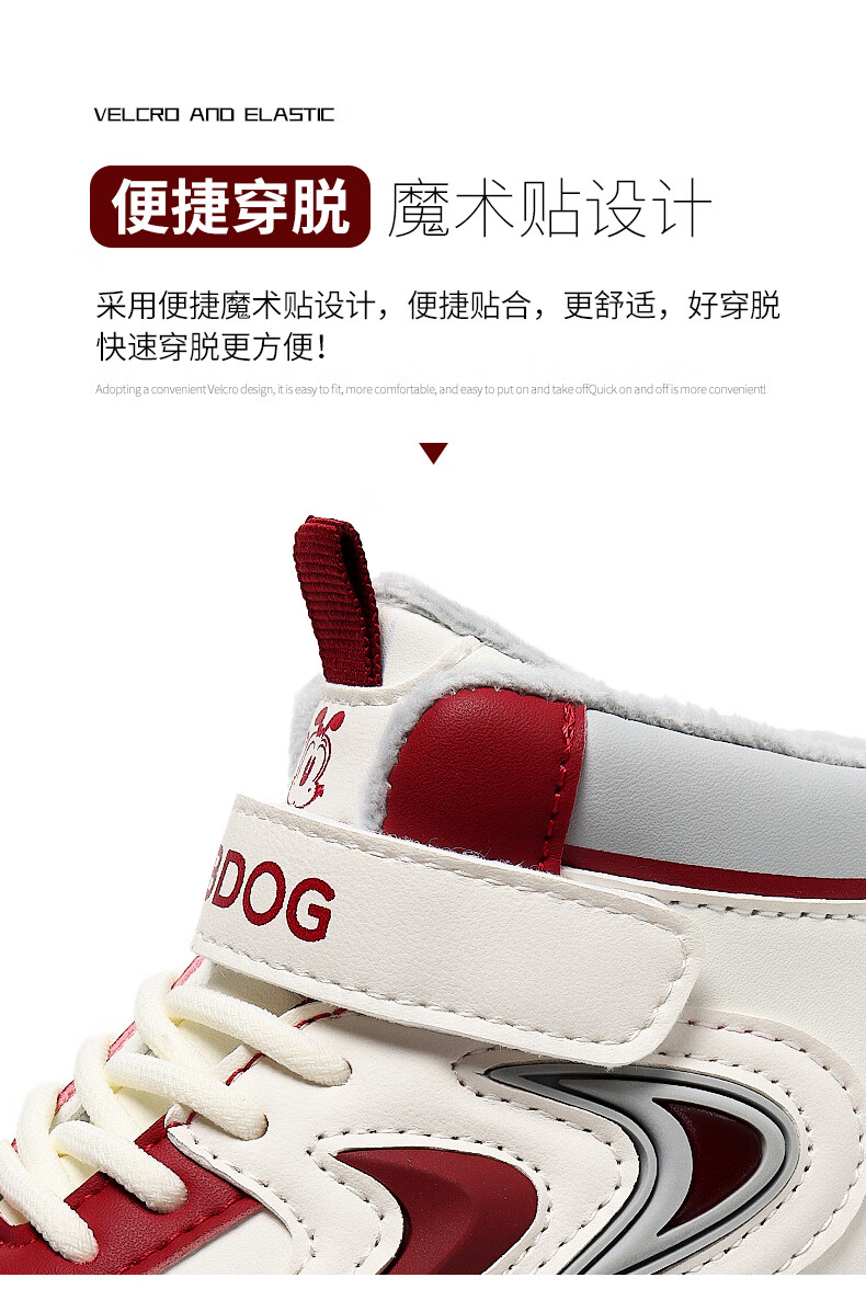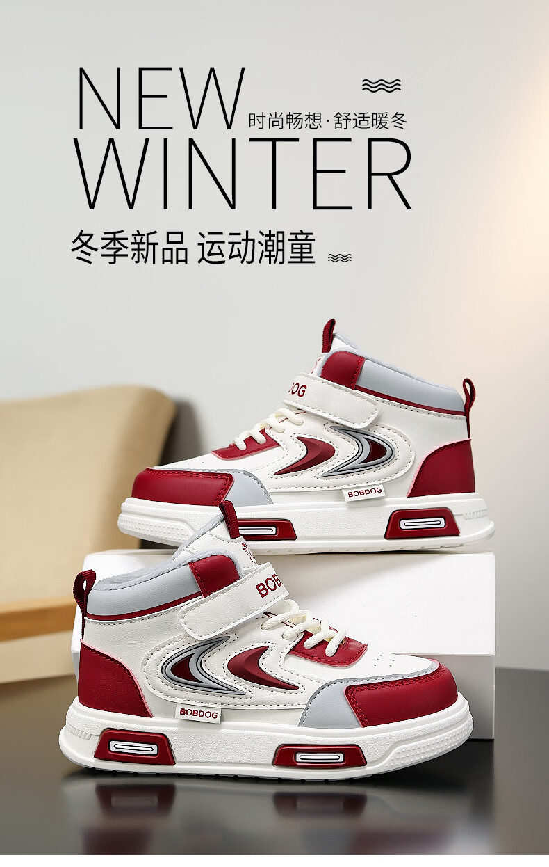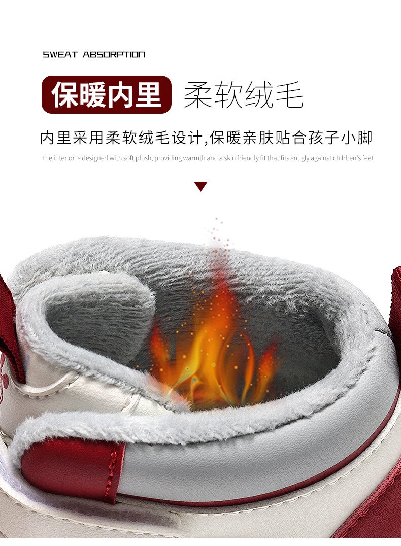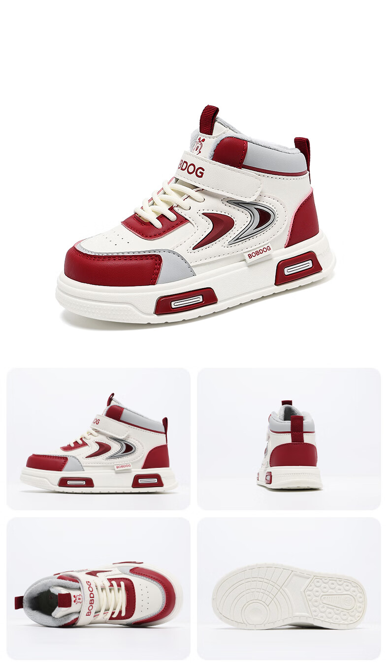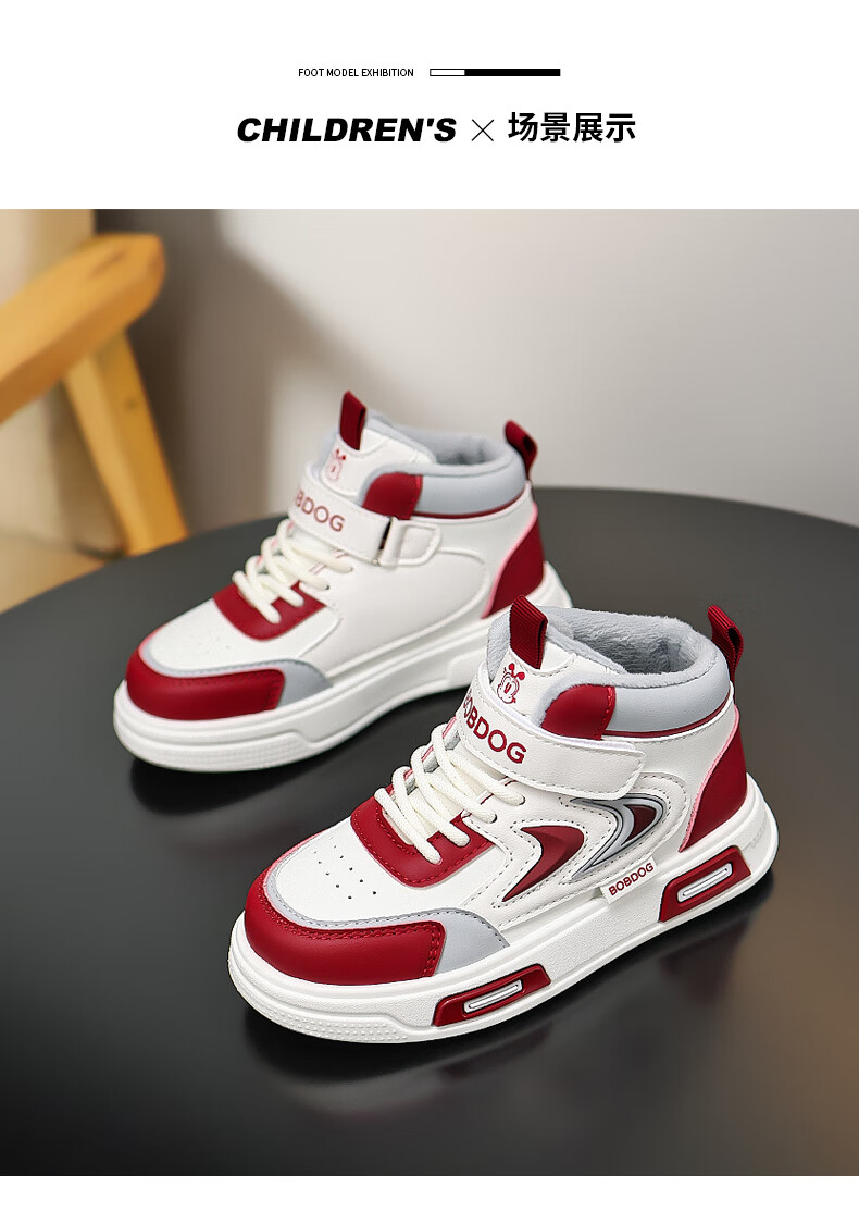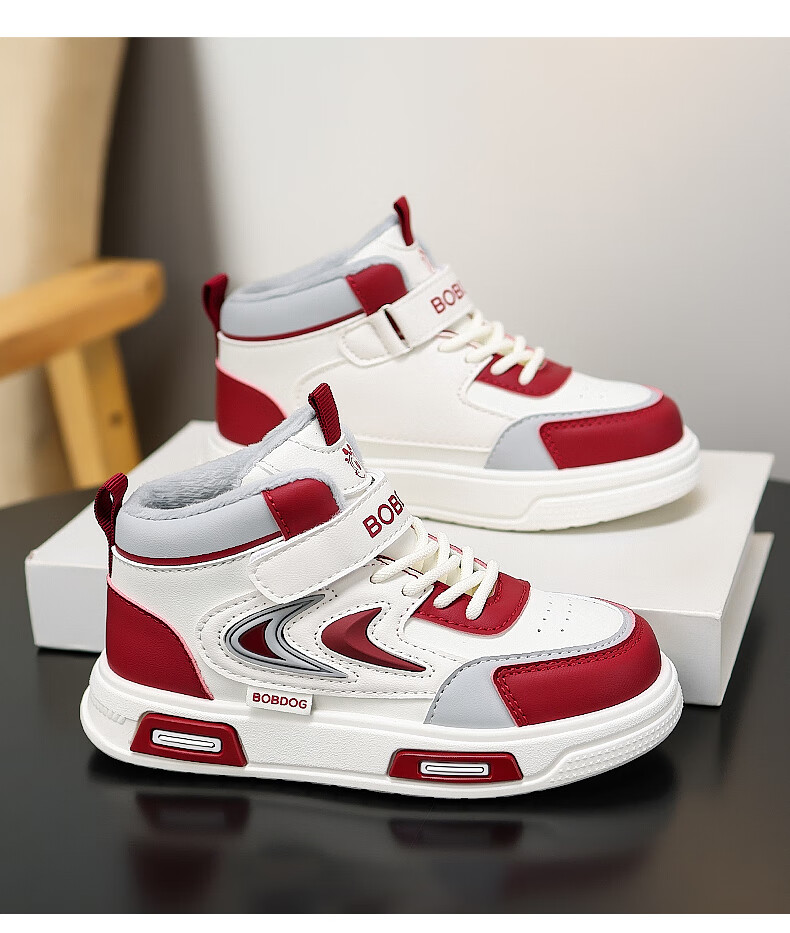 BOBDOG Boys' Shoes Second Cotton Shoes Winter Children's Cotton Shoes Plus Velvet High Top Second Cotton Shoes Medium and Large Children's Casual Sports Shoes Angora Red (High Top Second Cotton) 26 (Suitable for Feet Length 15.8cm)