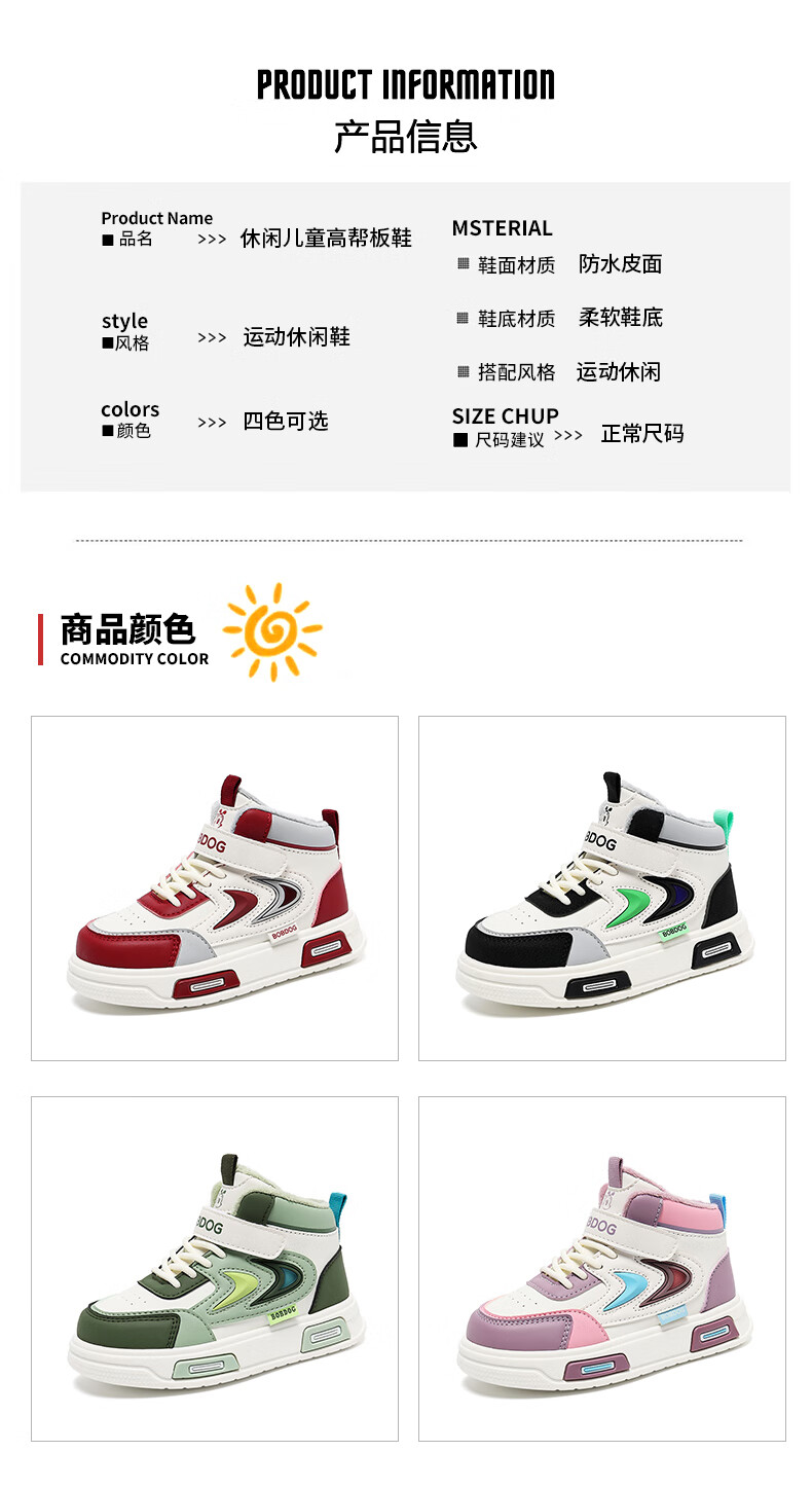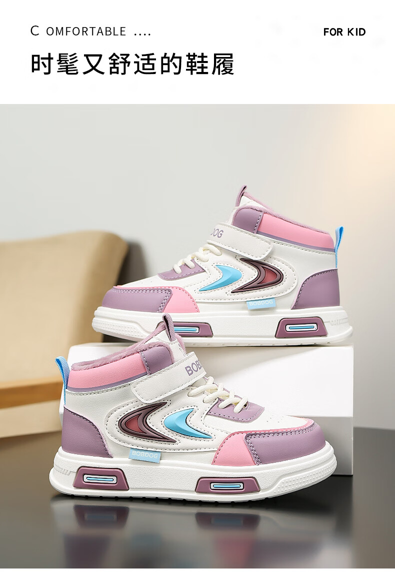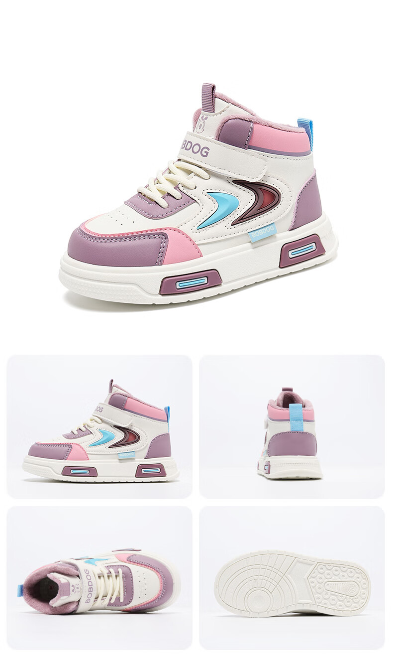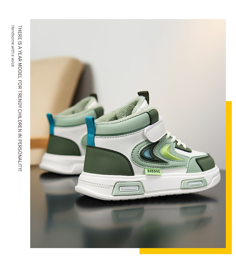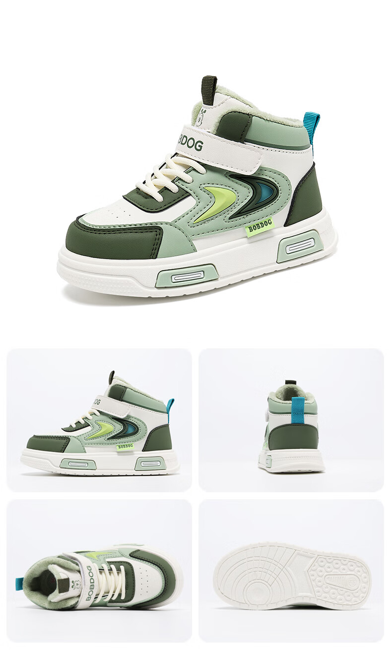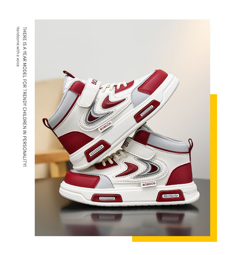 BOBDOG Boys' Shoes Second Cotton Shoes Winter Children's Cotton Shoes Plus Velvet High Top Second Cotton Shoes Medium and Large Children's Casual Sports Shoes Angora Red (High Top Second Cotton) 26 (Suitable for Feet Length 15.8cm)