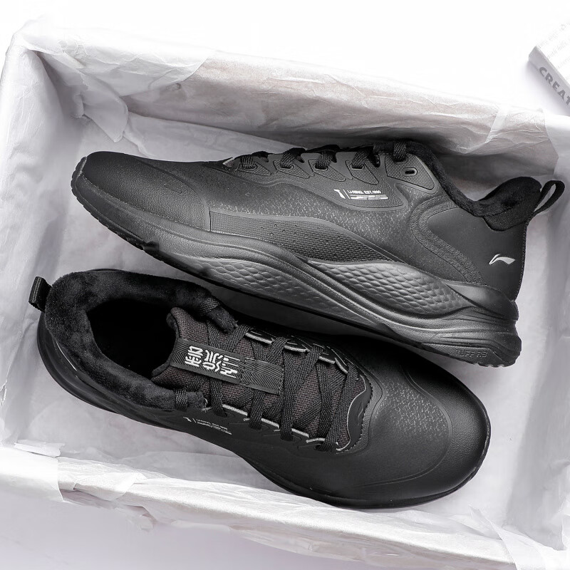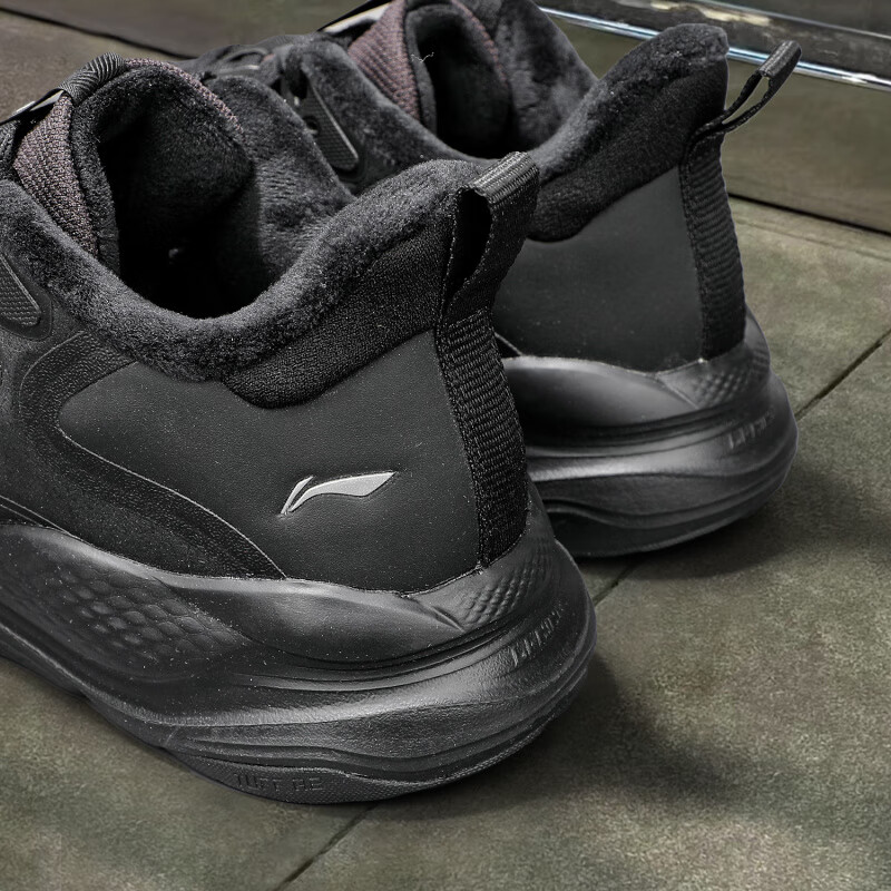 Li Ning Liuyun FLEECE sports shoes men's 2025 winter new waterproof water-repellent shock-absorbing rebound jogging shoes casual shoes black plus velvet 39.5