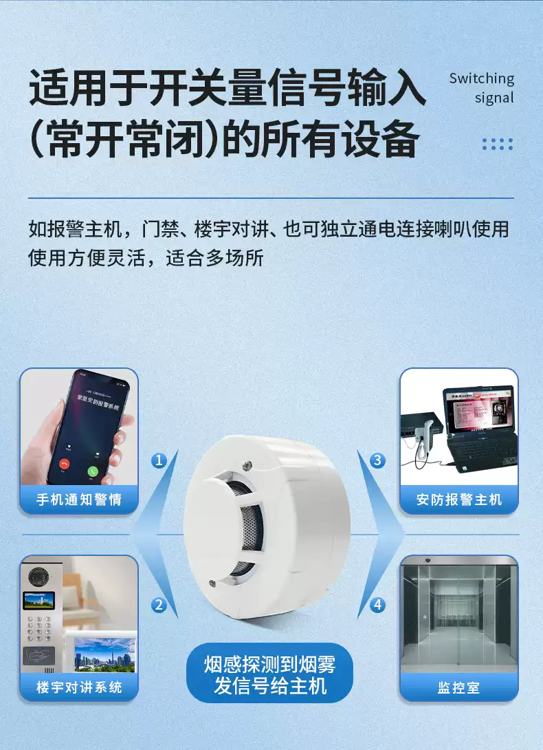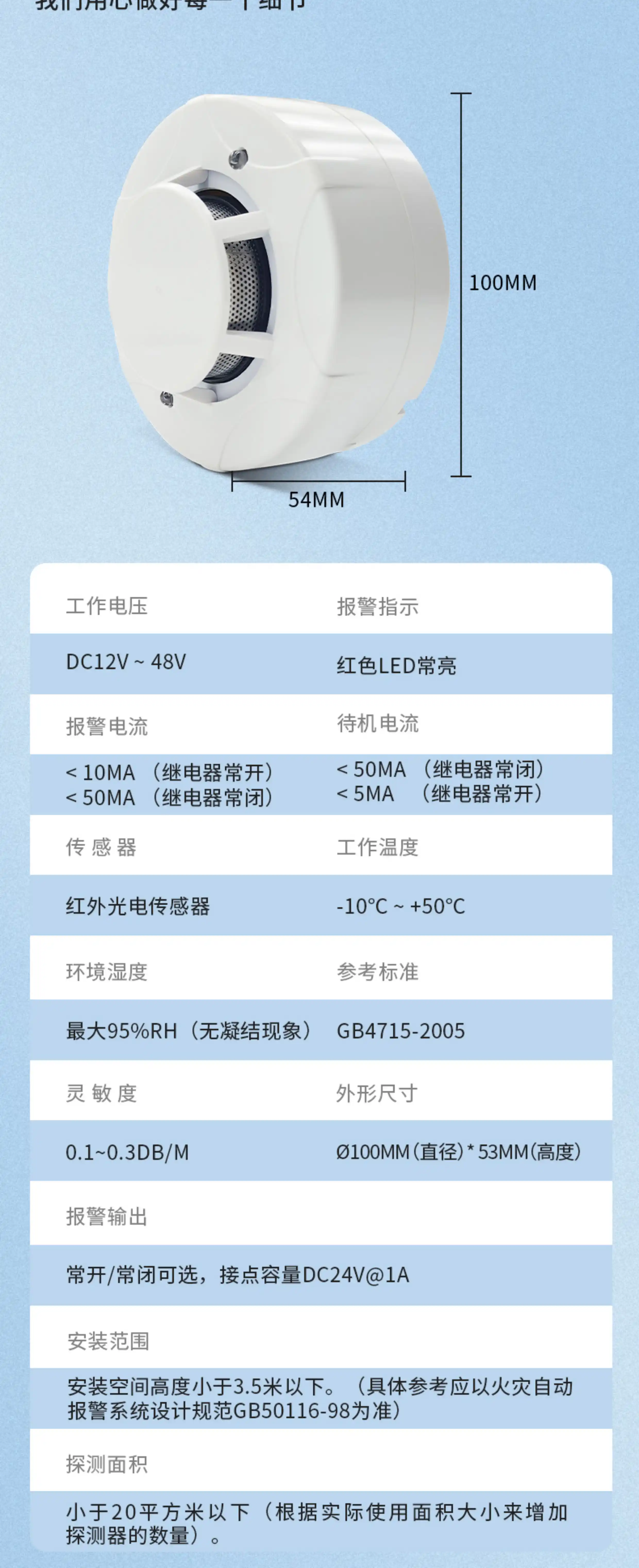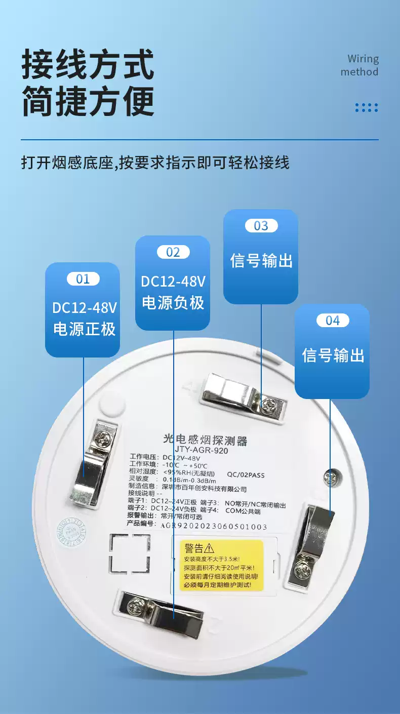 Wired photoelectric smoke detector smoke temperature integrated alarm fire fire smoke 48V flame retardant normally open normally closed smoke temperature integrated detector 12V