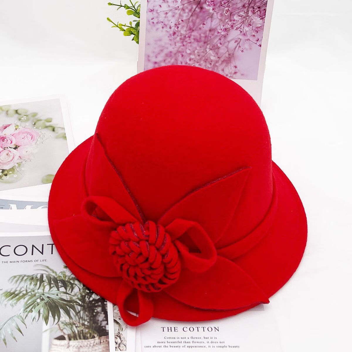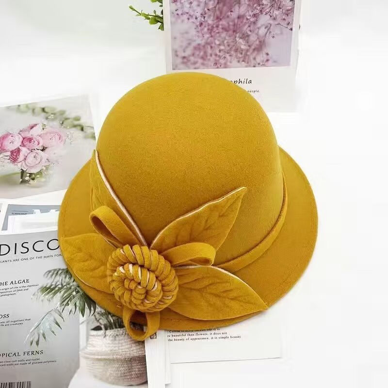 Xi Shengduo Hat Women's Autumn and Winter Korean Version Retro Dome Hat Elegant and Fashionable Flower Woolen Basin Hat Fisherman Hat Winter Hat Trendy Gray One Size