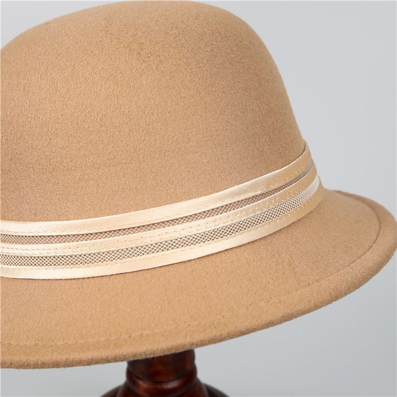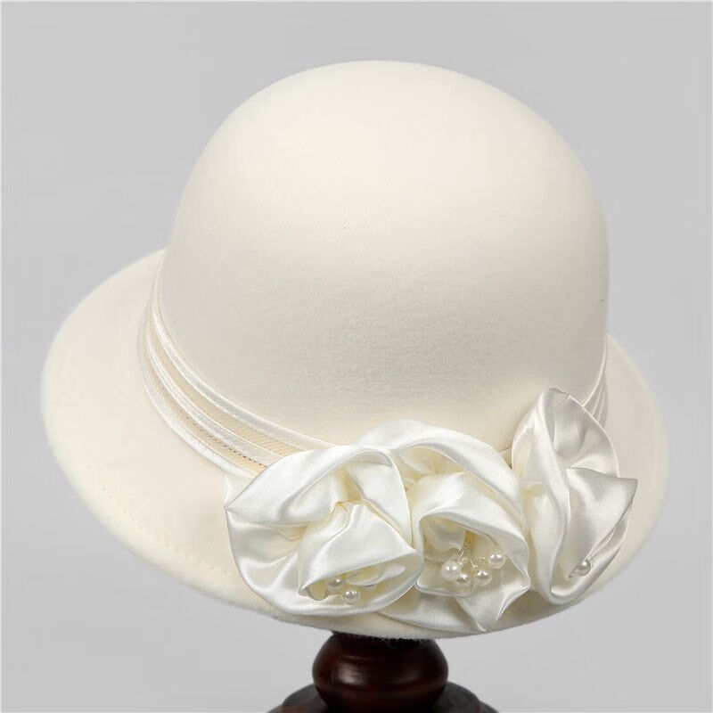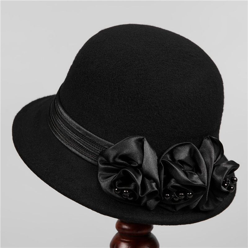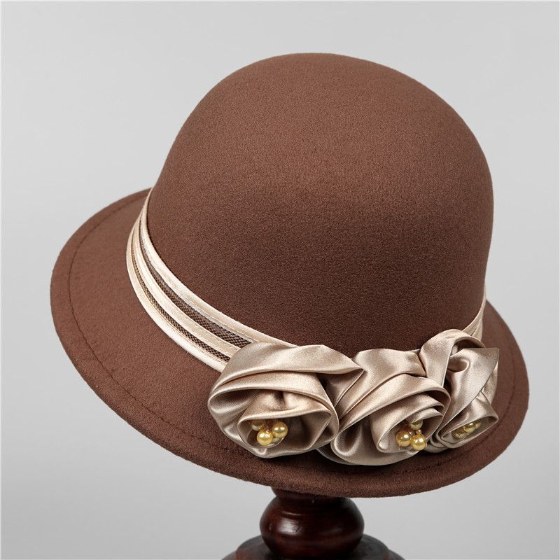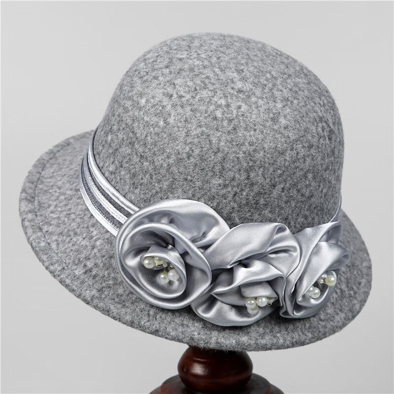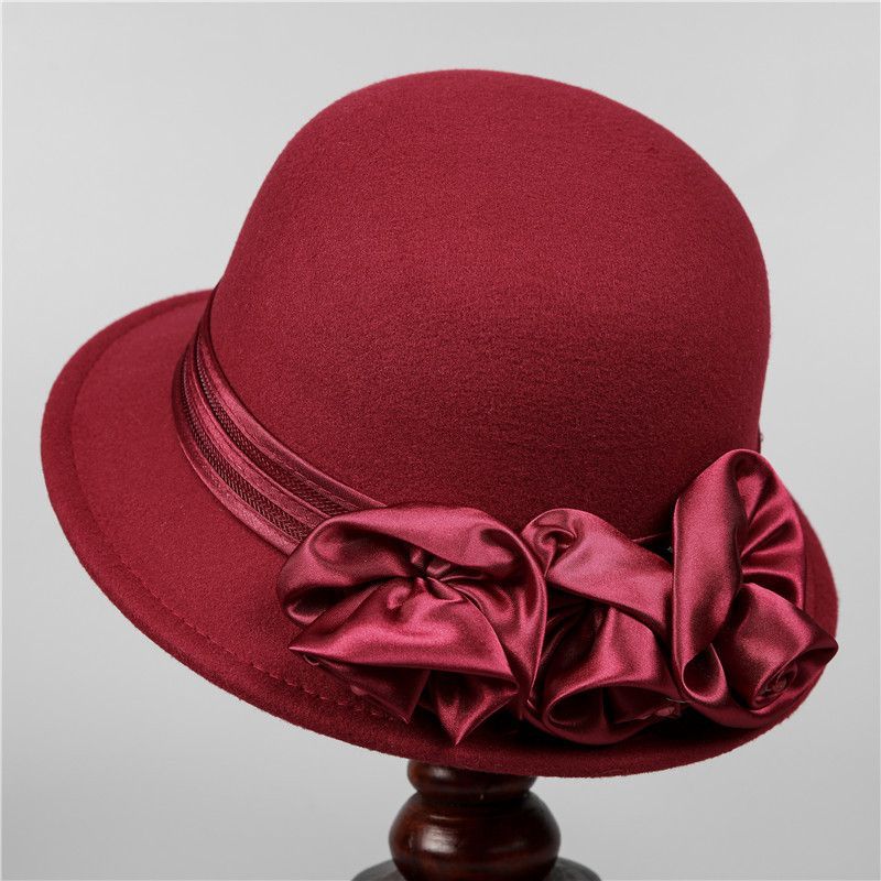 Xi Shengduo middle-aged and elderly women's winter warm fisherman hat mother autumn and winter versatile flower hat British fashion woolen basin hat burgundy one size