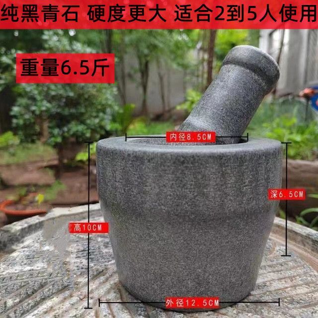 Shantou Lincun bluestone garlic mortar garlic masher stone mortar household manual old-fashioned stone nest natural stone garlic mash artifact mash pot medium black bluestone with greater hardness suitable for 2 to 4