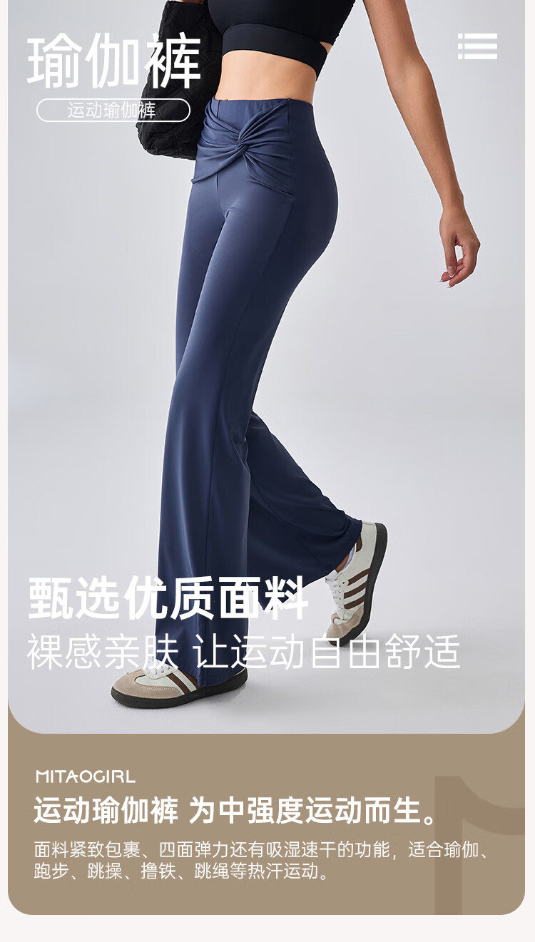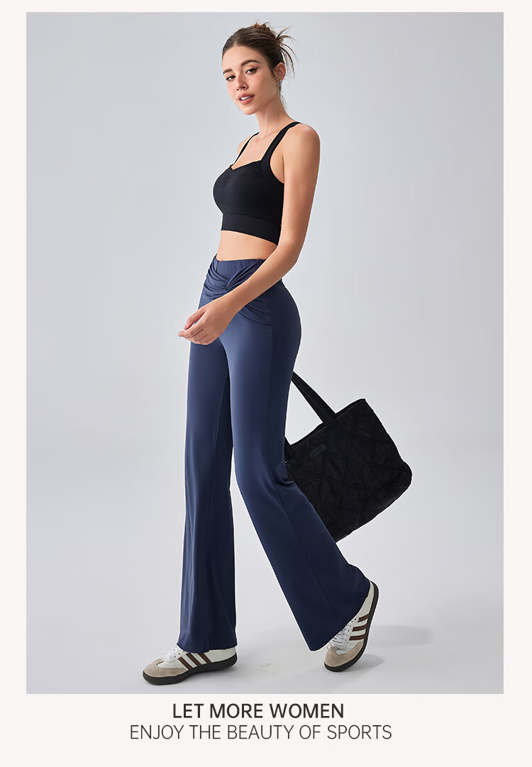 MITAOGIRL Loose Flare Pants Women's Slim High Waisted Yoga Pants Pilates Training Dance Fitness Pants Yoga Navy Blue S