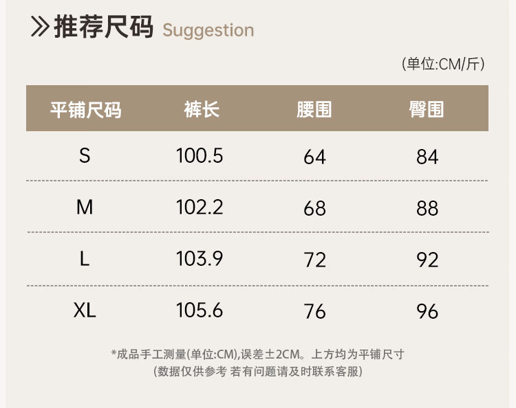 Outseam (cm) 99 cm 101.5 cm 104 cm 106.5 cm 109 cm