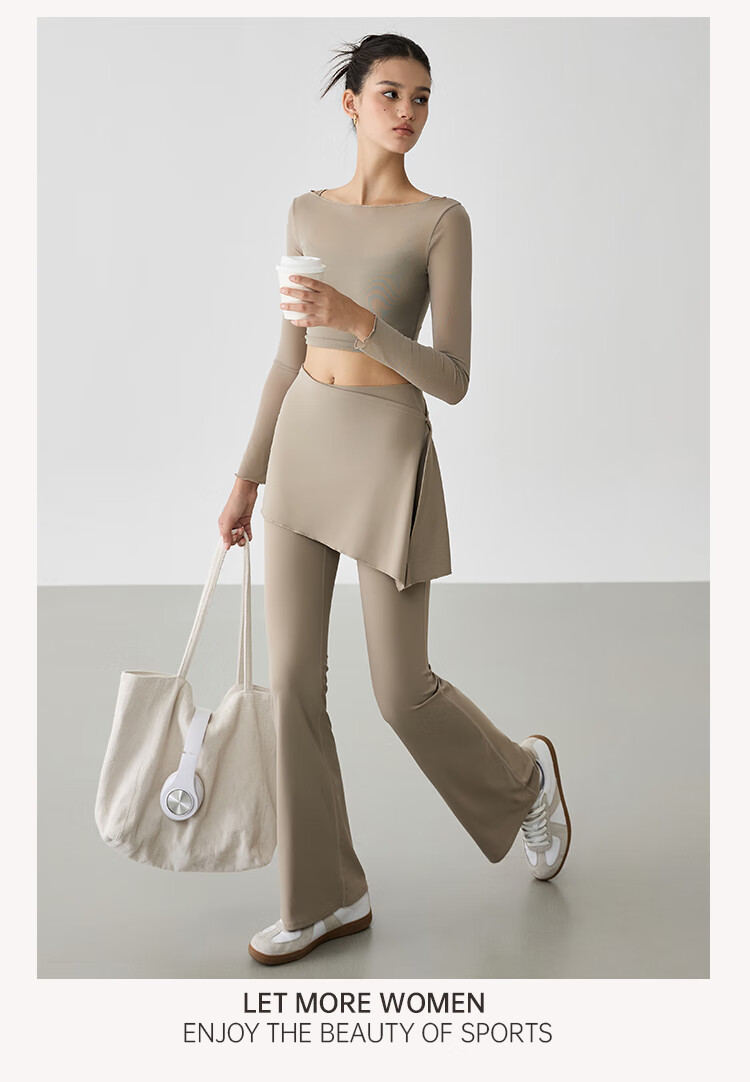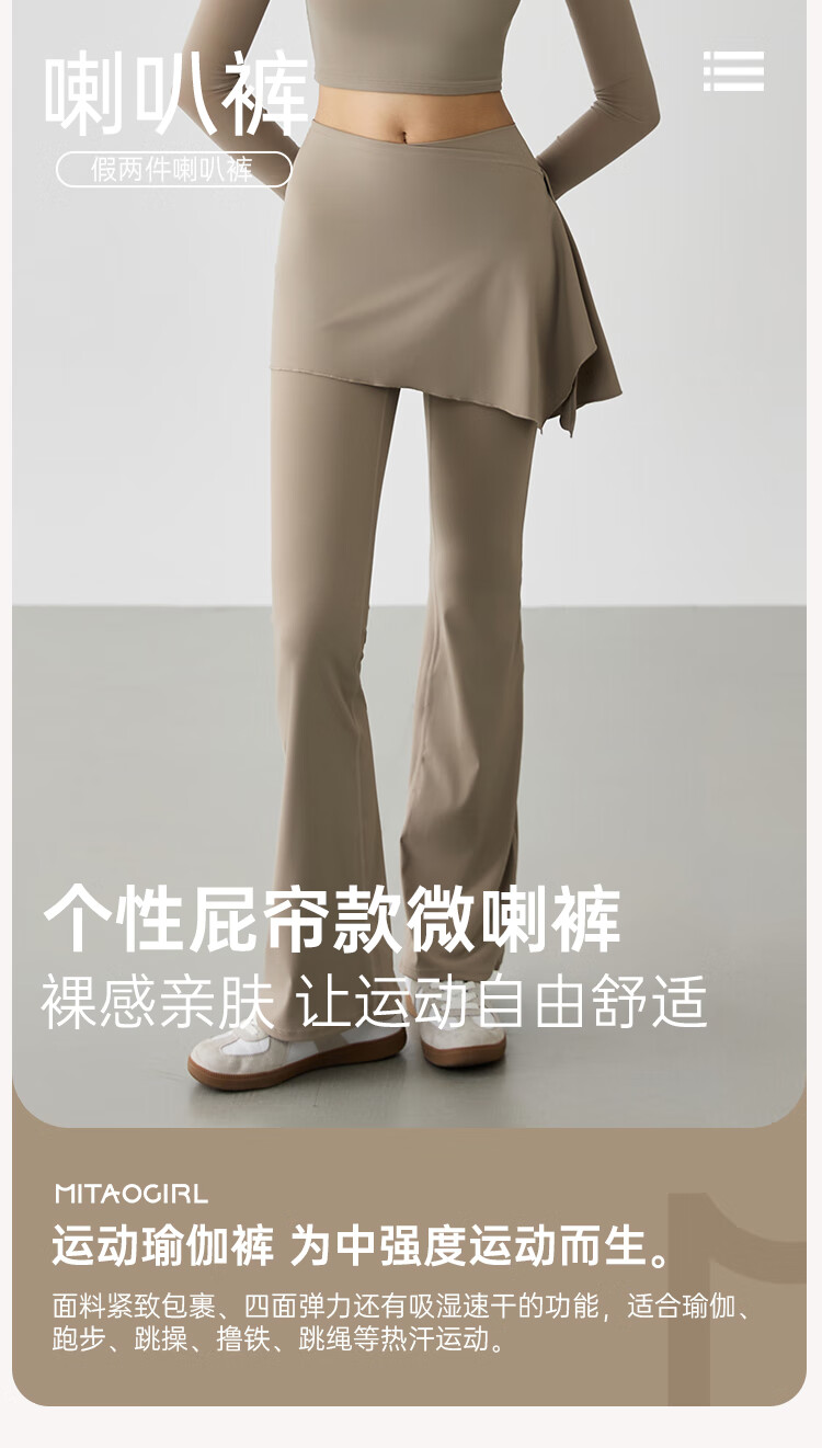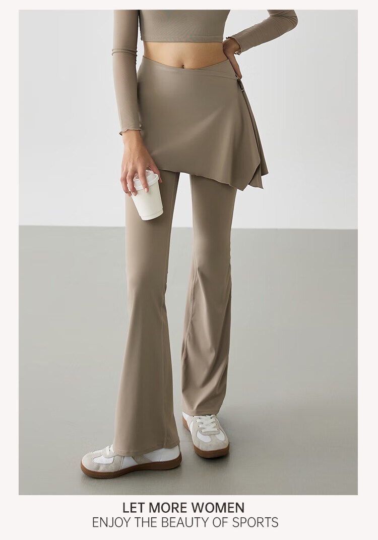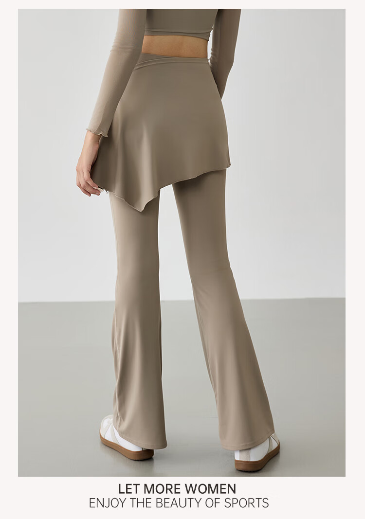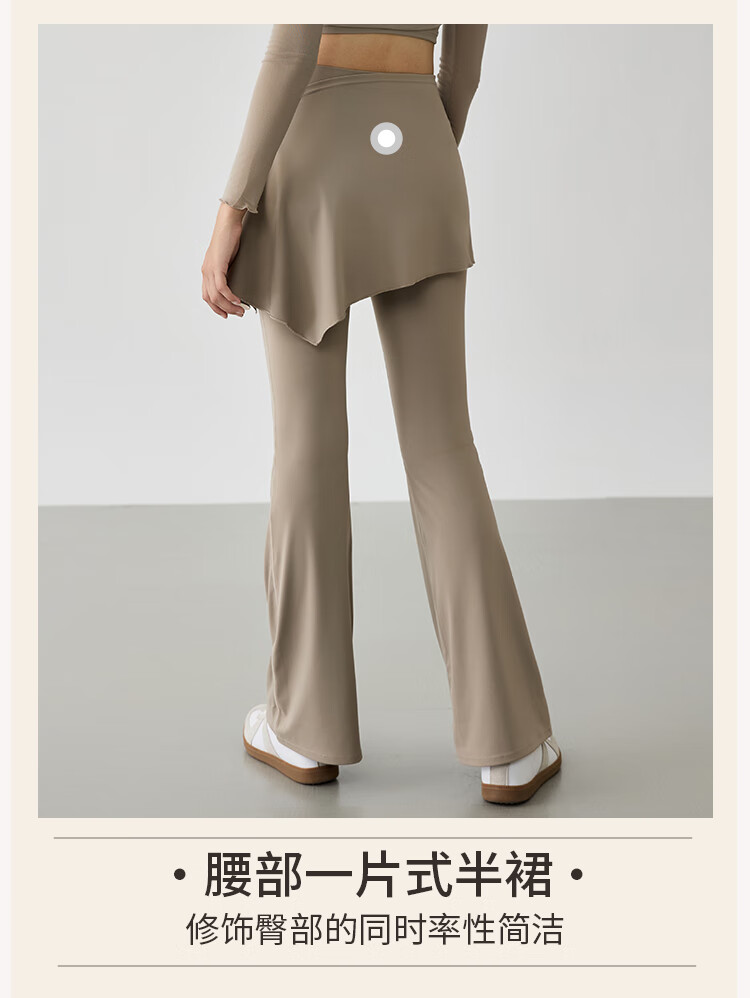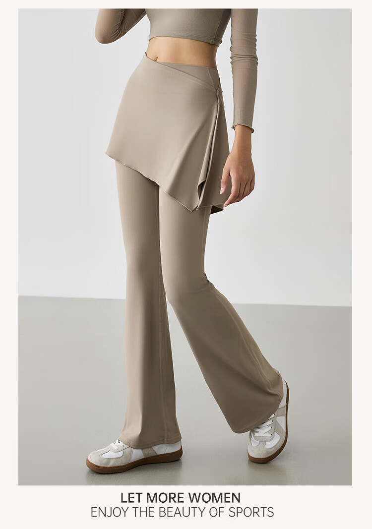 MITAOGIRL fitness pants, yoga clothes, high waist, hip lift, slimming bootcut pants, Pilates sports suit yoga, almond color_two-piece set_removable skirt pants L_recommended 115-130Jin Jin is equal to 0.5 kg