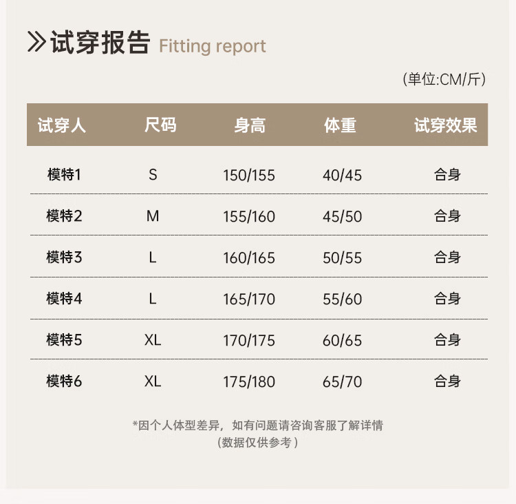 China (cm) 160-165/84-86 165-170 / 88-90 167-172 / 92-96 168-173 / 98-102 170-176 / 106-110