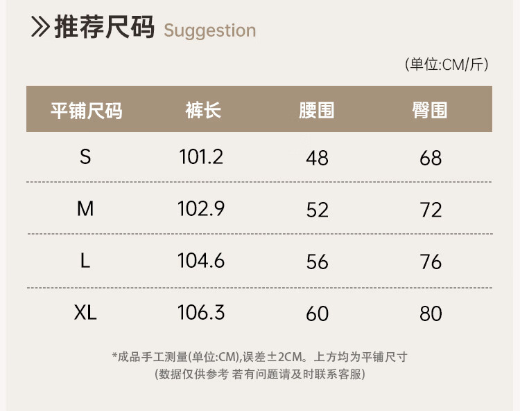 Outseam (cm) 99 cm 101.5 cm 104 cm 106.5 cm 109 cm