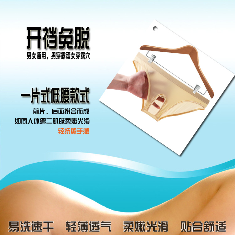Feiqu men's sexy underwear, men's free crotch briefs, low-waisted sexy hollow ice silk underwear ga white