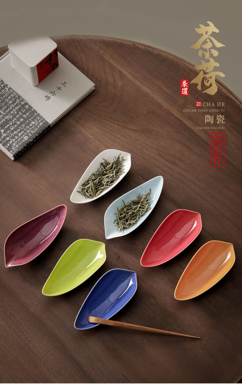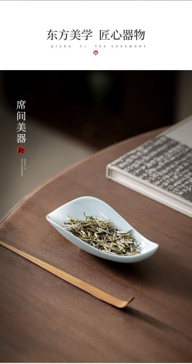 Wen Yijia white porcelain tea tea dispenser ceramic tea spoon tea set two-piece set household tea spoon tea lotus tea ceremony accessories Ding kiln Yayun tea set + bamboo tea dial rice white