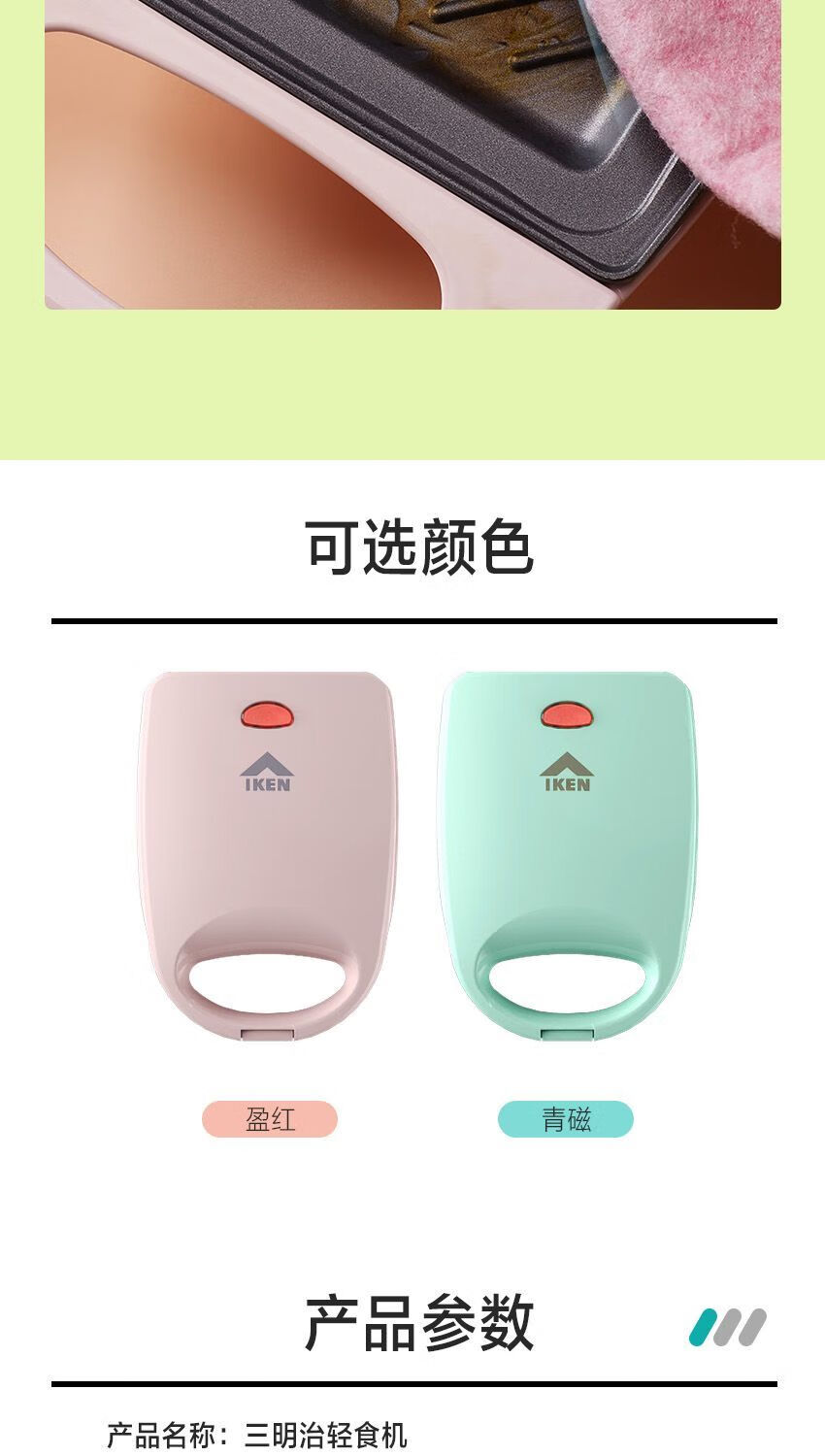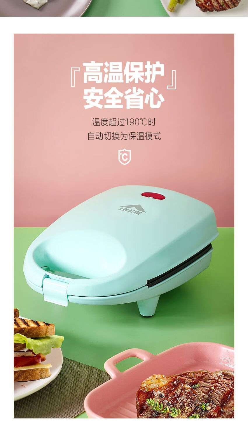 IKEN sandwich breakfast machine household sandwich machine multi-function electric baking pan hot pressed toast bread bread machine green thick coating